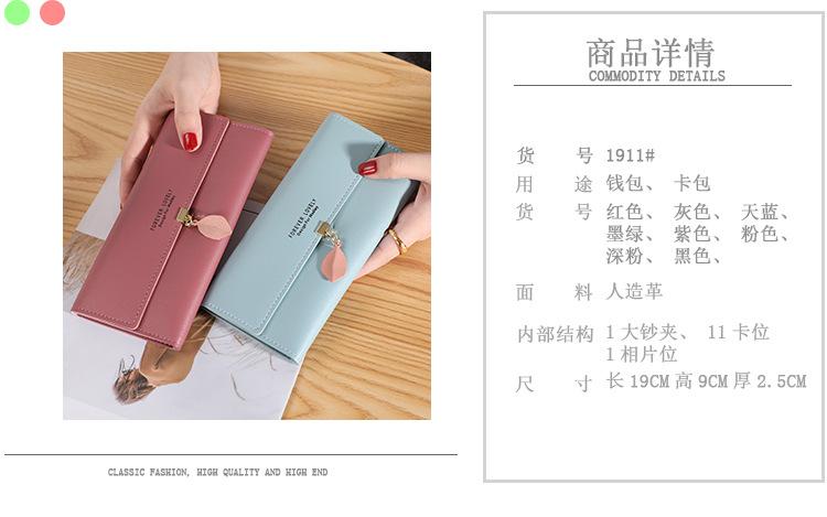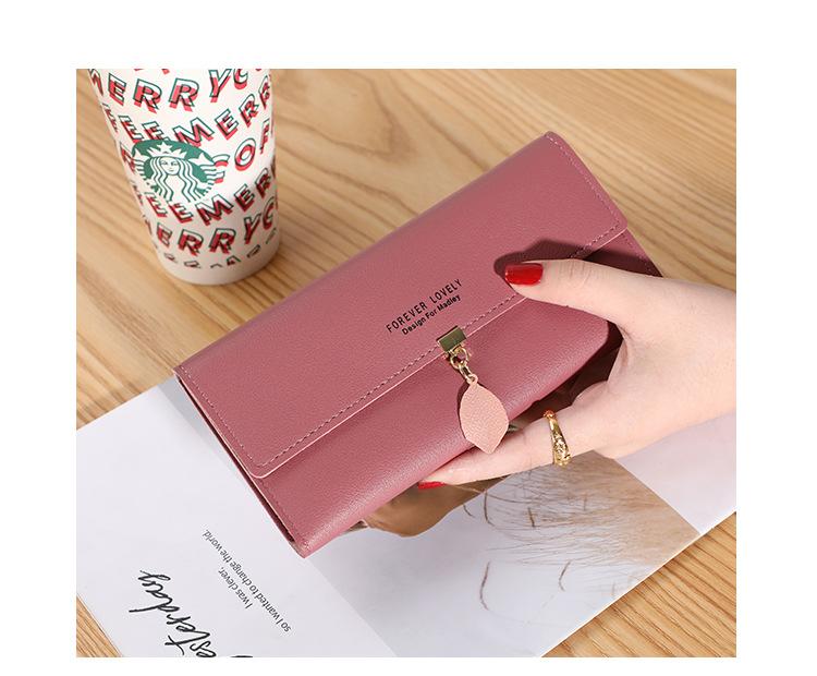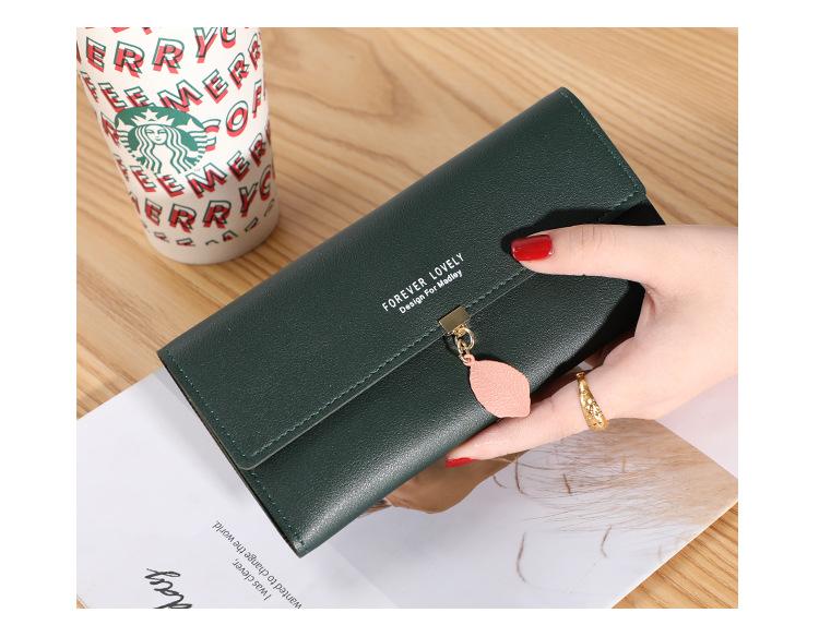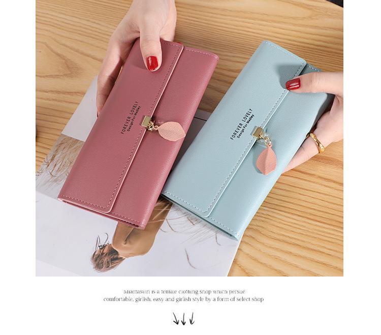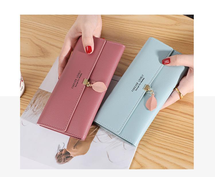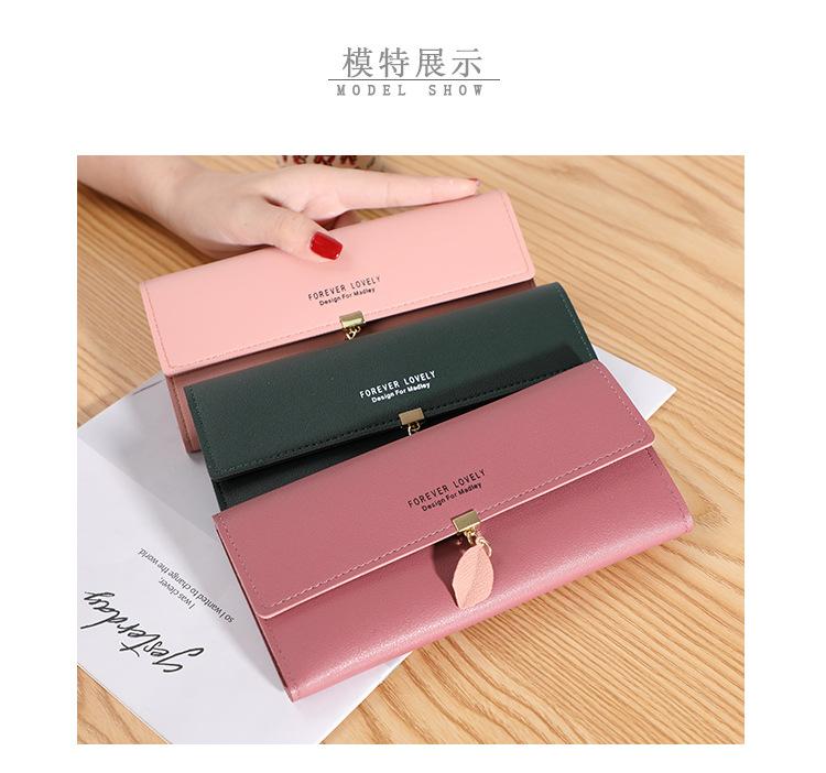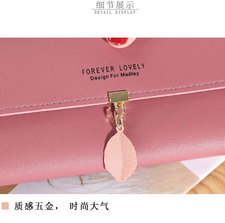 Cartera de tres pliegues con colgante de hoja simple coreana multifuncional, directa de fábrica, 2021