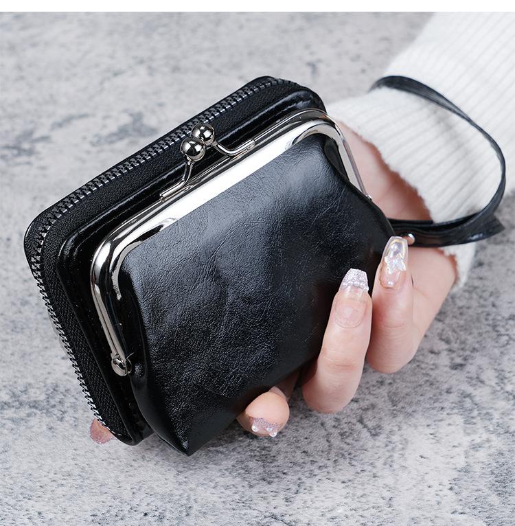 Monedero con hebilla de 4 pulgadas para mujer, bolso de mano retro con cierre de cremallera, disponible en stock, suministro transfronterizo de fábrica.