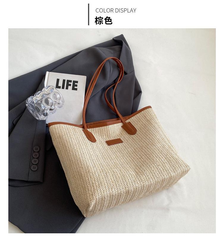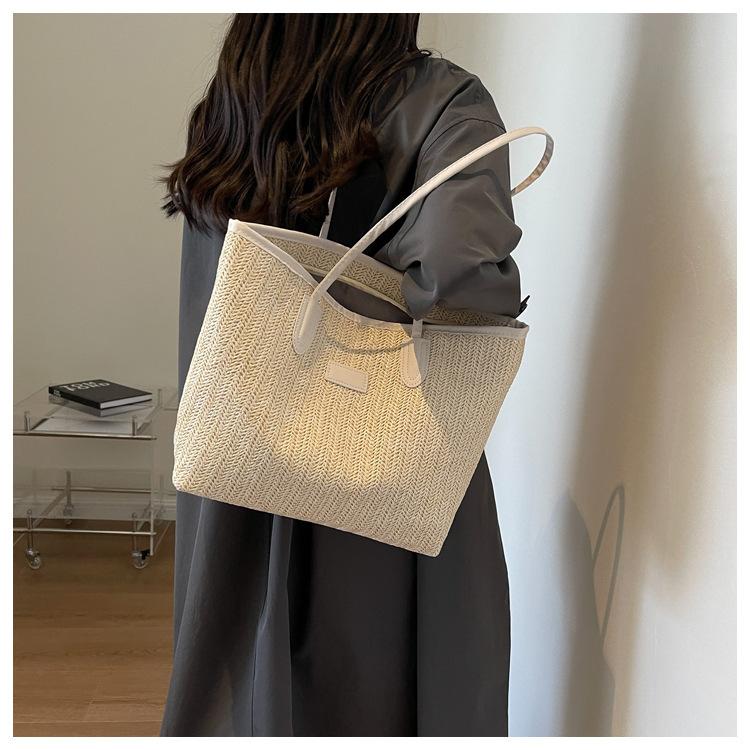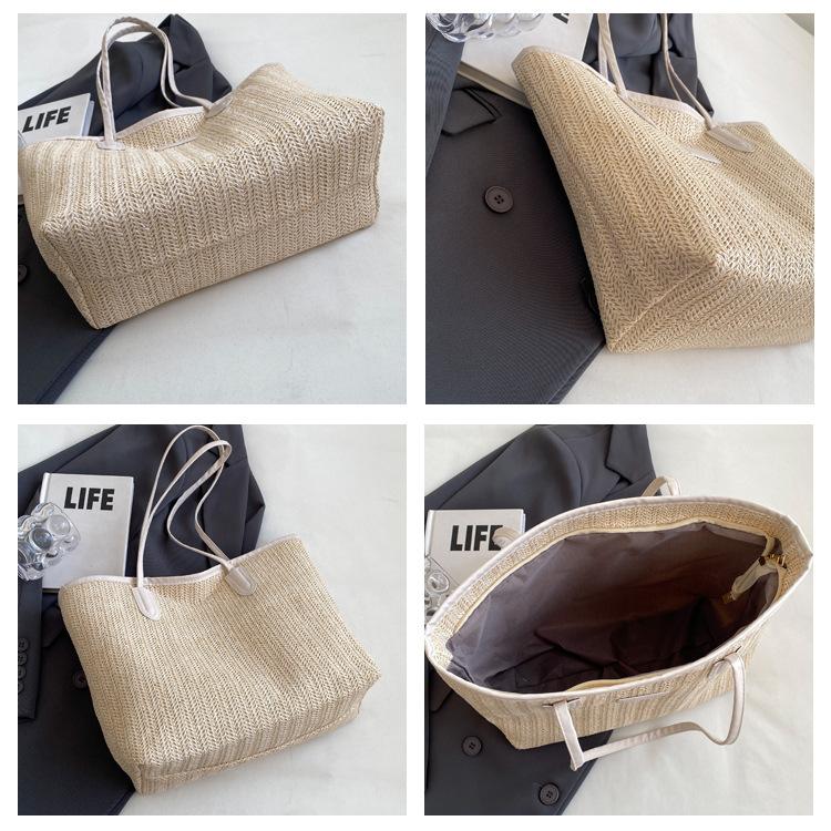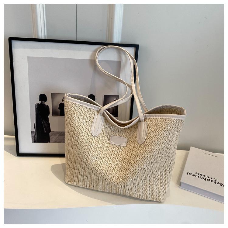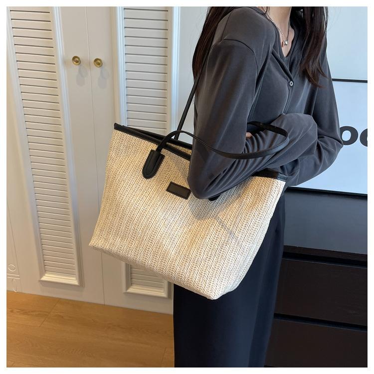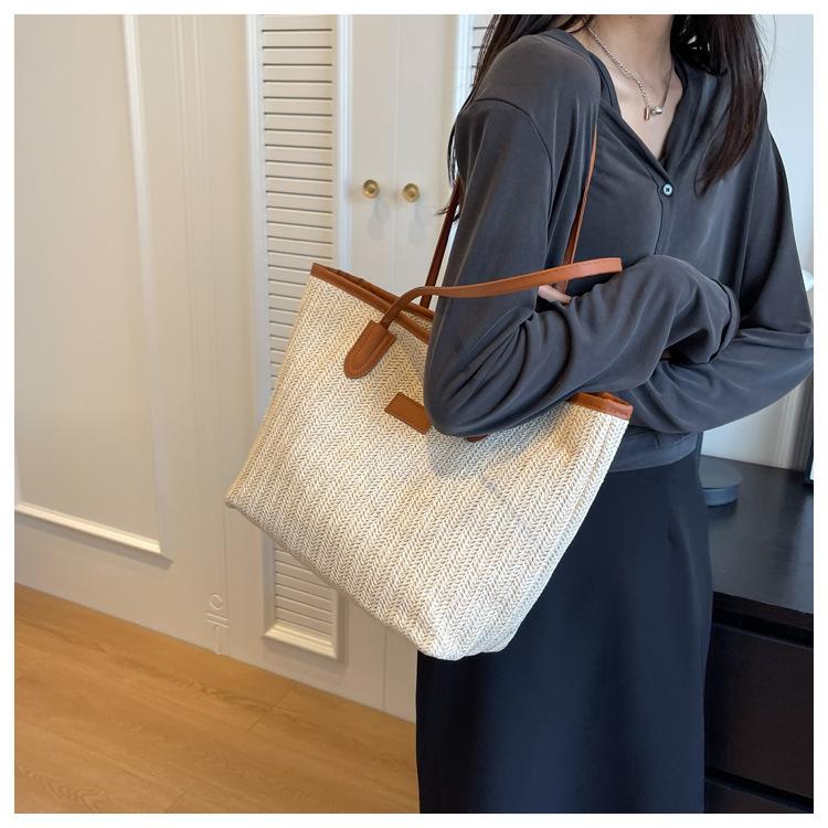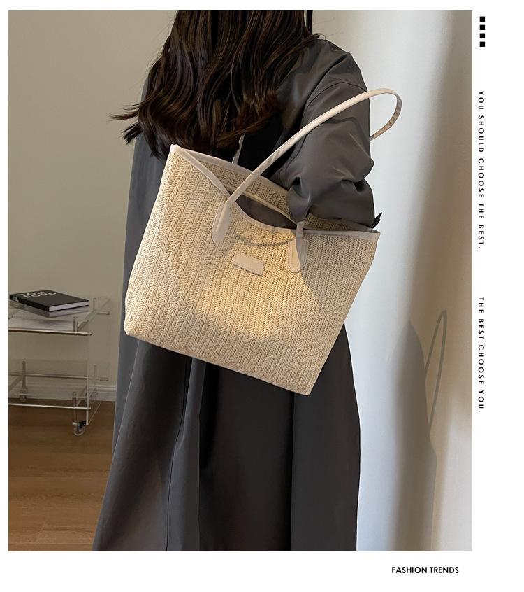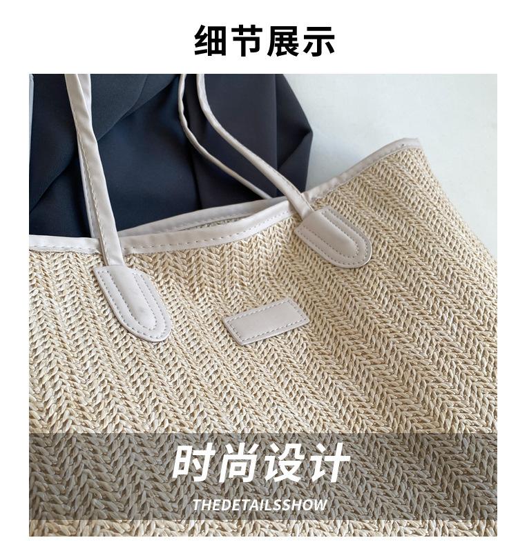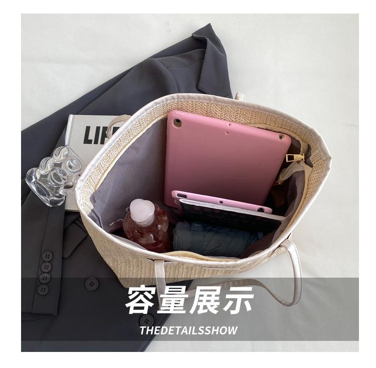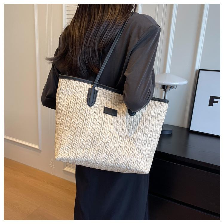 Bolso Tote de Paja de Verano de Gran Capacidad 2023 Nuevo Estilo Estilo Japonés Casual Pequeño Fresco Tejido Bolso Casual de Hombro