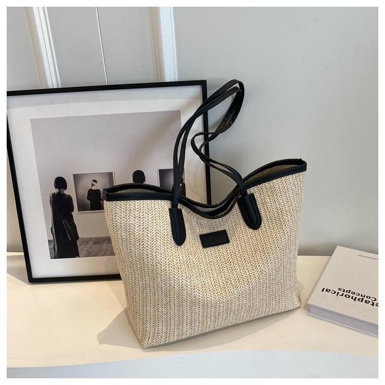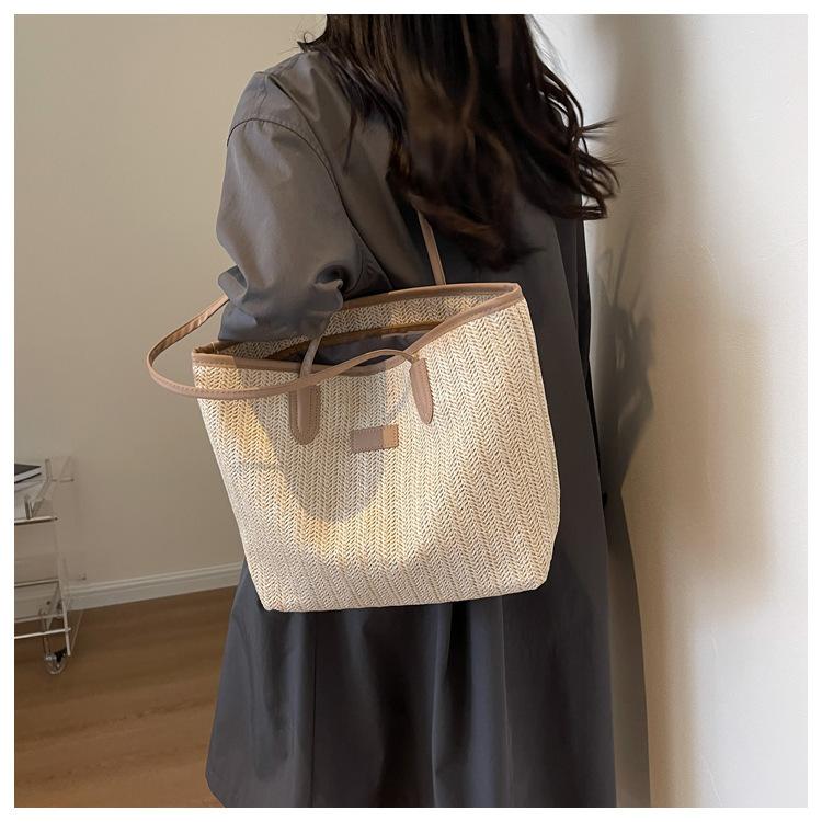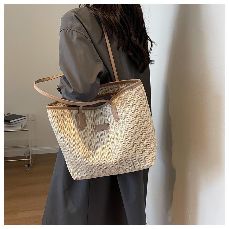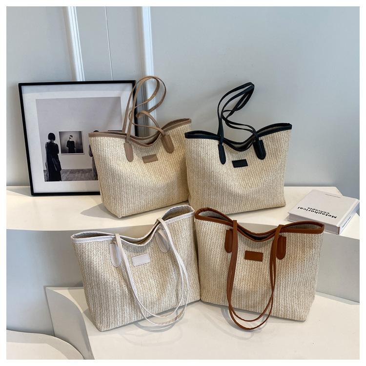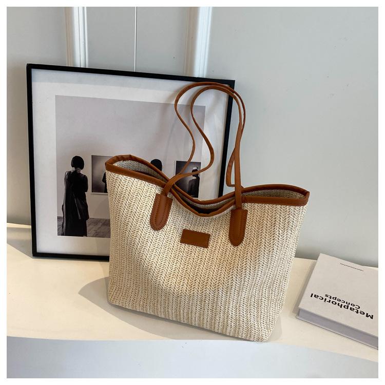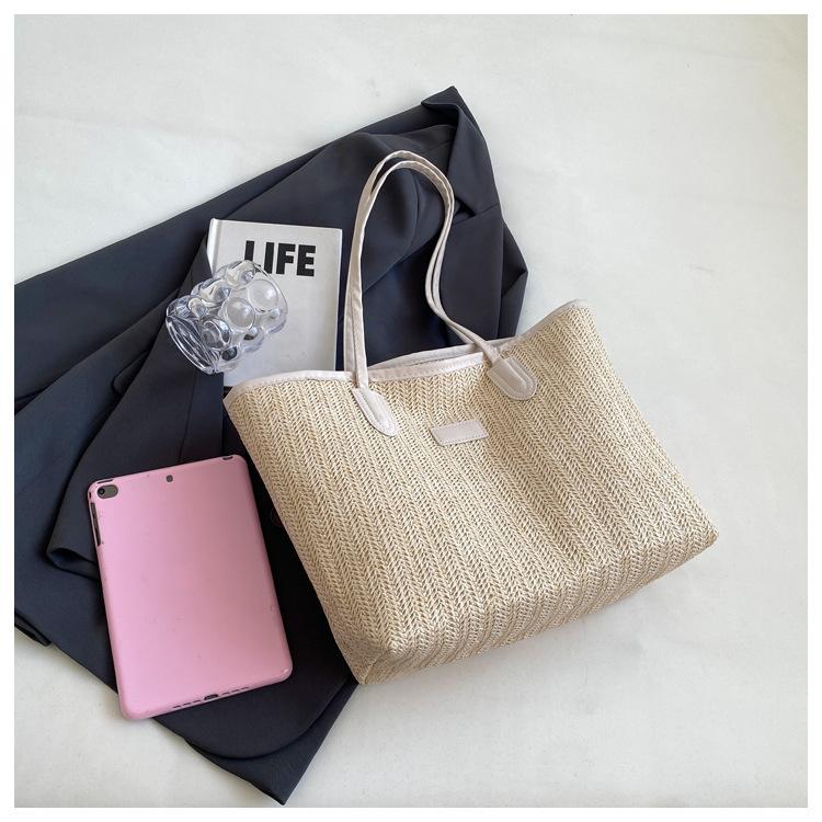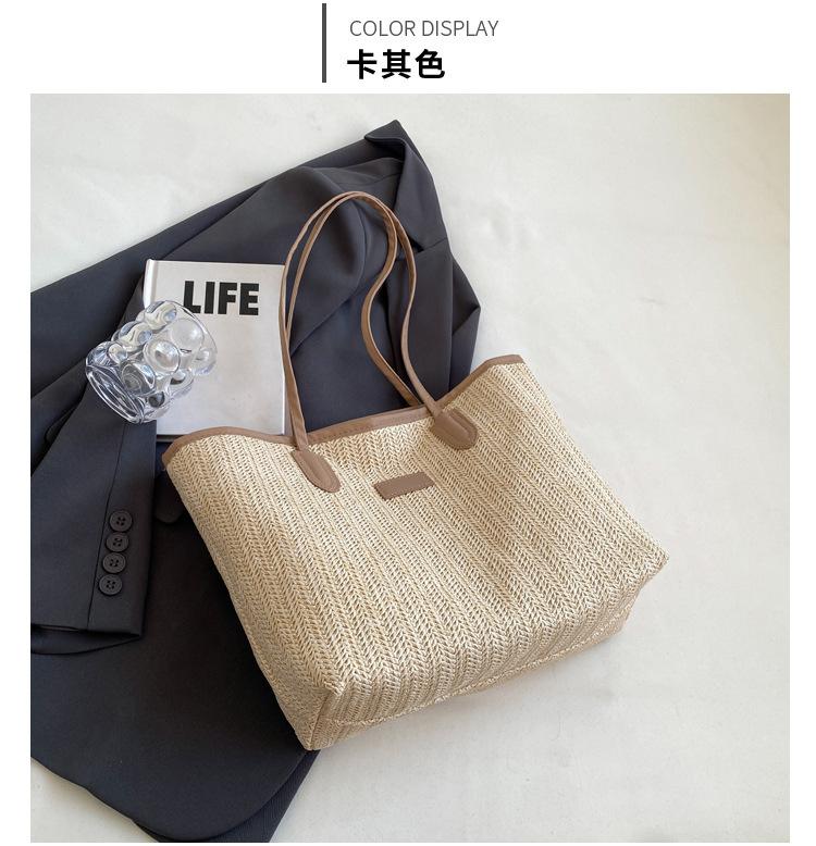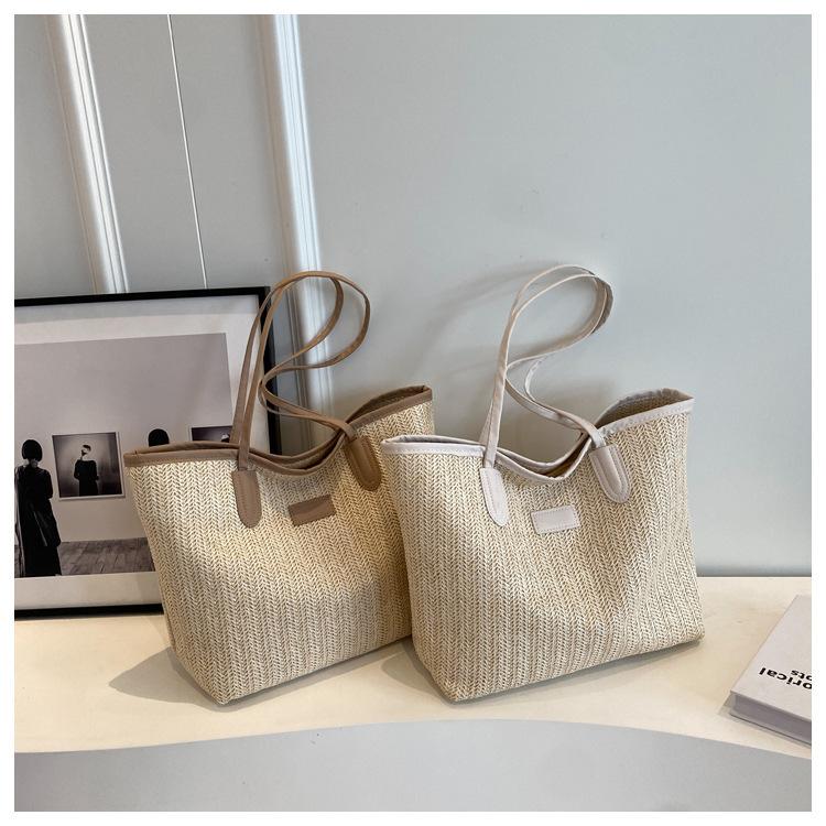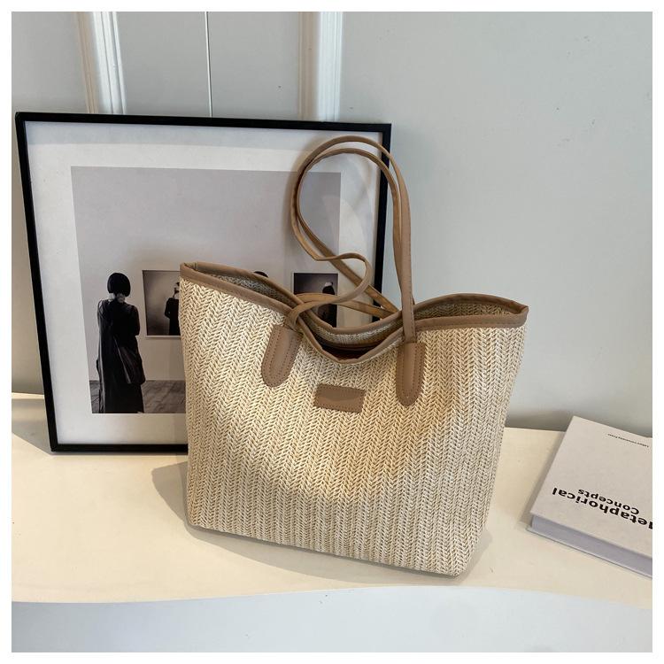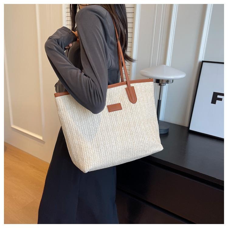 Bolso Tote de Paja de Verano de Gran Capacidad 2023 Nuevo Estilo Estilo Japonés Casual Pequeño Fresco Tejido Bolso Casual de Hombro