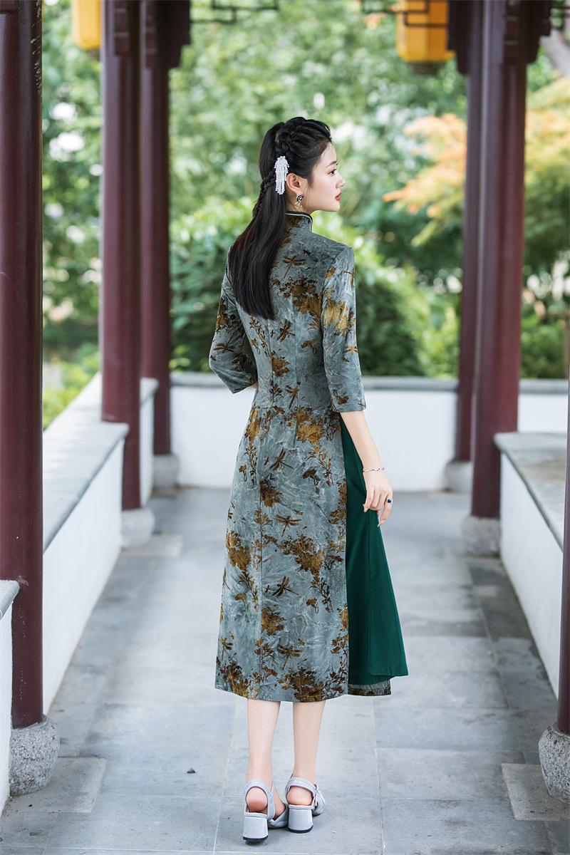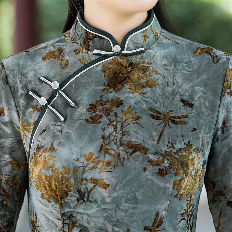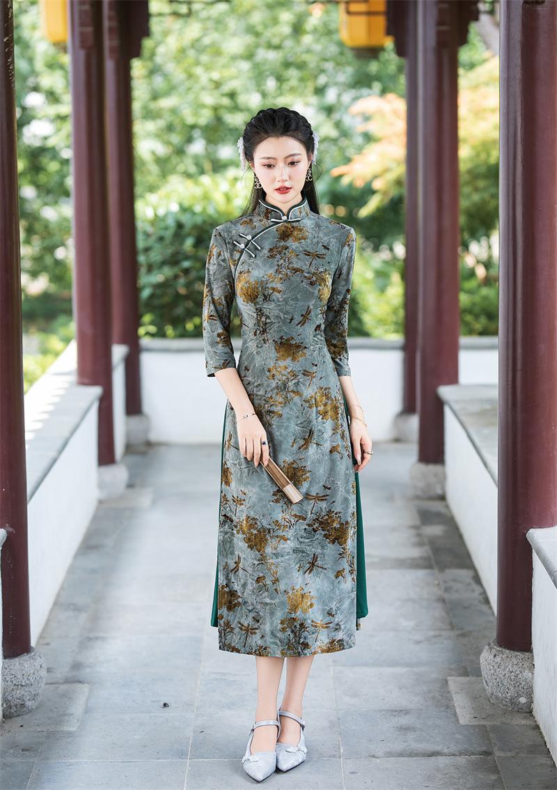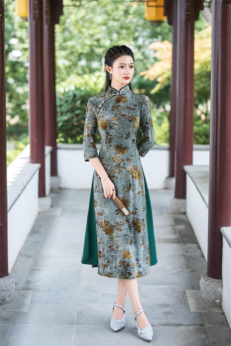 Características:Cheongsam nuevo, tela, textura suave, buena caída, no se encoge, no se decolora, no hace bolitas, ligera elasticidad, más característico de la nación china, bienvenido a comprar,