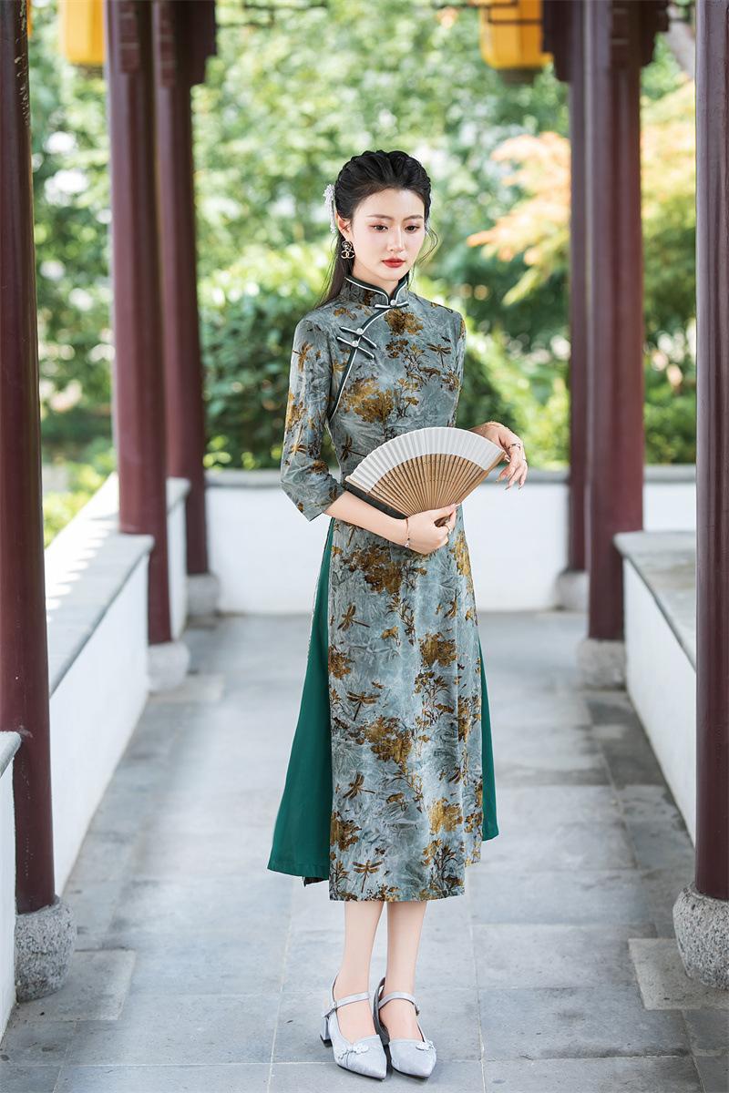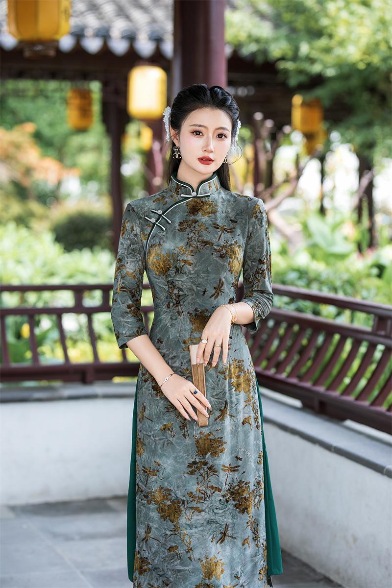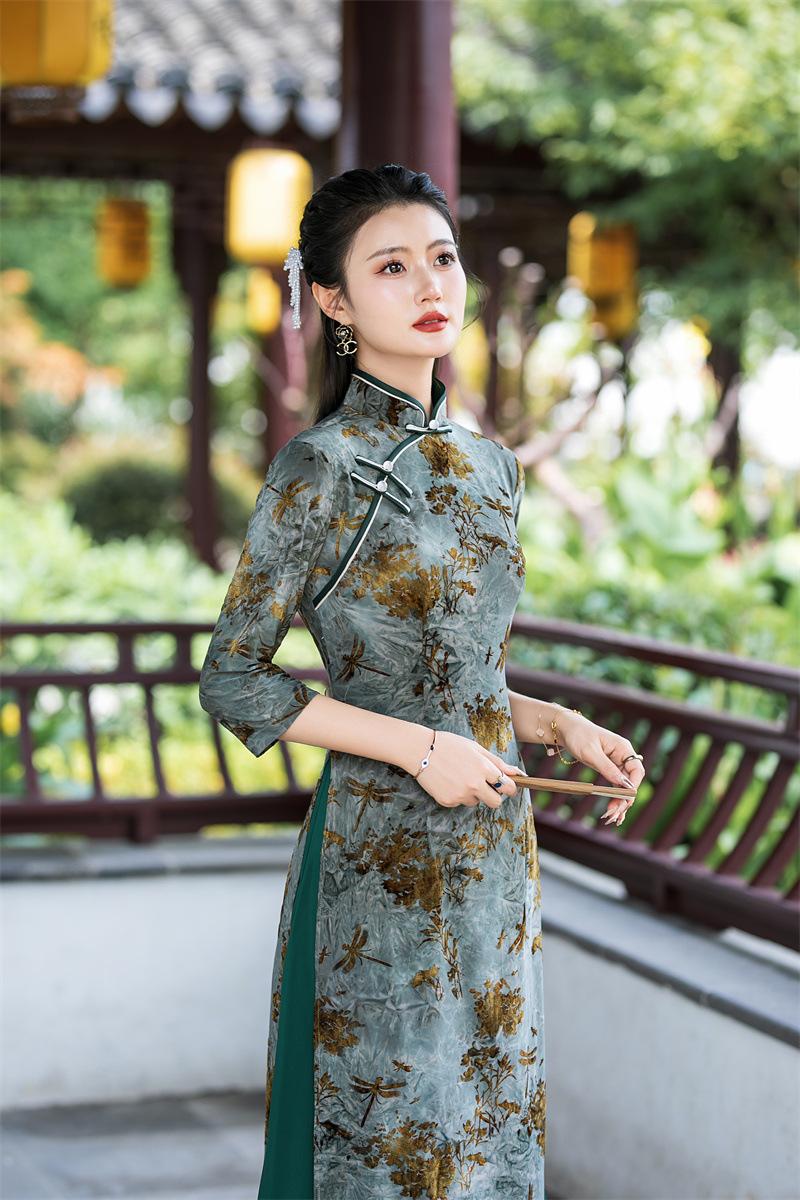 Características:Cheongsam nuevo, tela, textura suave, buena caída, no se encoge, no se decolora, no hace bolitas, ligera elasticidad, más característico de la nación china, bienvenido a comprar,