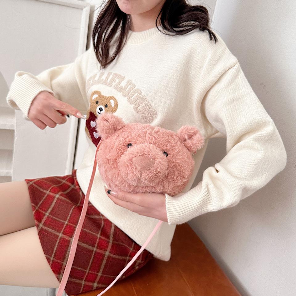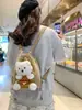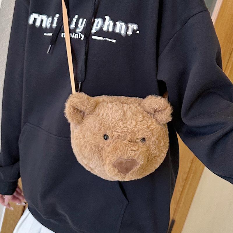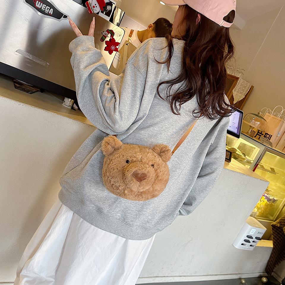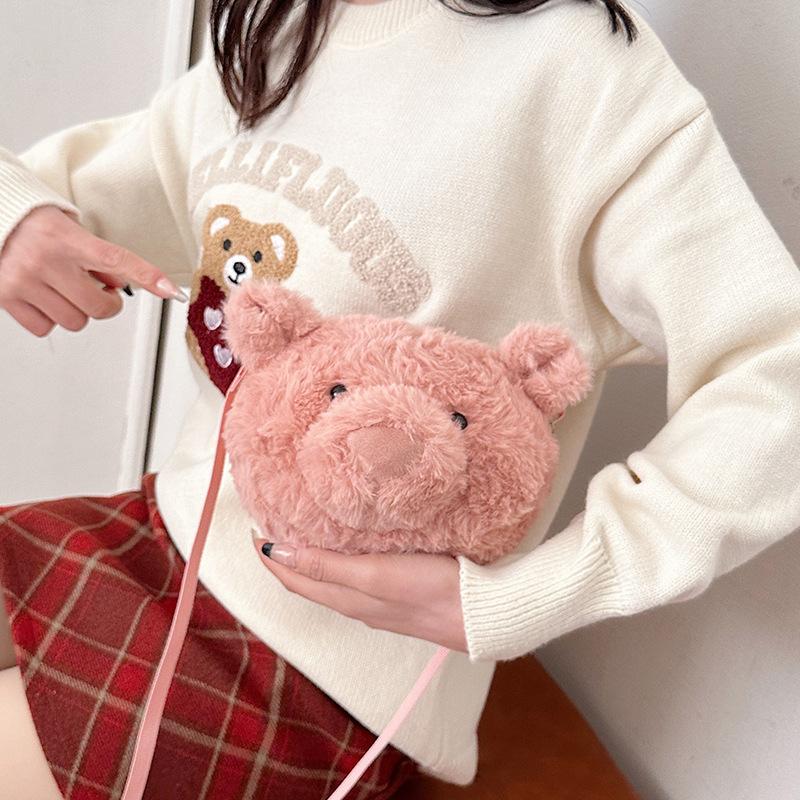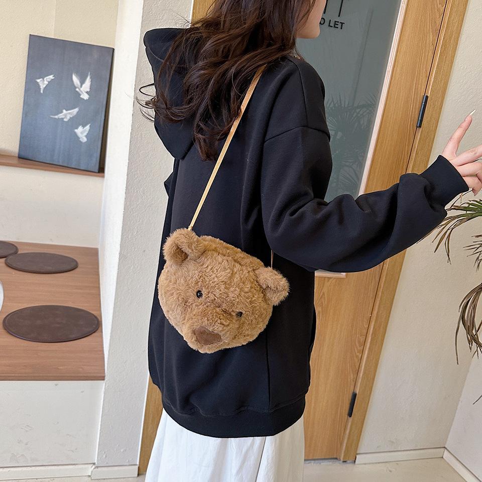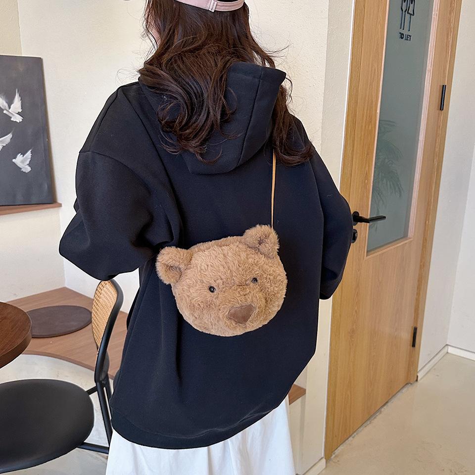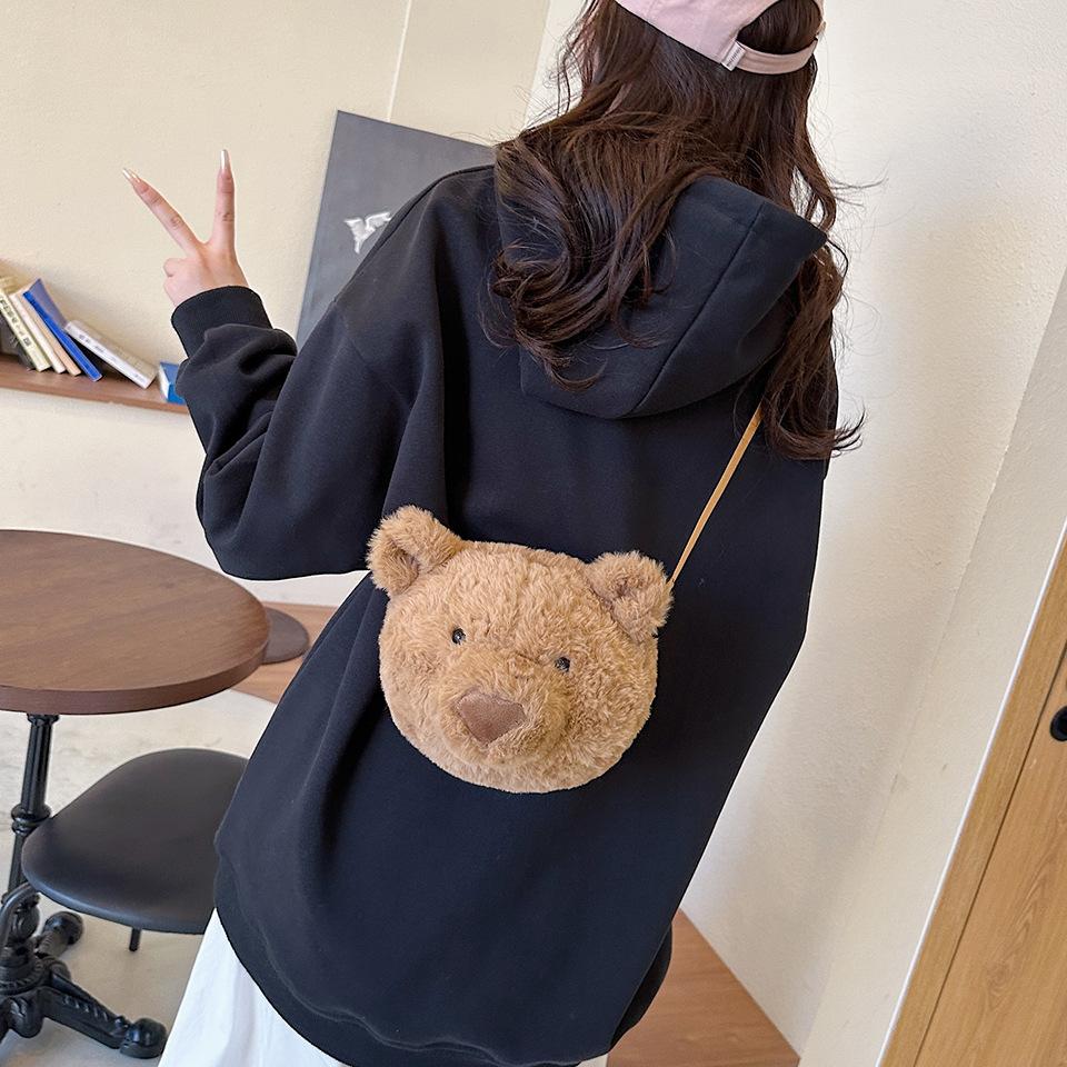 Bolso bandolera para mujer, 2024, nuevo, bonito bolso de dibujos animados, muñeco de peluche con cabeza de oso, mochila.