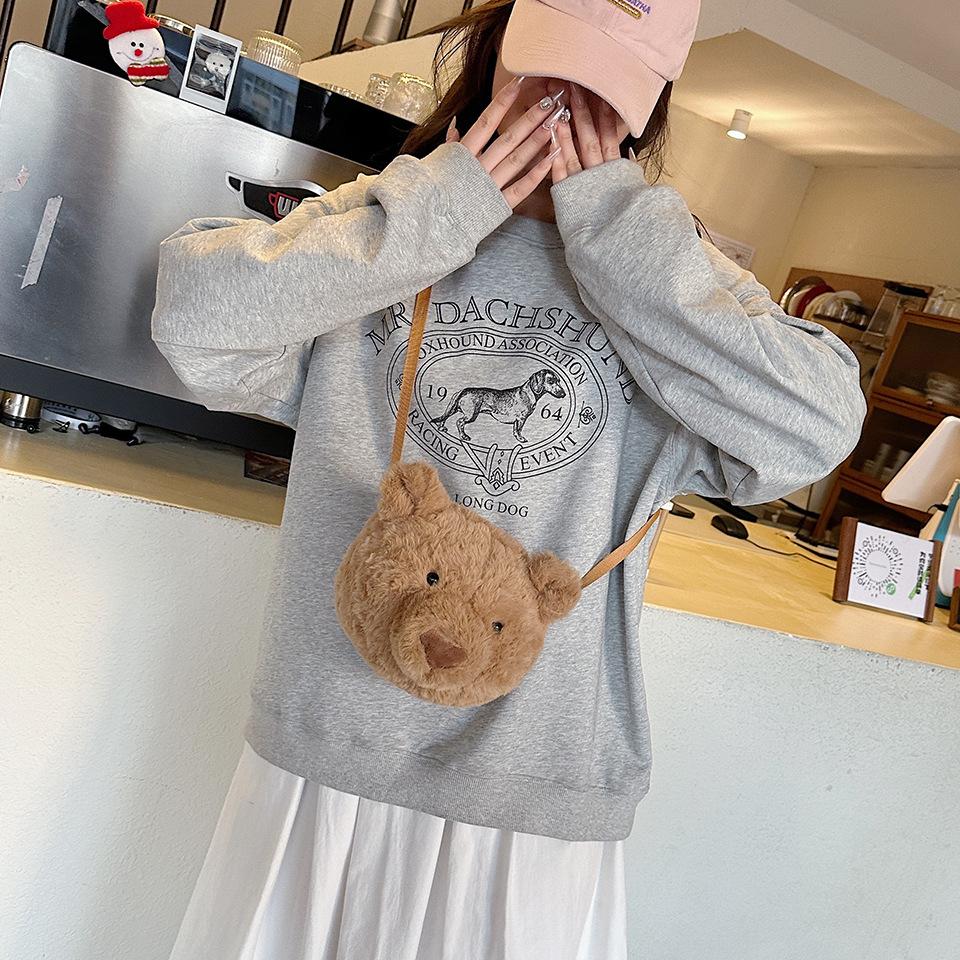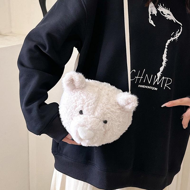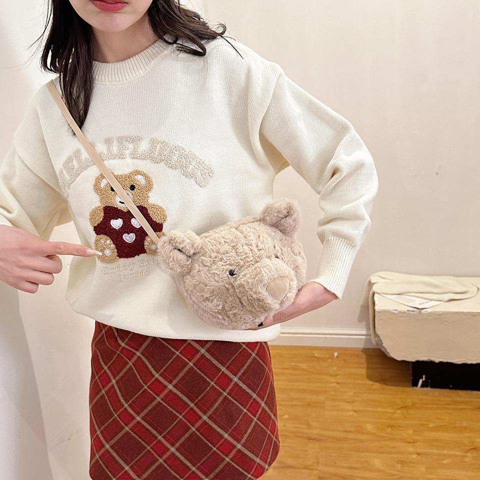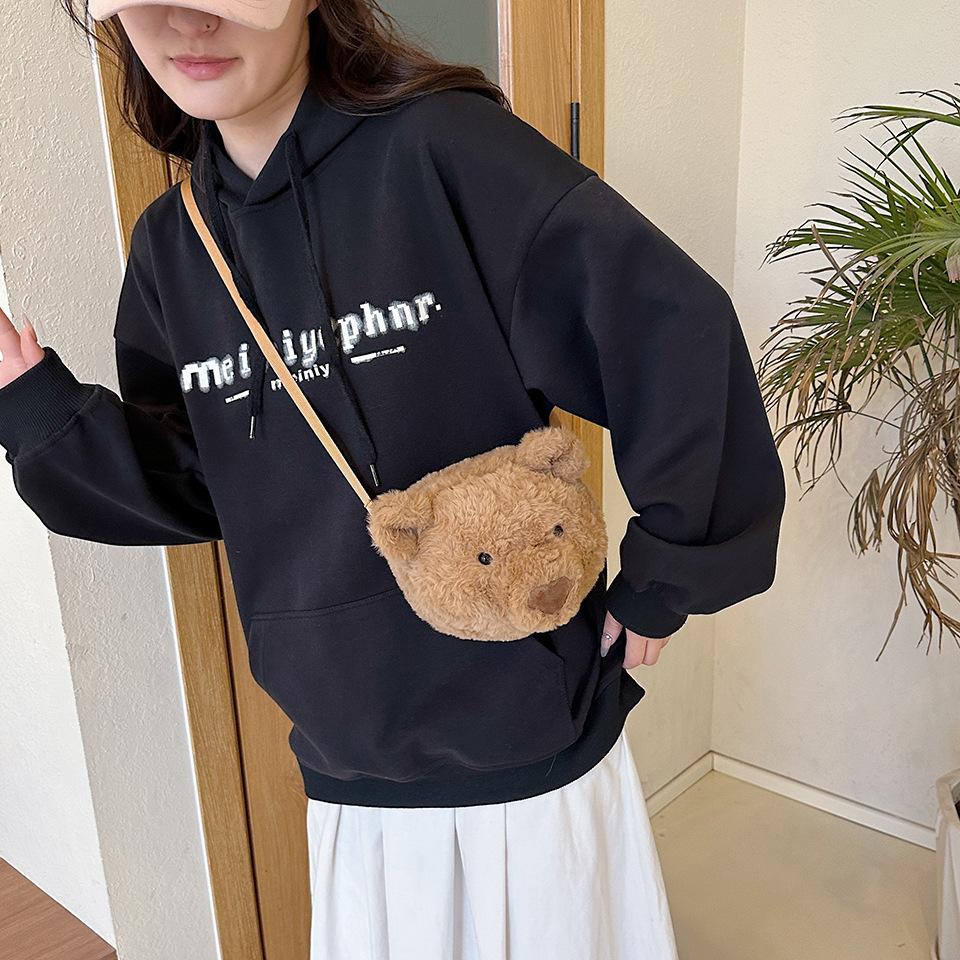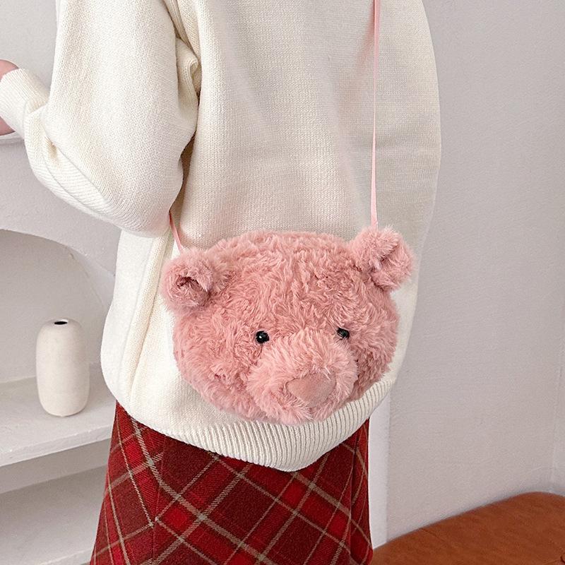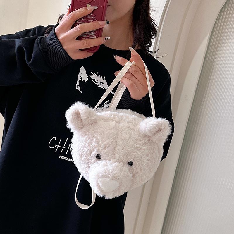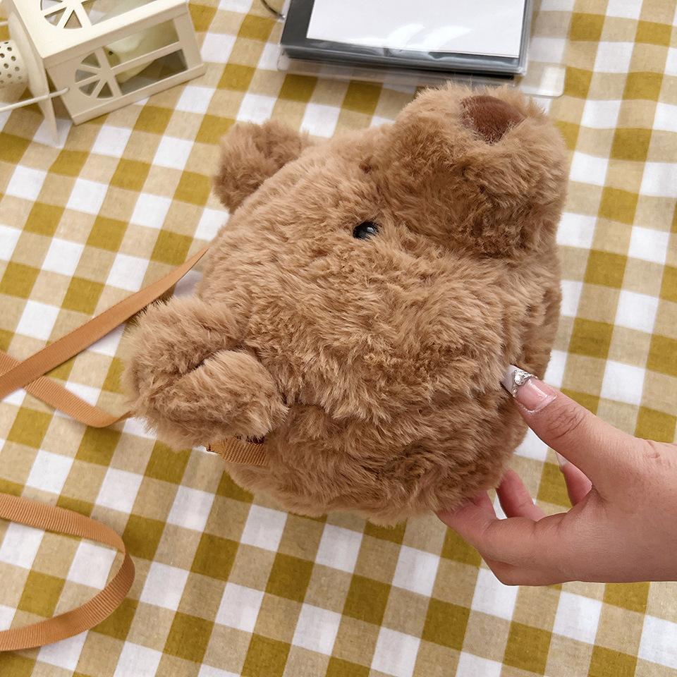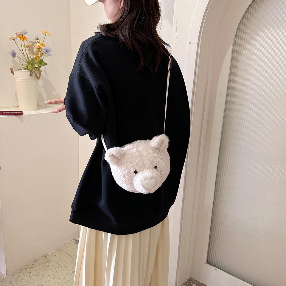 Bolso bandolera para mujer, 2024, nuevo, bonito bolso de dibujos animados, muñeco de peluche con cabeza de oso, mochila.