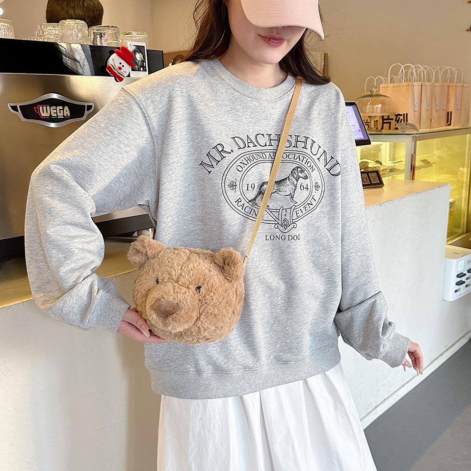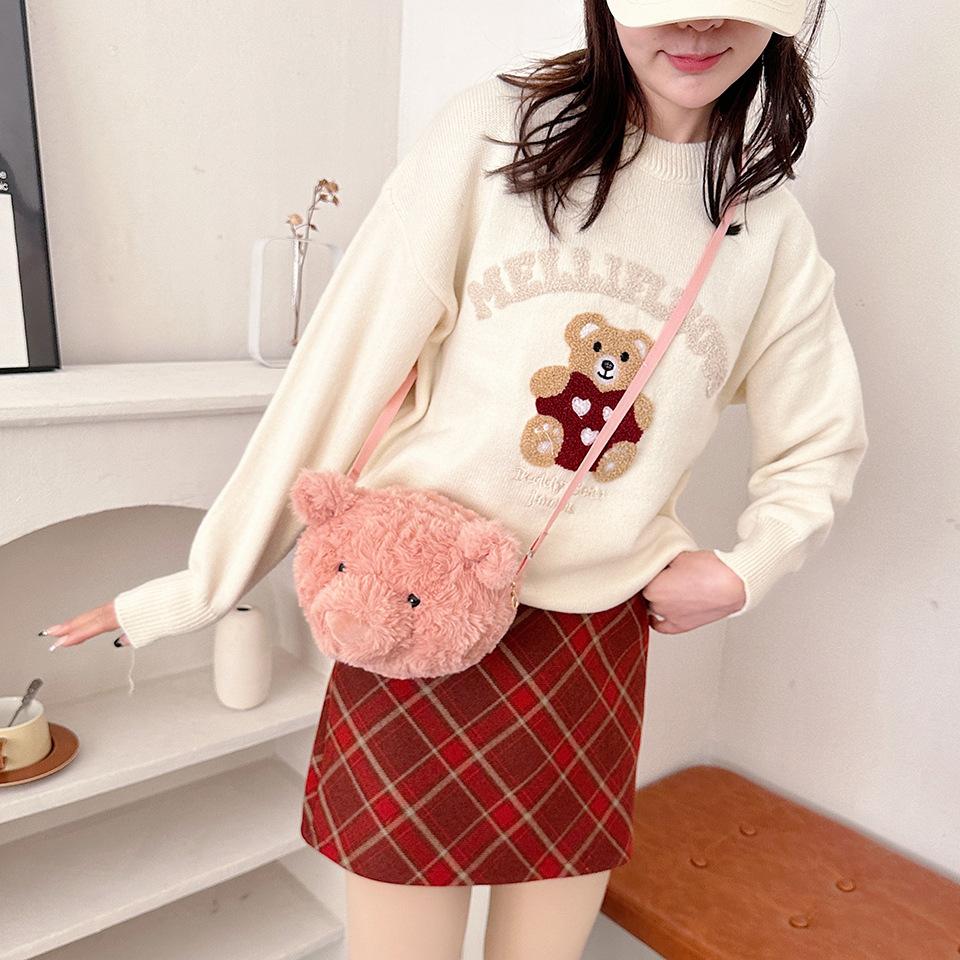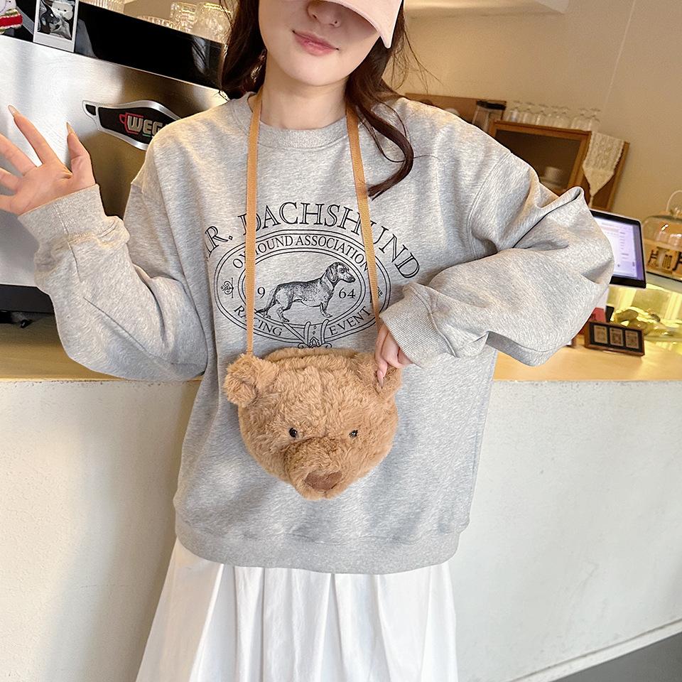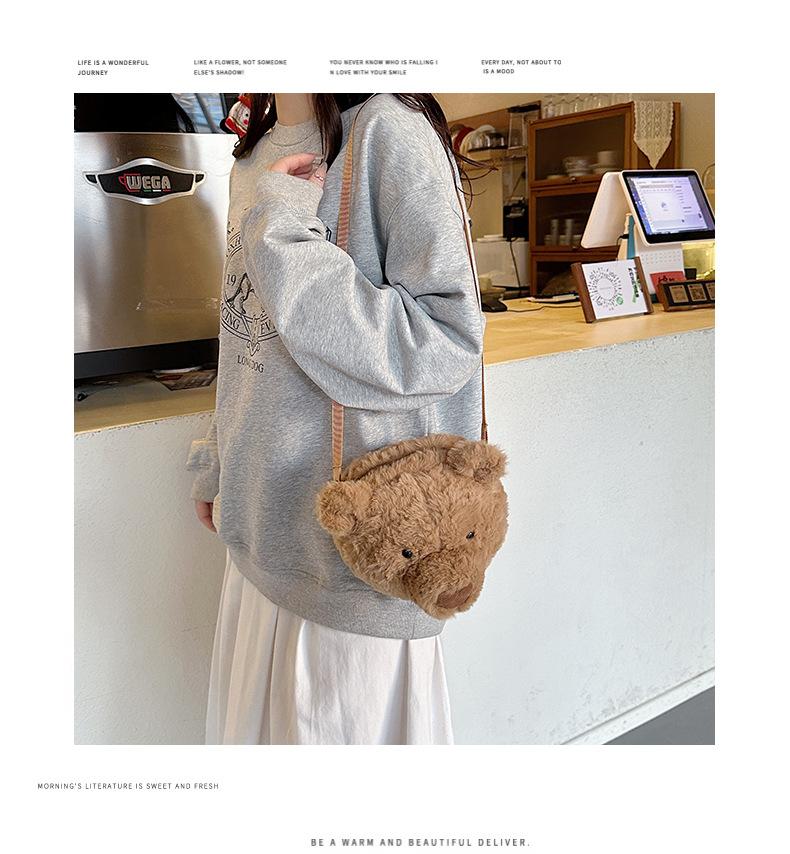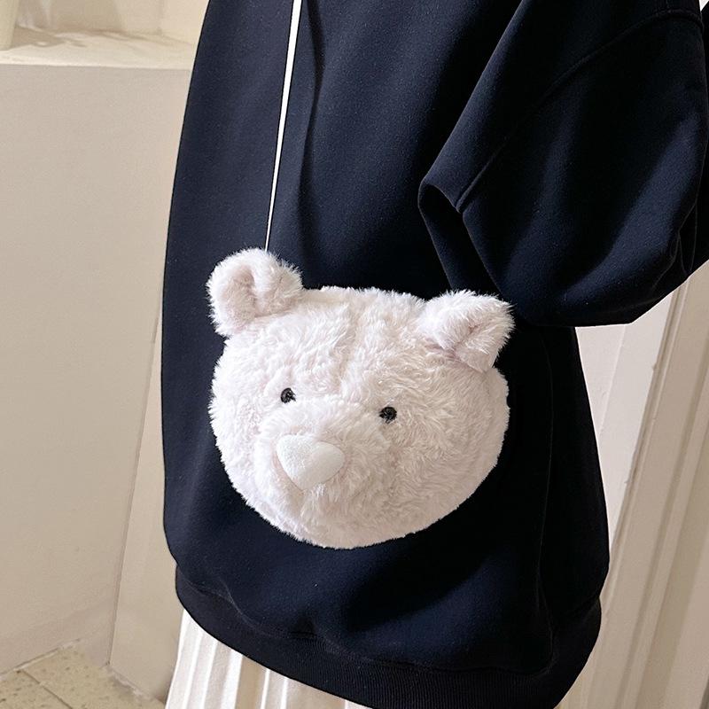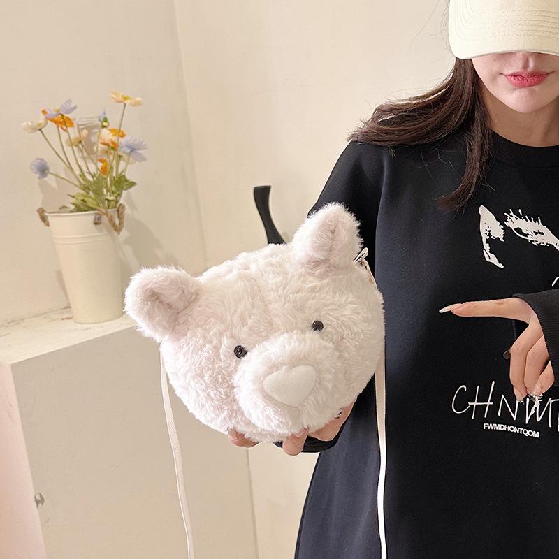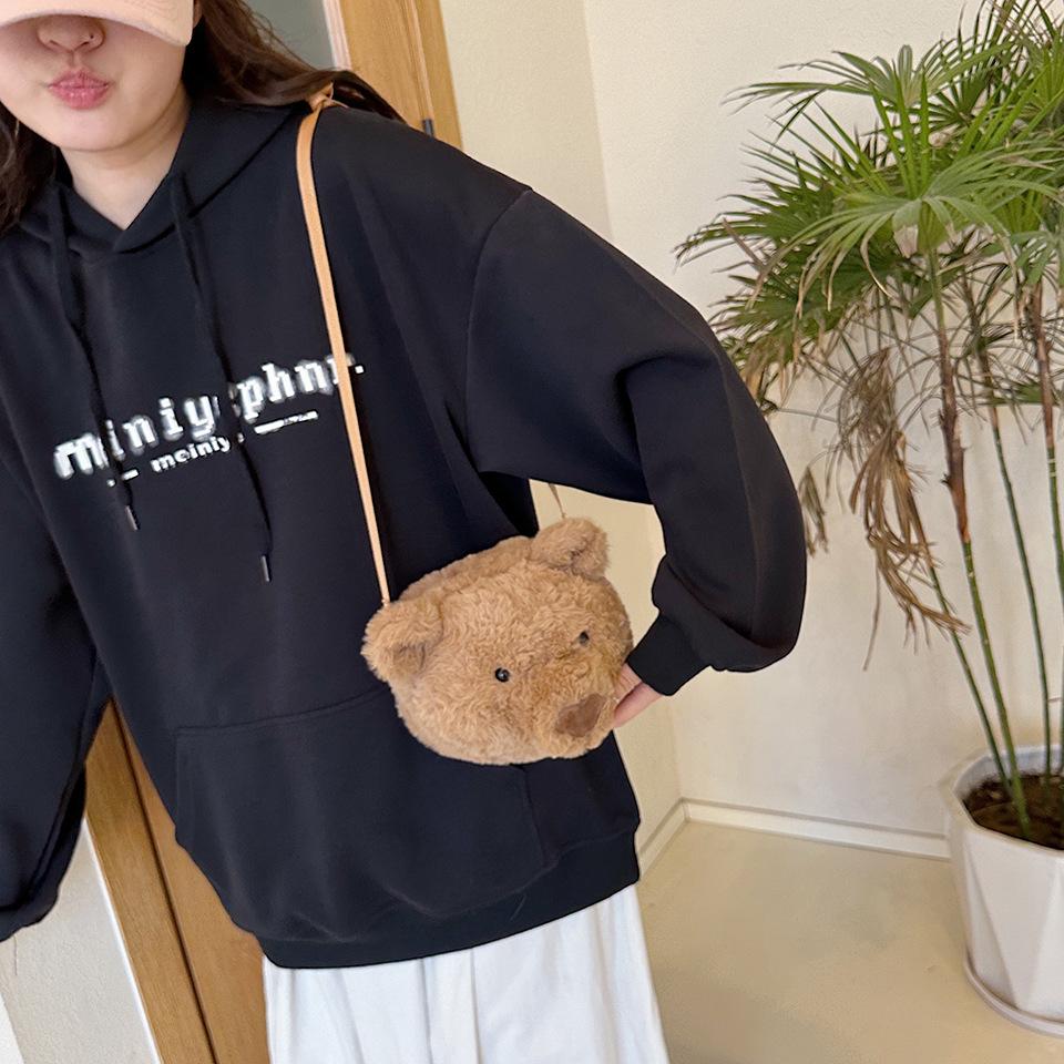 Bolso bandolera para mujer, 2024, nuevo, bonito bolso de dibujos animados, muñeco de peluche con cabeza de oso, mochila.