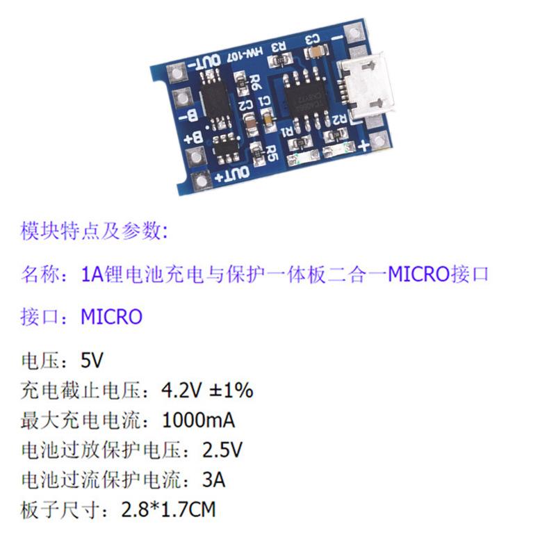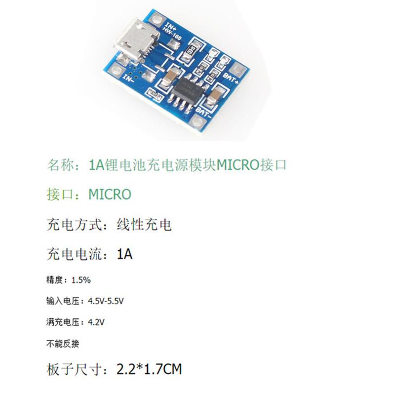 Módulo de carga de batería de litio 1A Placa de carga de batería TIPO-C Módulo de potencia con controlador LED Interfaz USB con protección