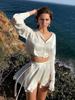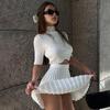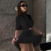 Europeo y Americano Comercio exterior verano nueva moda elegante sexy ajustado punto acanalado falda manga corta color sólido traje mujeres