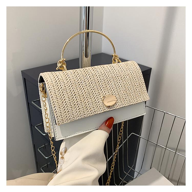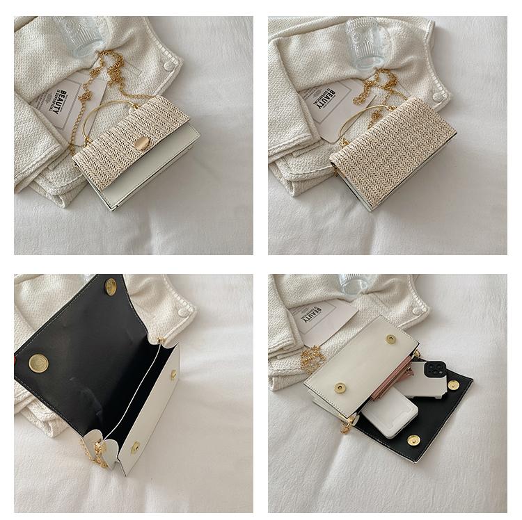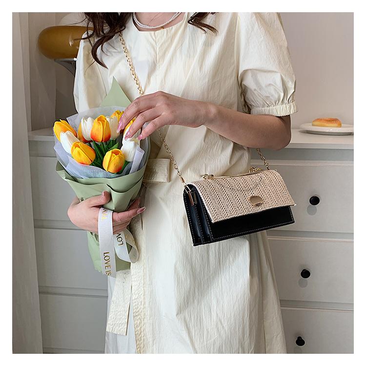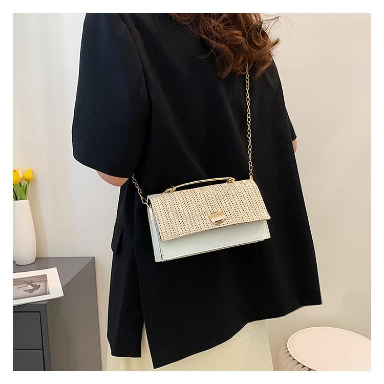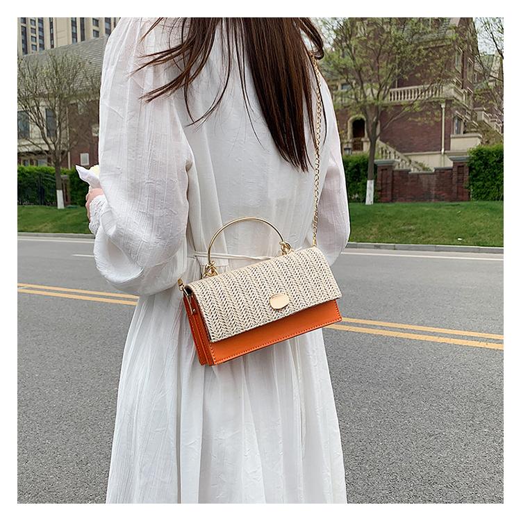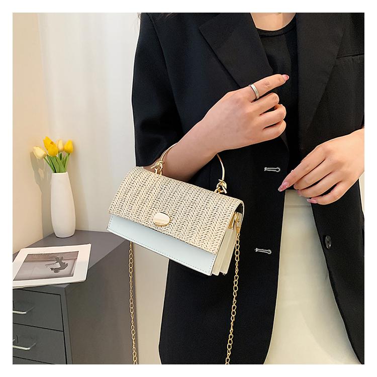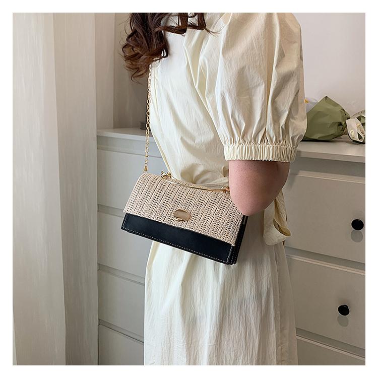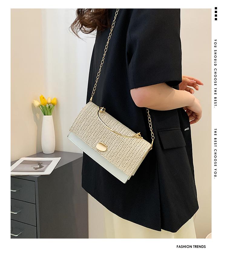 Bolso de Mano de Paja para Mujer 2024 Verano Nuevo Estilo Coreano Moda Retro Tejido Bolso Cuadrado Pequeño para Mujer Bolso Bandolera de Hombro Único para Mujer