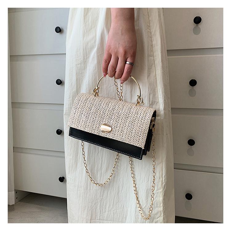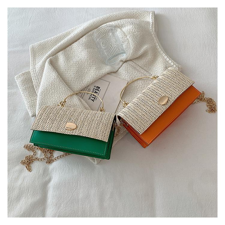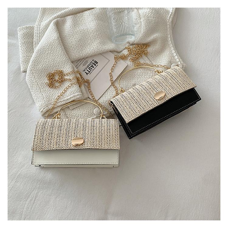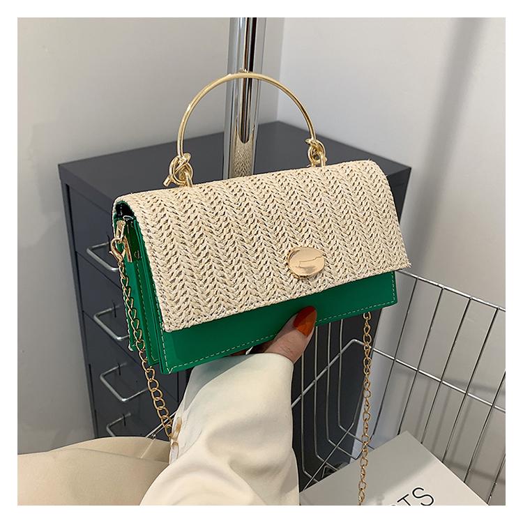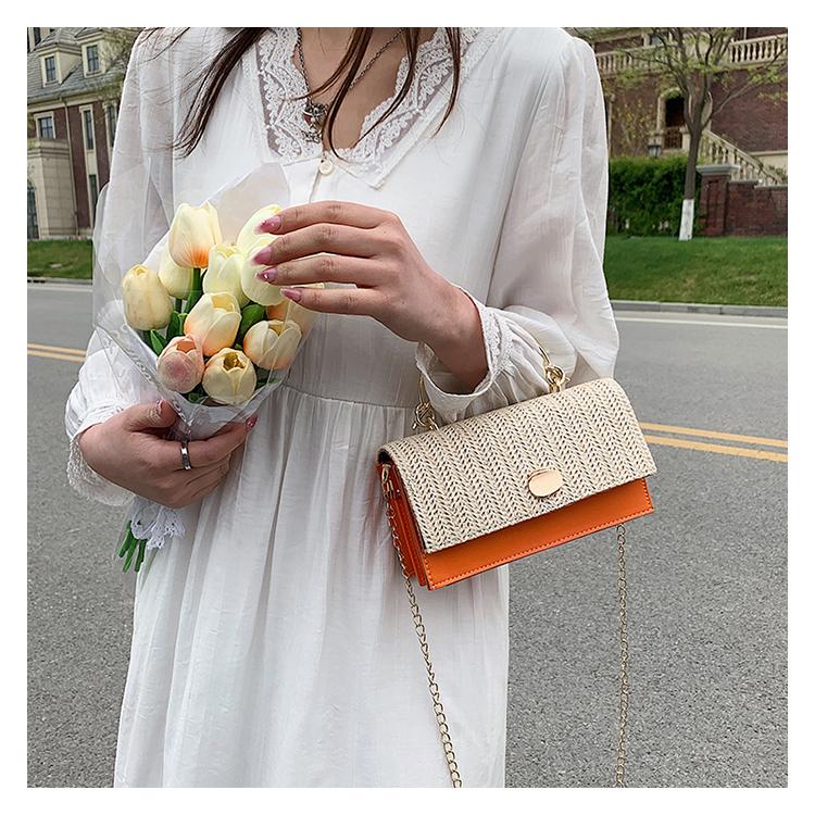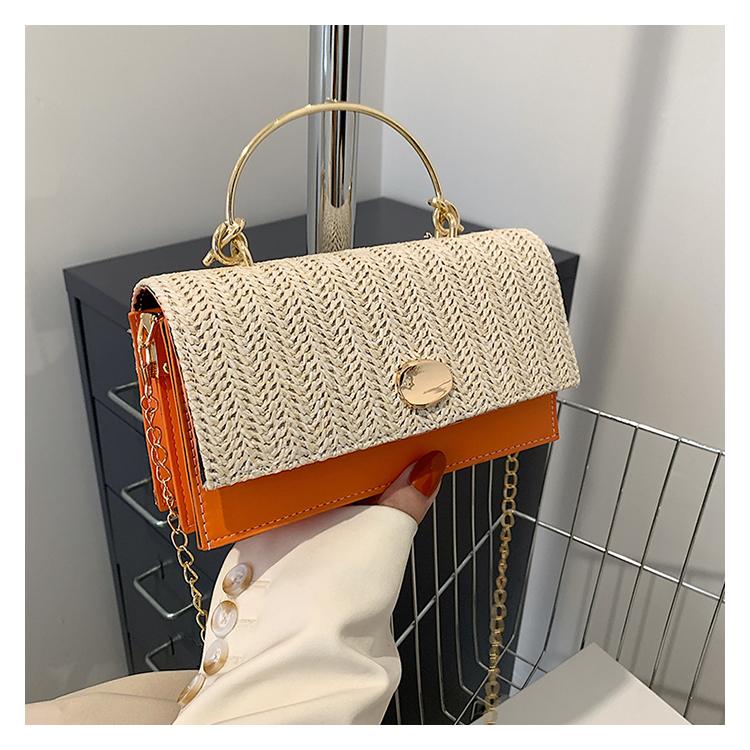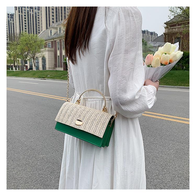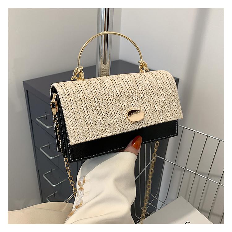 Bolso de Mano de Paja para Mujer 2024 Verano Nuevo Estilo Coreano Moda Retro Tejido Bolso Cuadrado Pequeño para Mujer Bolso Bandolera de Hombro Único para Mujer