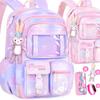 Nueva mochila escolar para niñas de primaria (primero, segundo, tercer y sexto grado, 2024). Bonita mochila de princesa para reducir la carga y proteger las crestas.