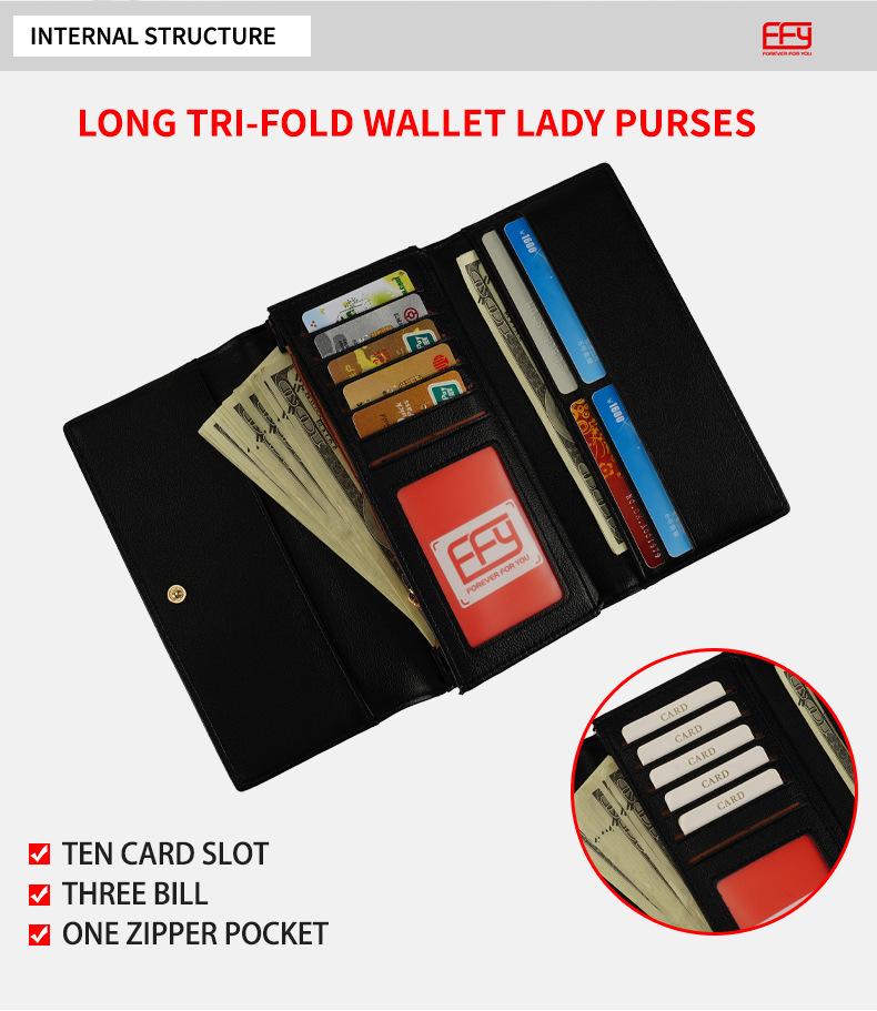 Cartera de mujer de nueva moda transfronteriza, larga, estilo coreano, triple, con múltiples tarjetas, de gran capacidad, portátil