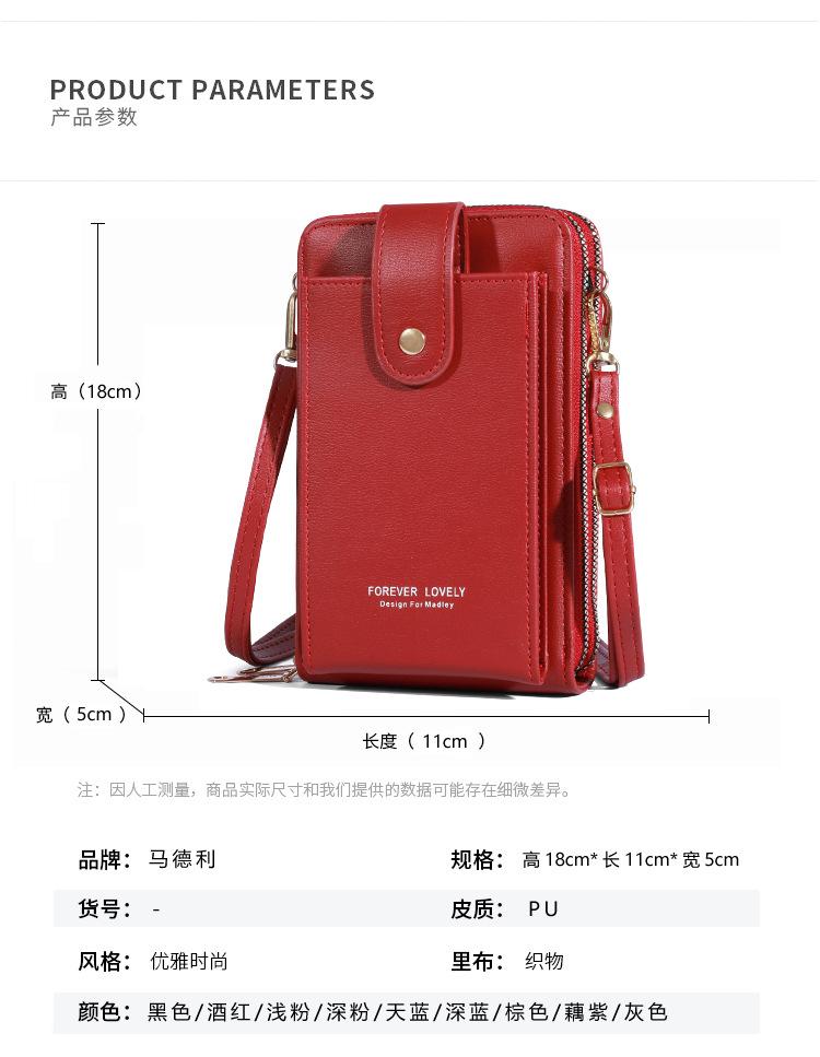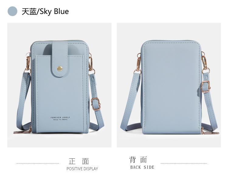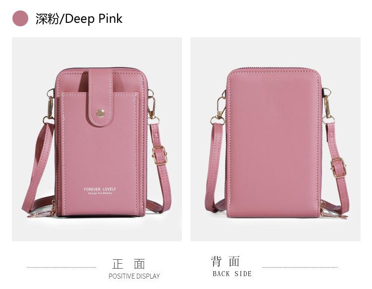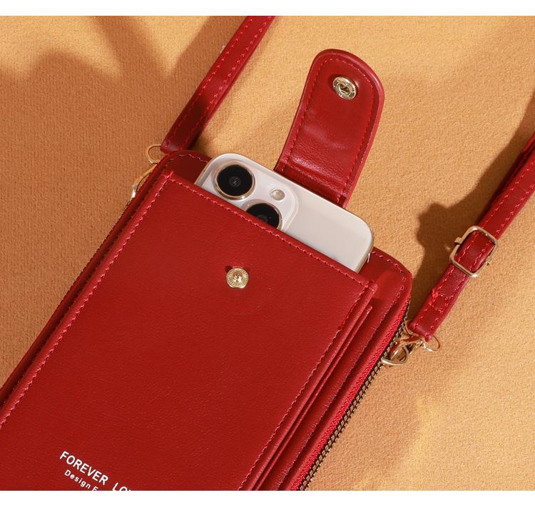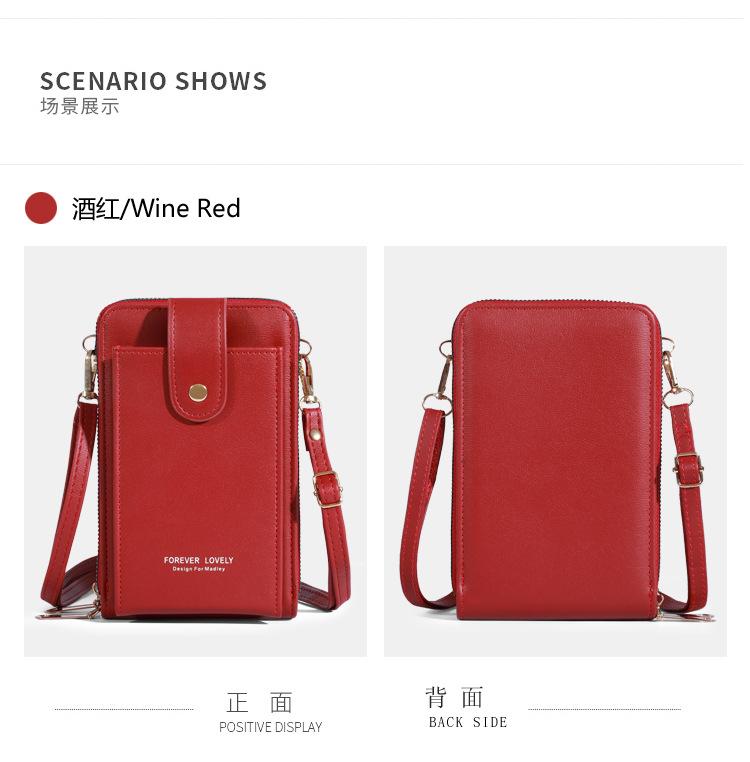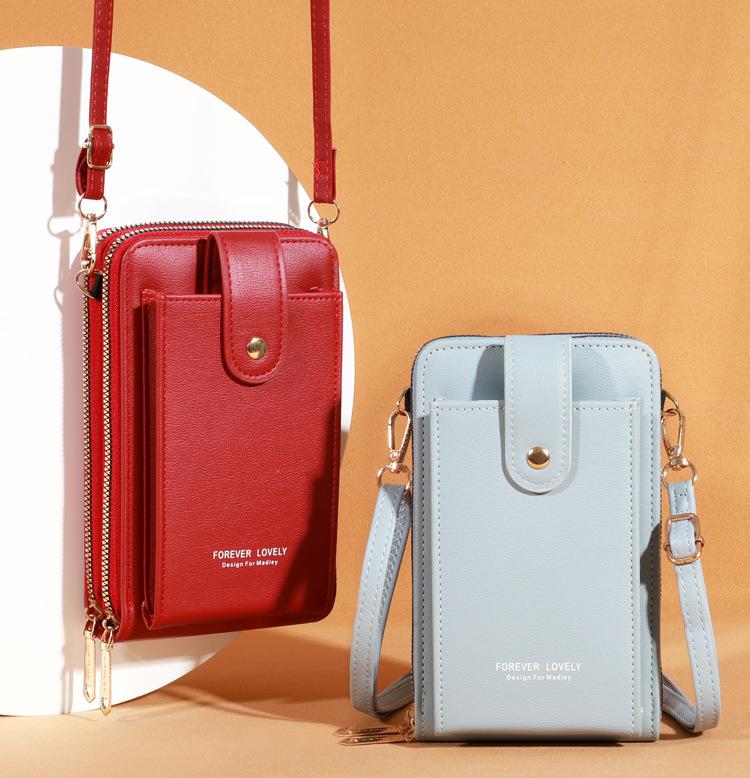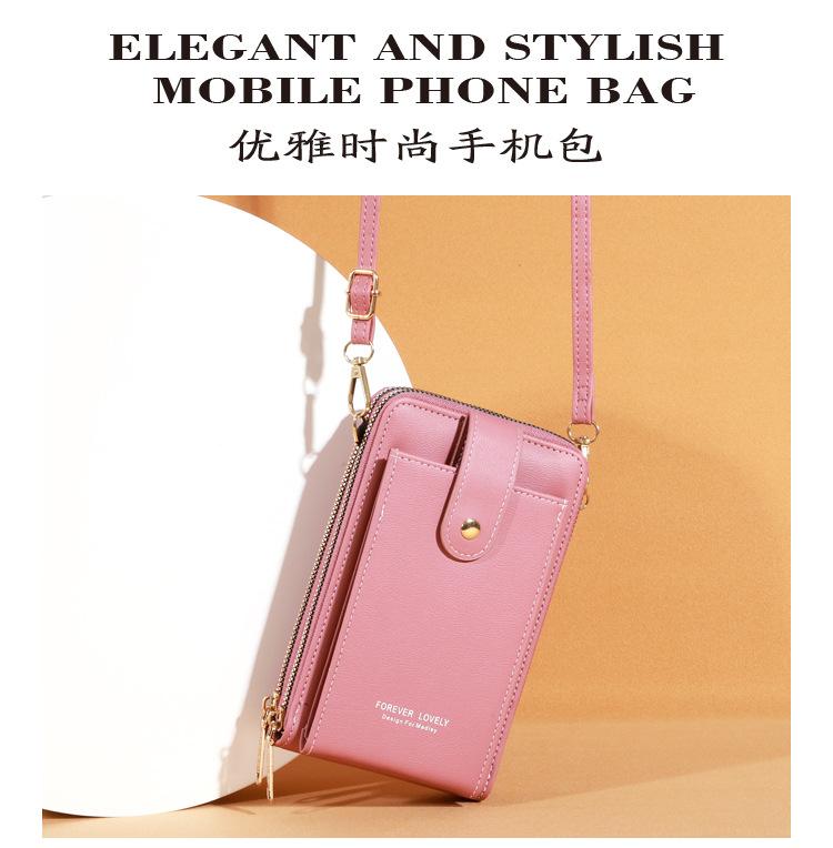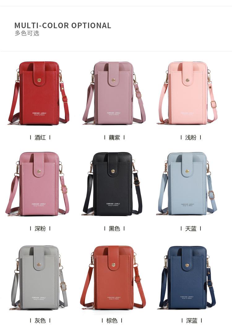 Bolso para teléfono móvil para mujer, venta al por mayor, moda coreana, bandolera, color sólido, multifuncional, de tres capas, 2023