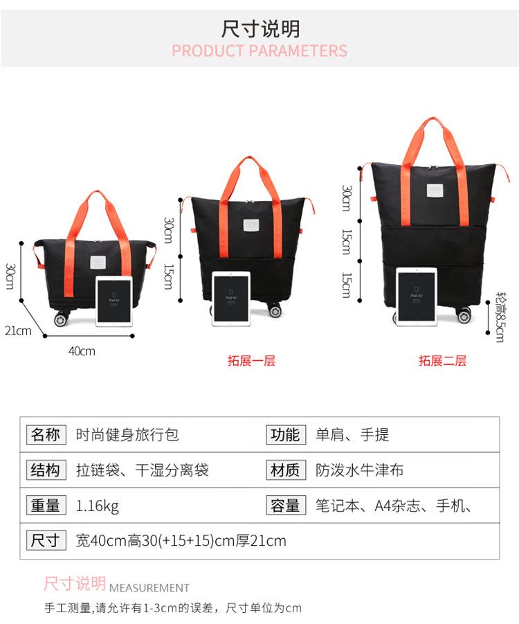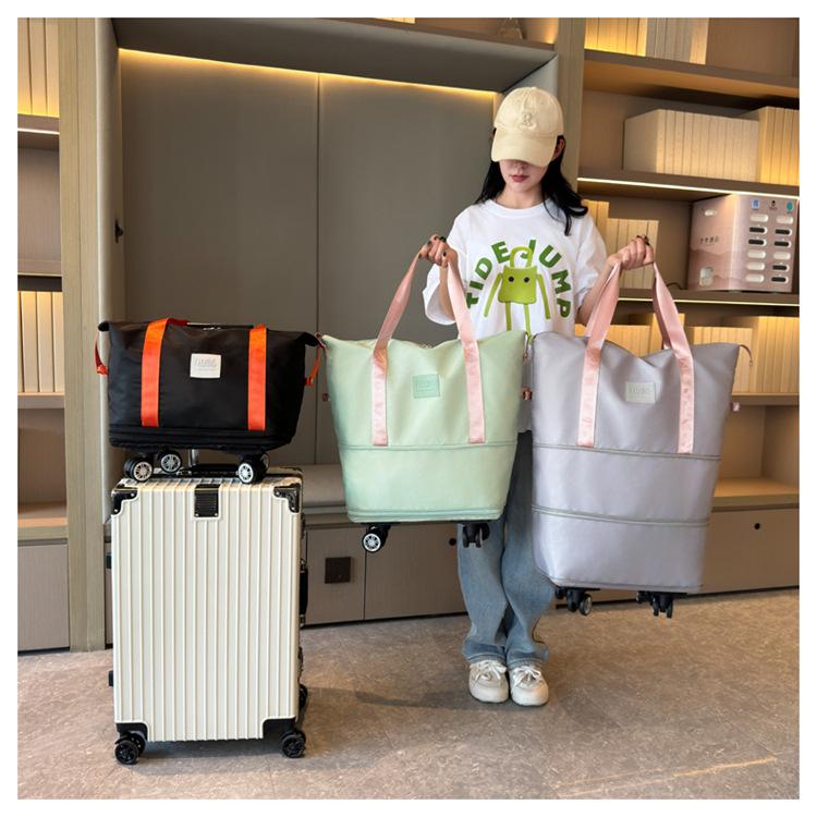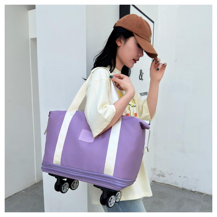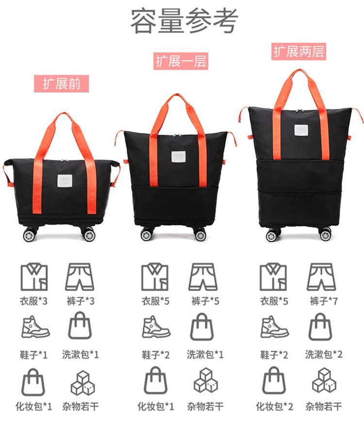 Nueva Bolsa de Ruedas Doble Capa de Súper Gran Capacidad Extendida Bolsa de Viaje de Corta Distancia Bolsa de Equipaje de Negocios Bolso de Mano para Mudanzas