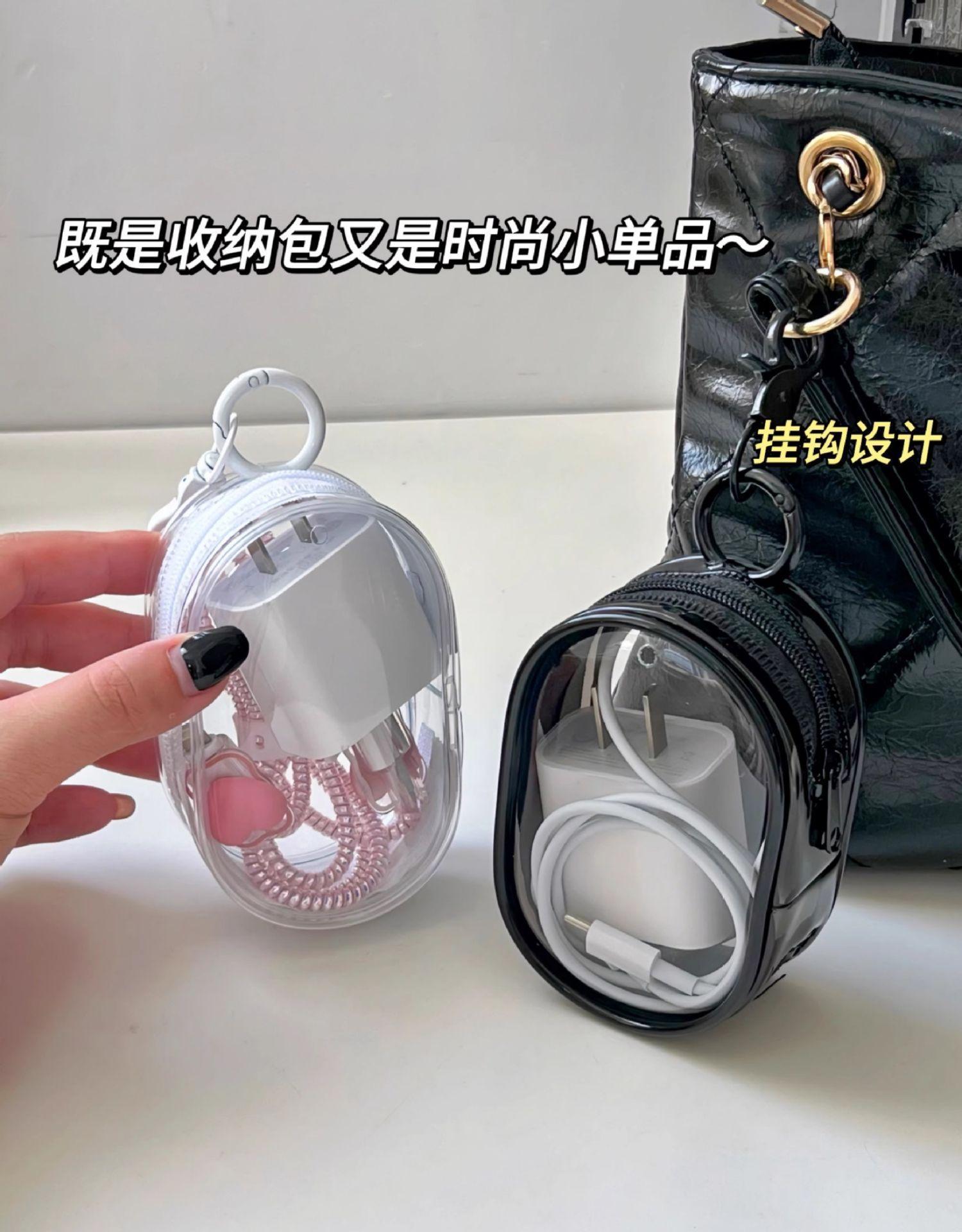 Cargador de cable de datos, almacenamiento de carga, bobinado transparente, portátil, caja de almacenamiento para auriculares, bolsa de acabado para teléfono móvil