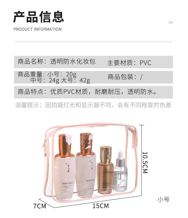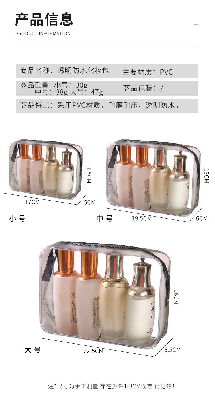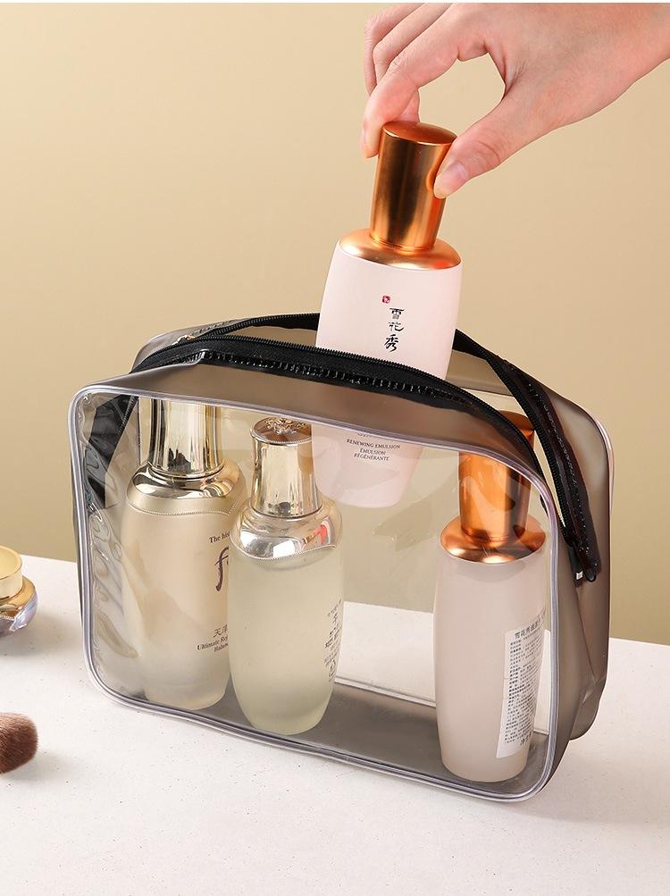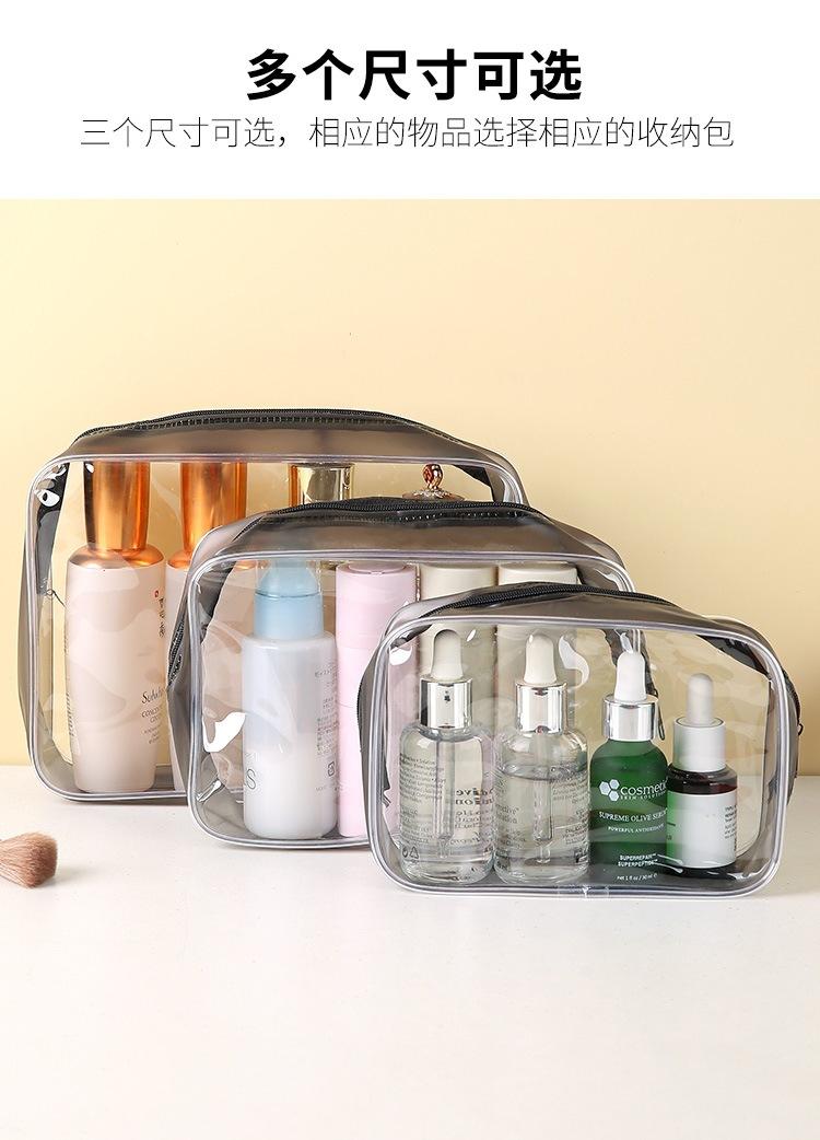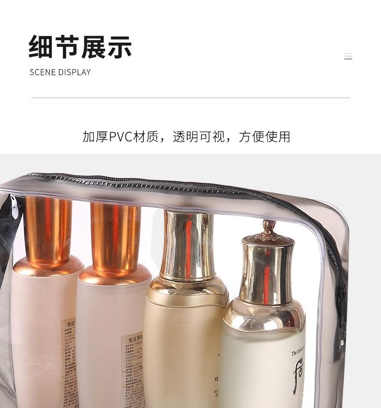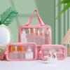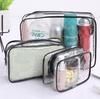 Bolsa de cosméticos de tres piezas de PVC, portátil, con cremallera, de gran capacidad, impermeable, para viaje.
