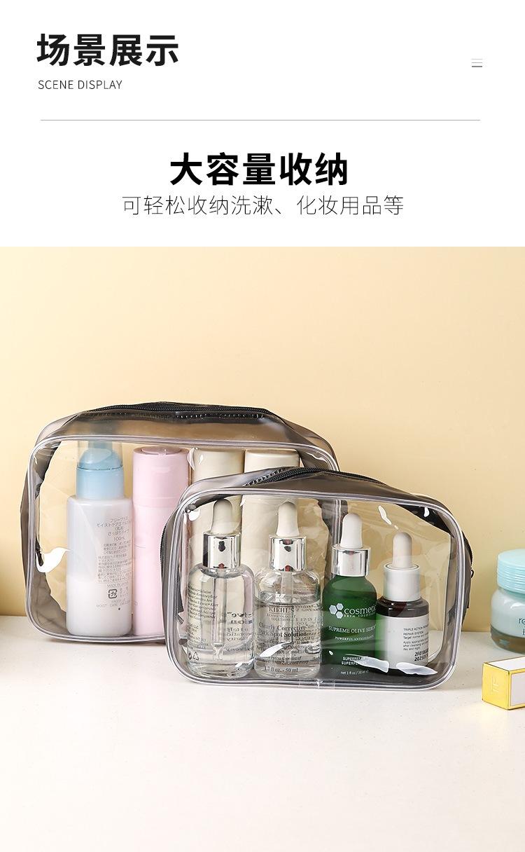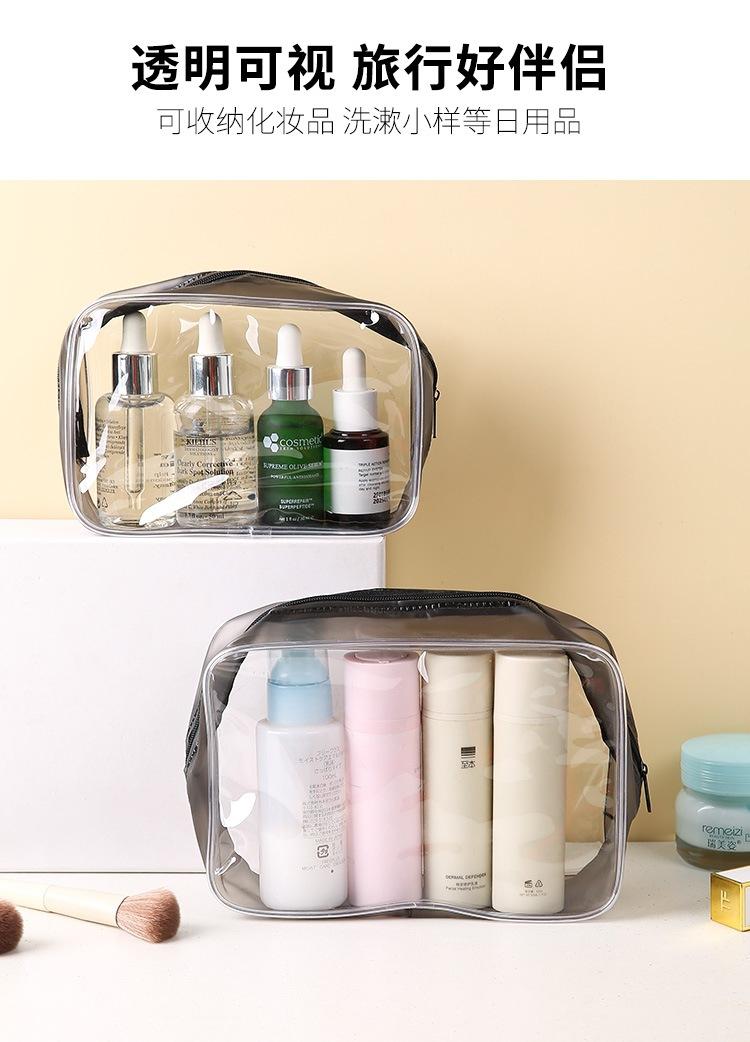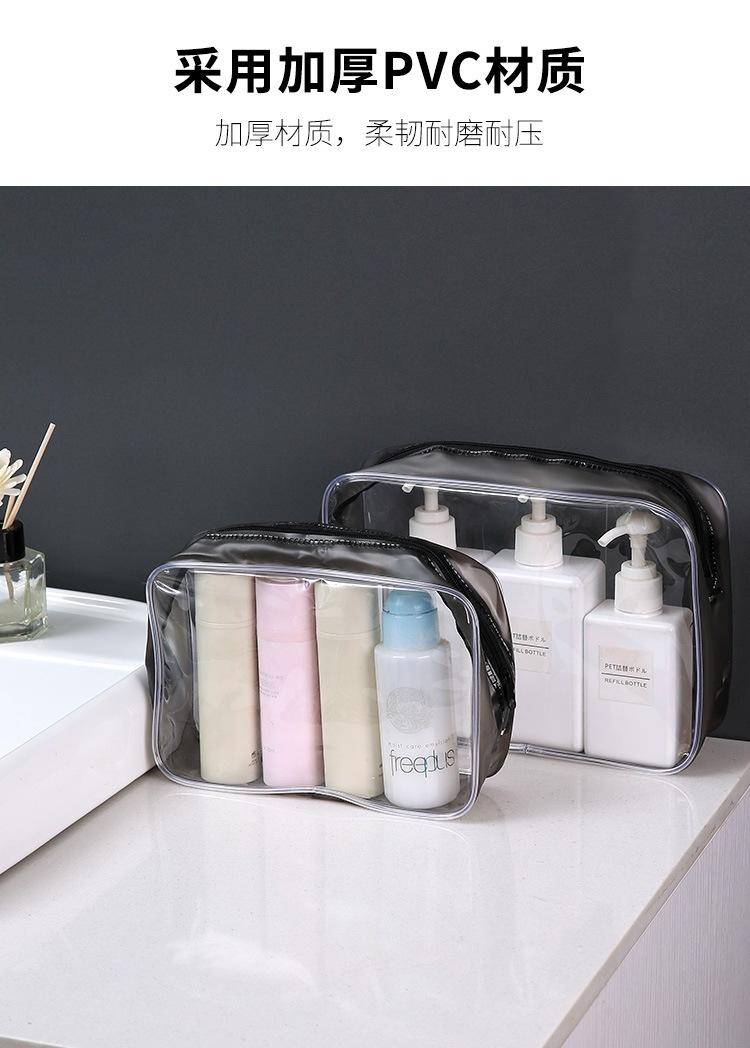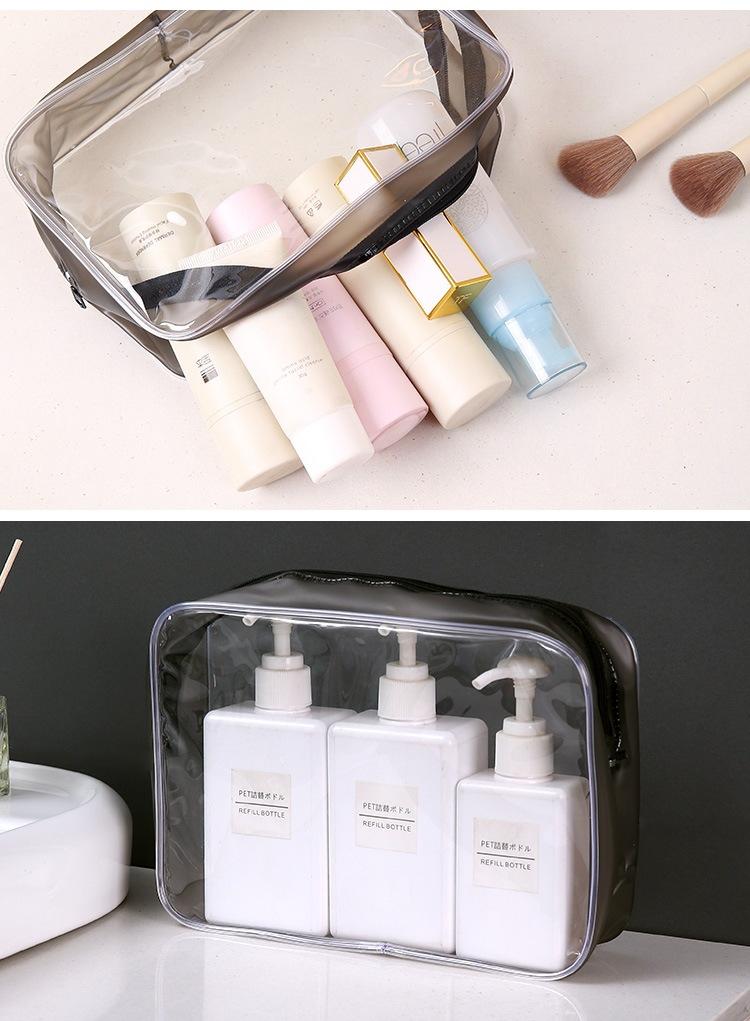 Bolsa de cosméticos de tres piezas de PVC, portátil, con cremallera, de gran capacidad, impermeable, para viaje.