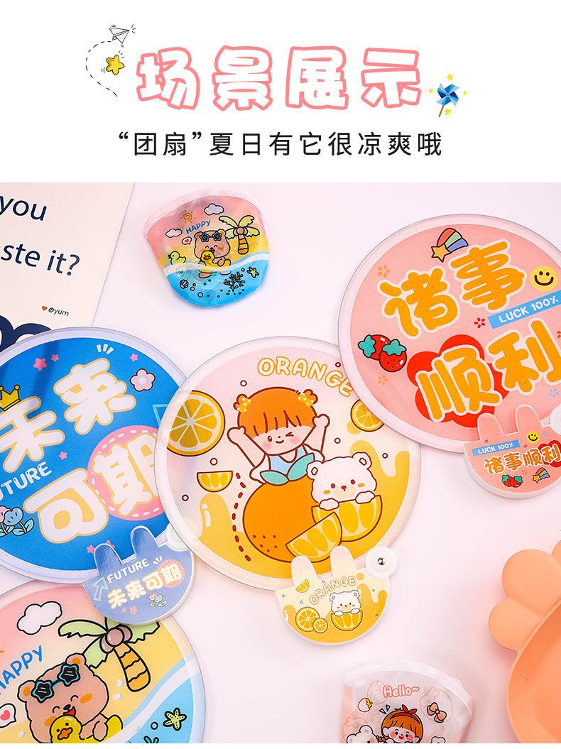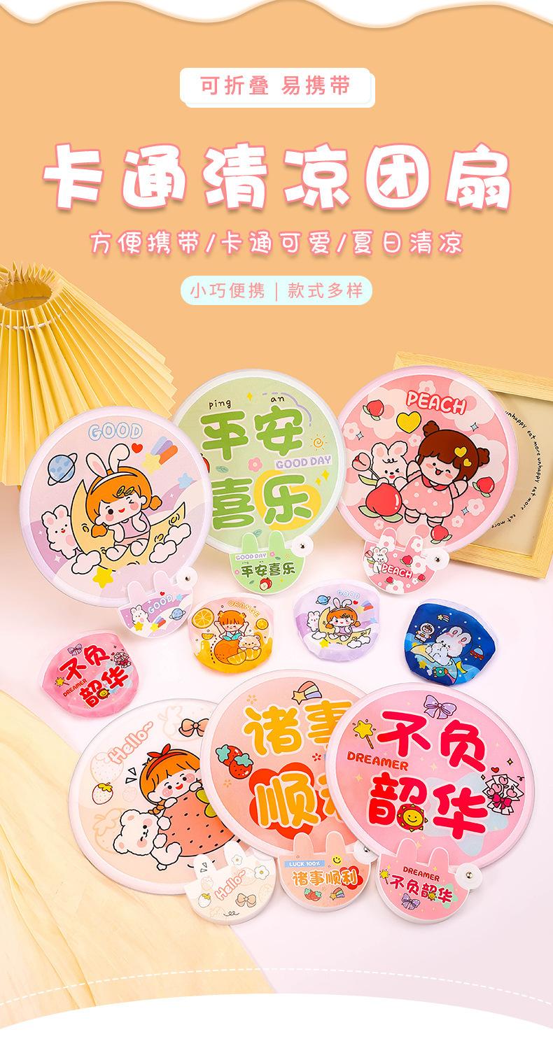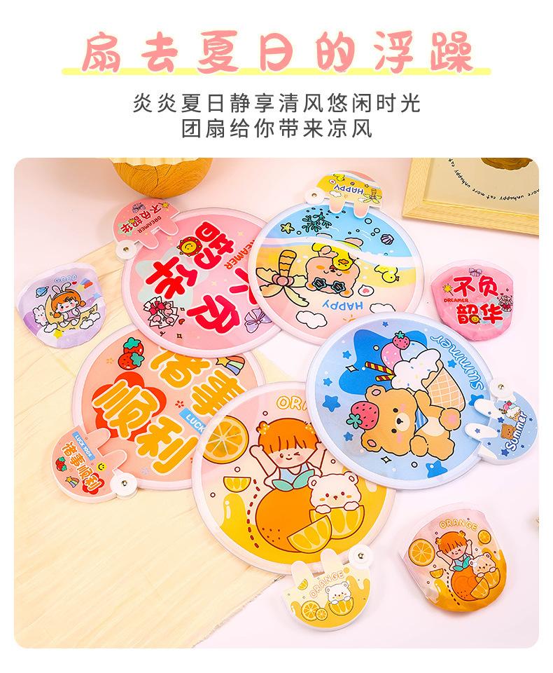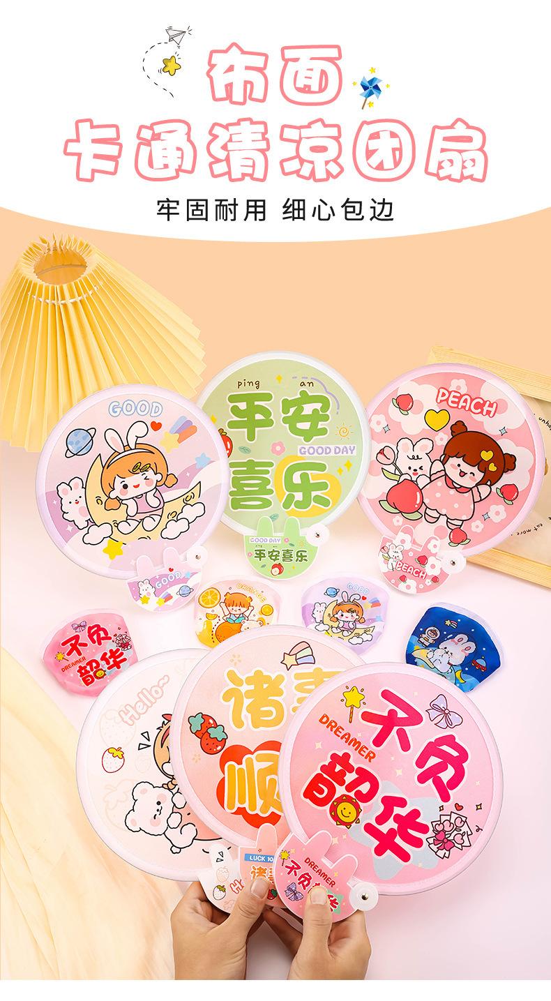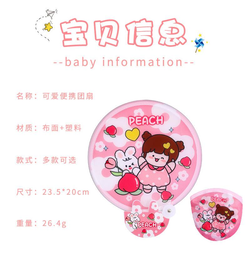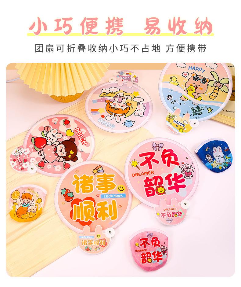 Abanico plegable lindo mini abanico portátil de tela regalo de vacaciones con asa abanico plegable pequeño abanico redondo