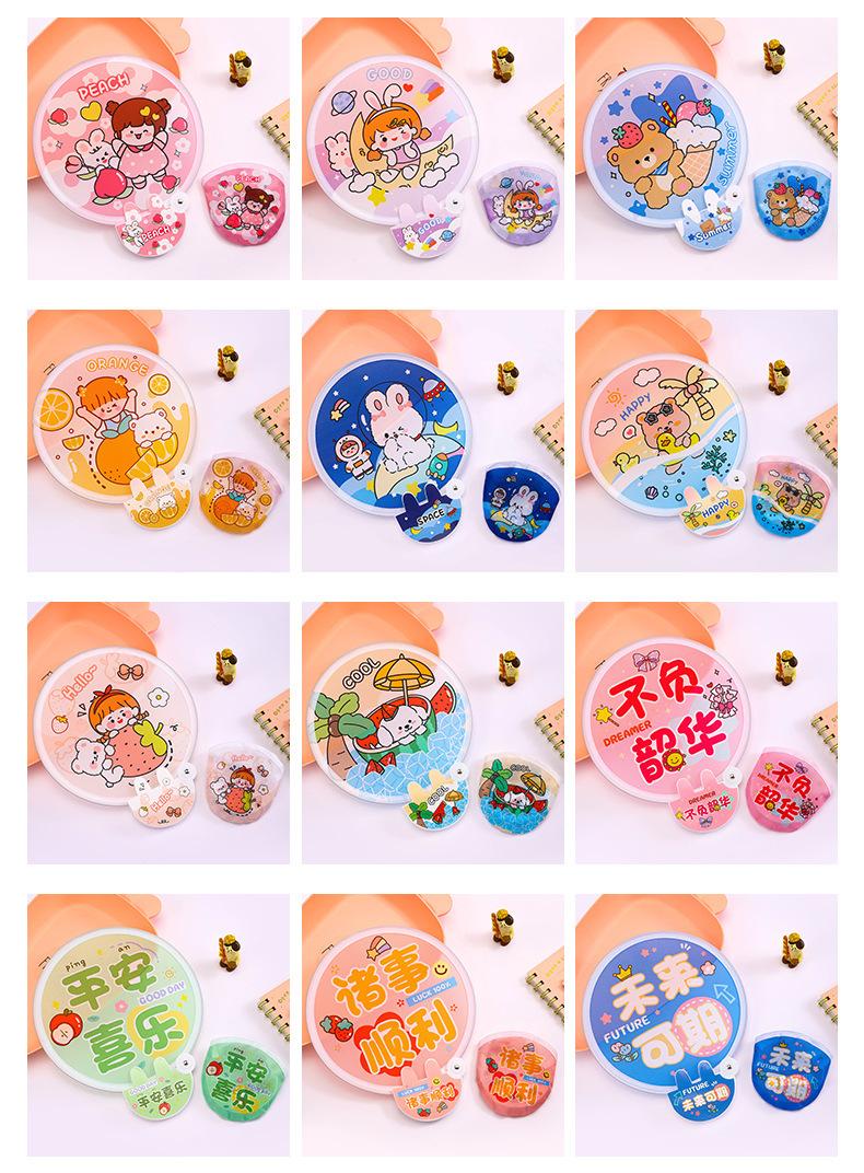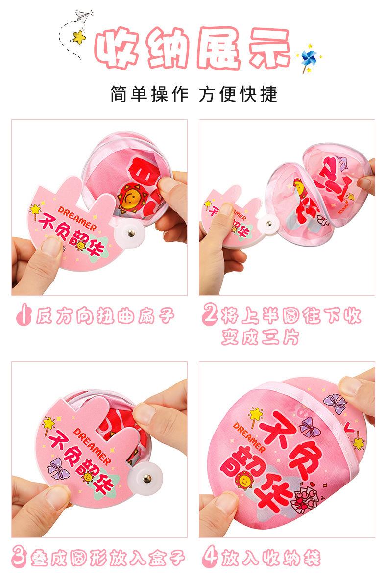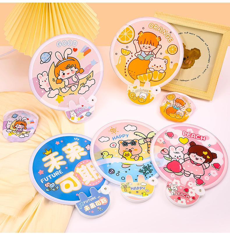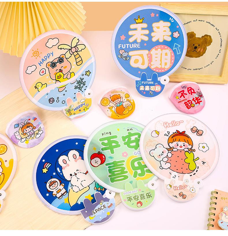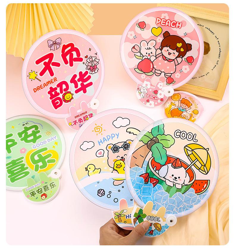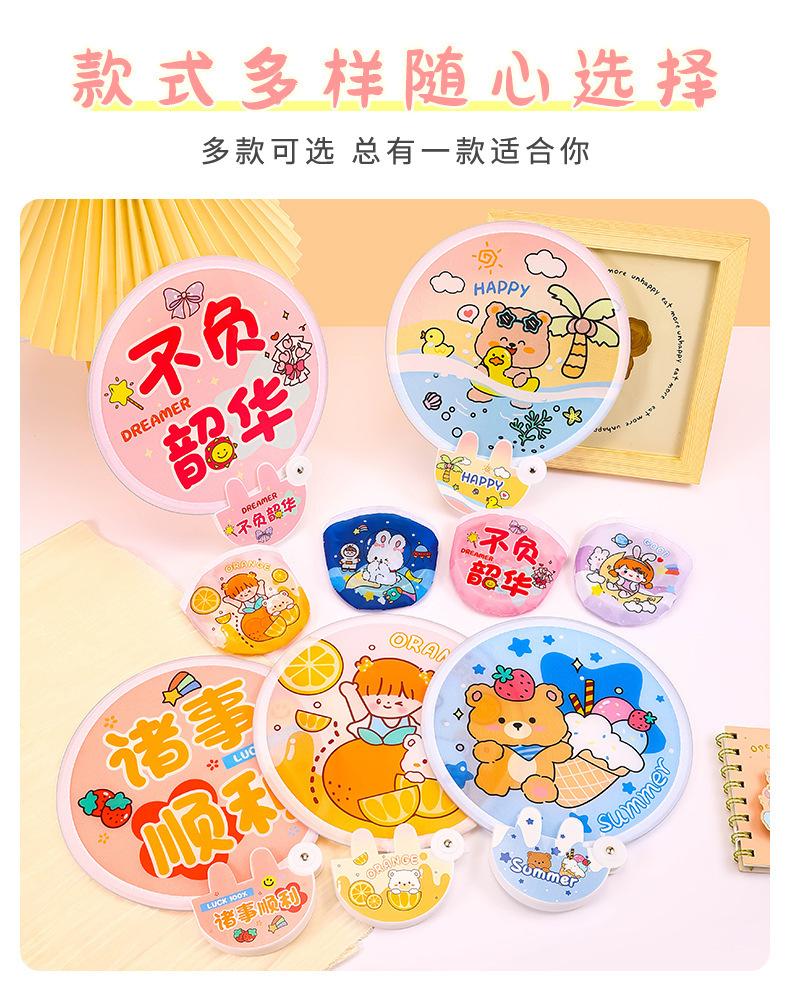 Abanico plegable lindo mini abanico portátil de tela regalo de vacaciones con asa abanico plegable pequeño abanico redondo