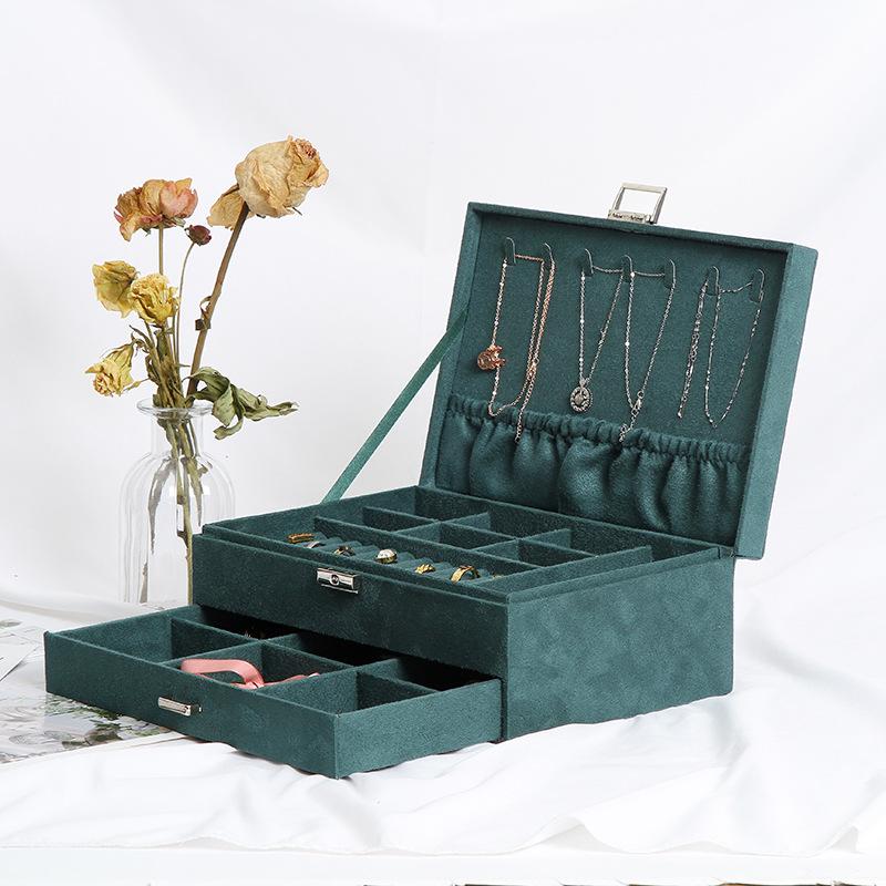 | Caja de joyería simple portátil de doble capa del fabricante caja de joyería rectangular caja de almacenamiento de anillos pendientes | Collar de Anillo de Gancho Retro Verde a Prueba de Polvo Caja de Joyería de una Sola Capa Aretes Joyería Pulsera Caja de Almacenamiento Exhibición | Caja de almacenamiento de joyería de anillo coreano de madera maciza verde vintage multicapa de gamuza pendientes pendientes caja de joyería de estilo antiguo | ||