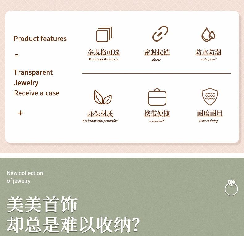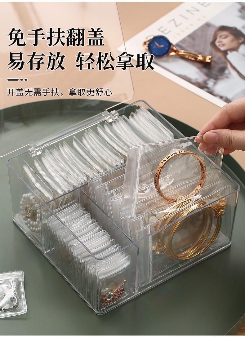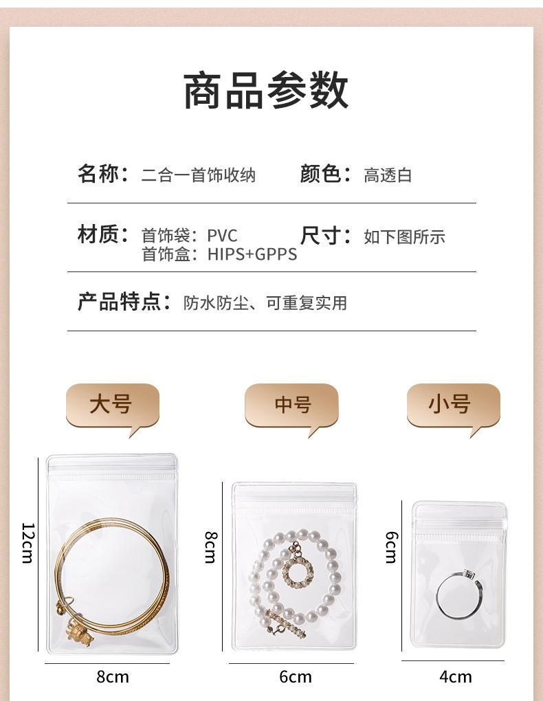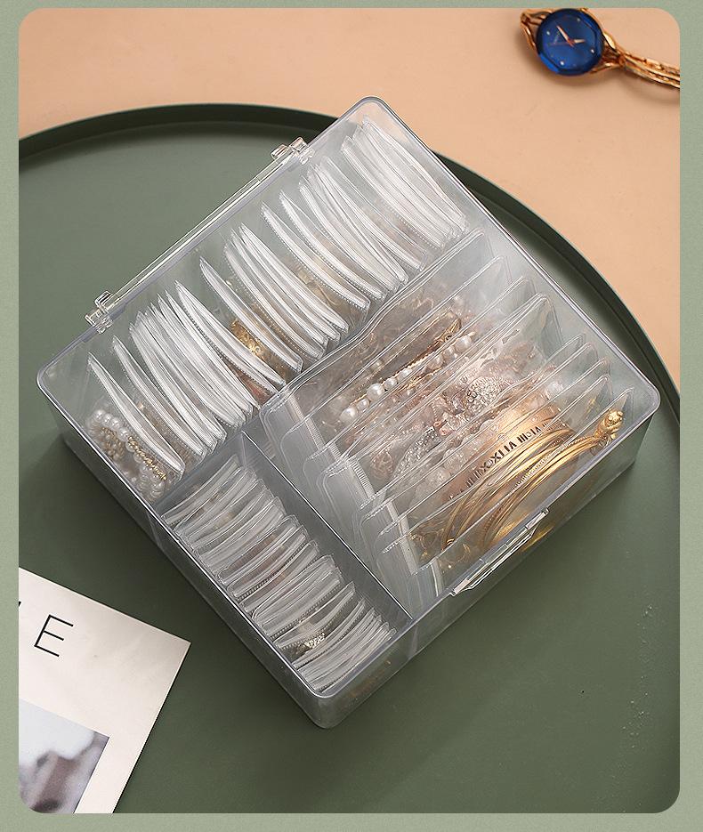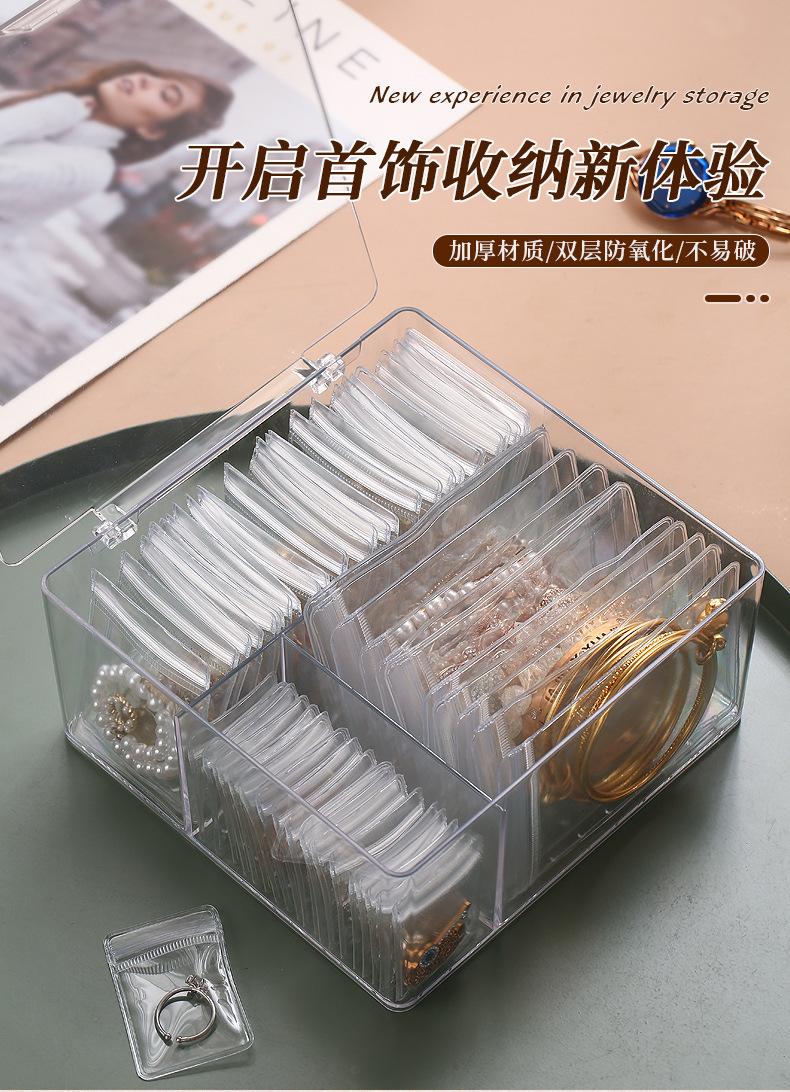 Modelo de la imagen principal (caja de joyería + 30 bolsas para joyas), embalaje individual independiente, tamaño del embalaje 22*13*22.5CM, peso 0.6kg; sin caja exterior, los clientes que necesiten una caja exterior pueden personalizar la caja exterior según los requisitos; los productos grandes se embalan en una bolsa tejida con 24 piezas;
