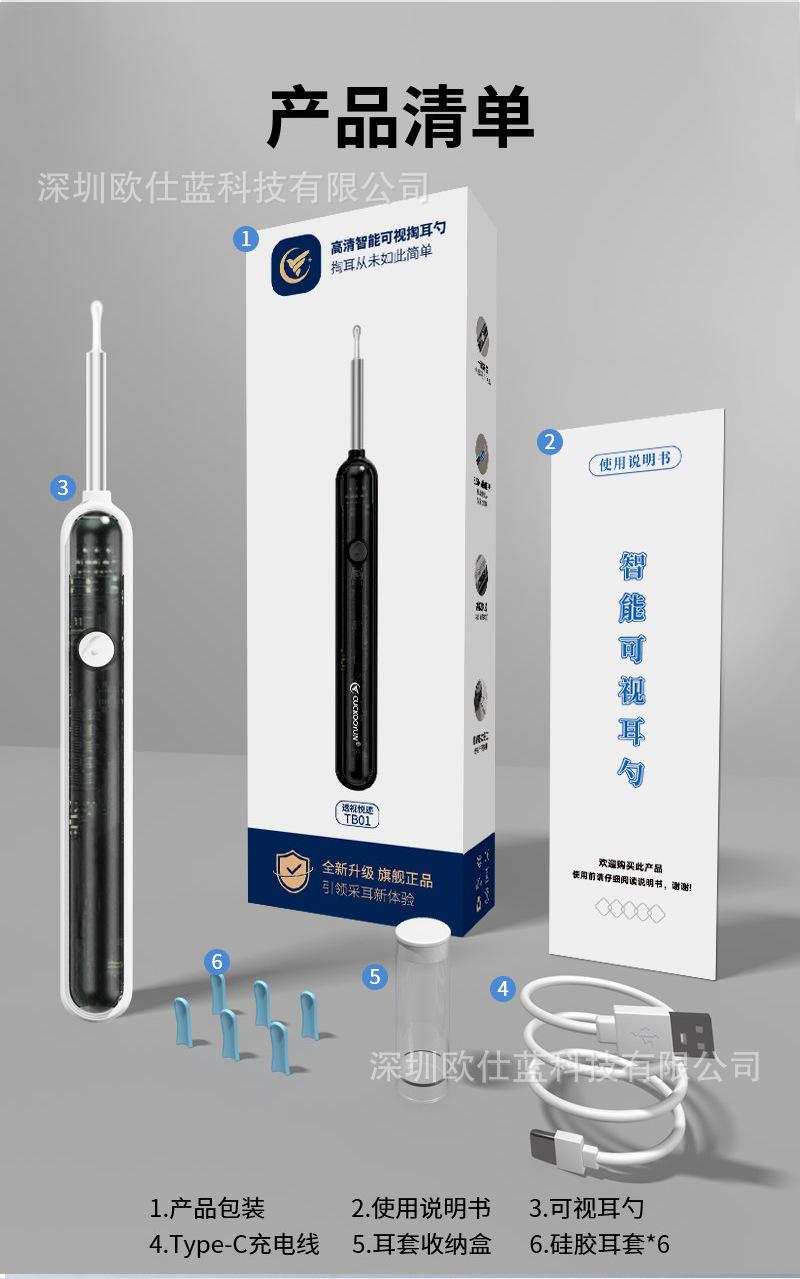 Ventajas del producto limpiador de oídos visual TB01: batería de polímero incorporada, equipado con sensor de imagen de alto rendimiento y sensor de gravedad de tres ejes, imagen clara, función estable, estilo novedoso, material real y bajo precio, cabezal de cuchara integrado es seguro, ¡bienvenido a cambiar el paquete!