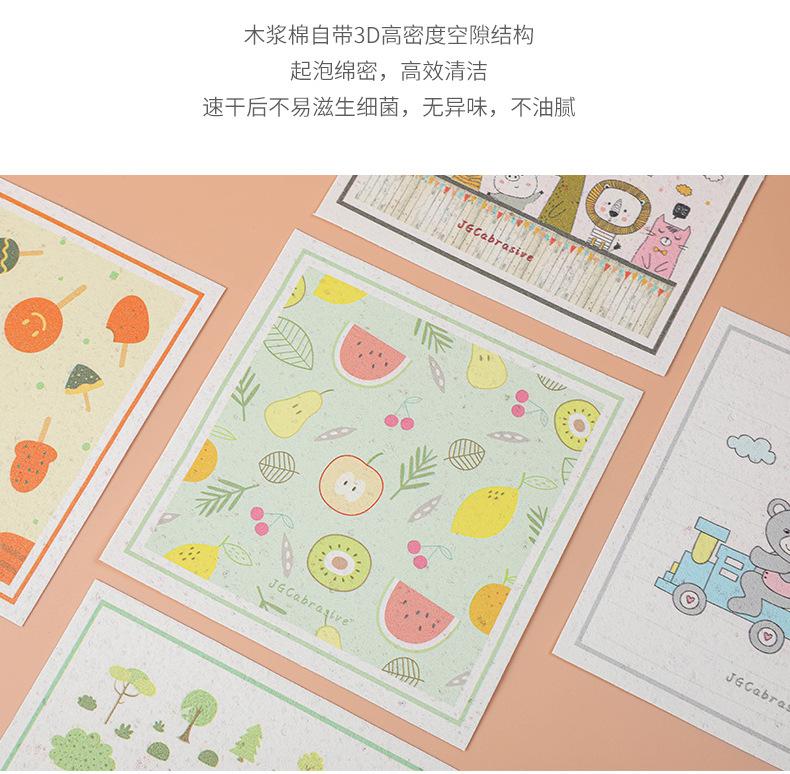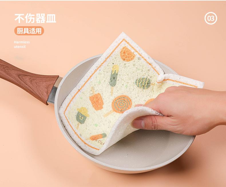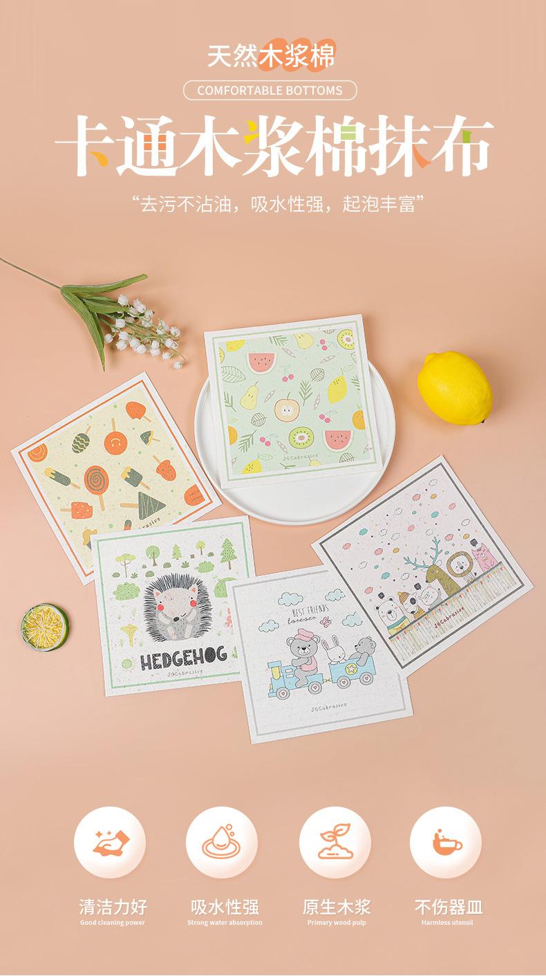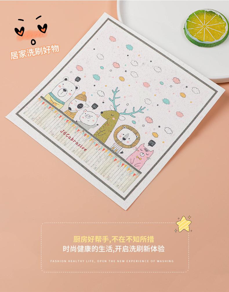 Trapo de cocina de algodón de pulpa de madera de dibujos animados, absorbente, a prueba de aceite, descontaminante, paño de esponja, estropajo, paño de lavado de platos de fibra de madera, toalla para lavar platos