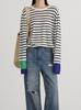 Camiseta de Manga Larga a Rayas con Contraste de Color Binglinen para Mujer, Holgada, Nueva de Primavera y Verano, Cuello Redondo, Top Protector Solar, Camiseta Básica Interior