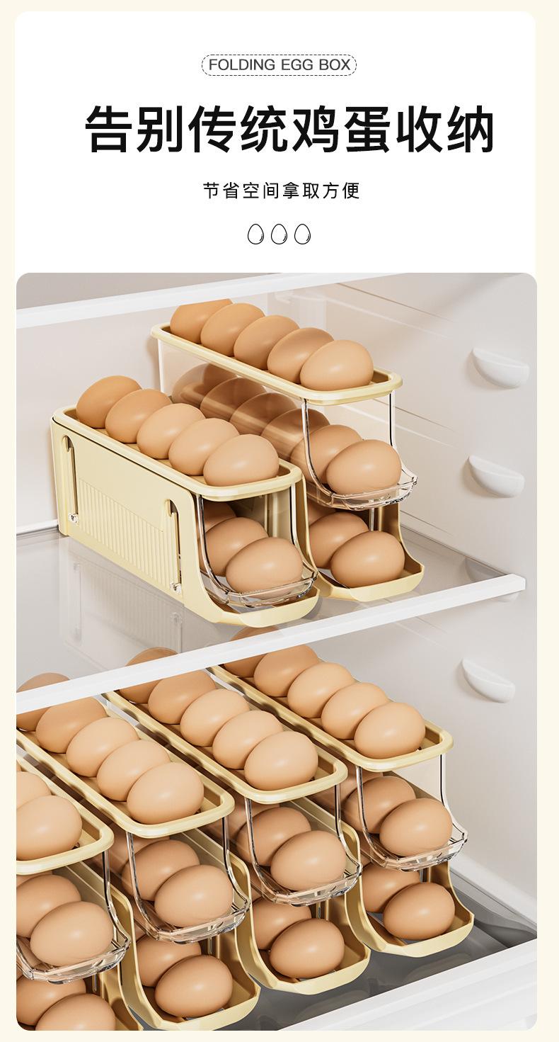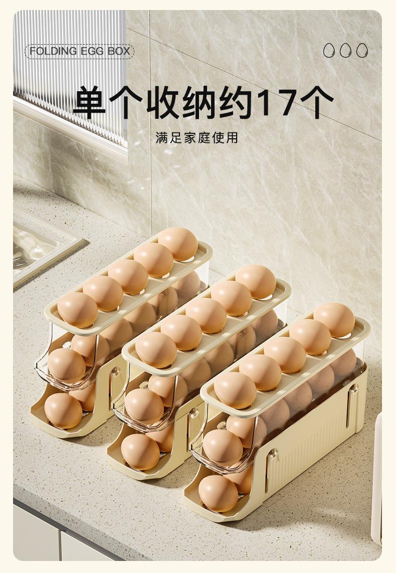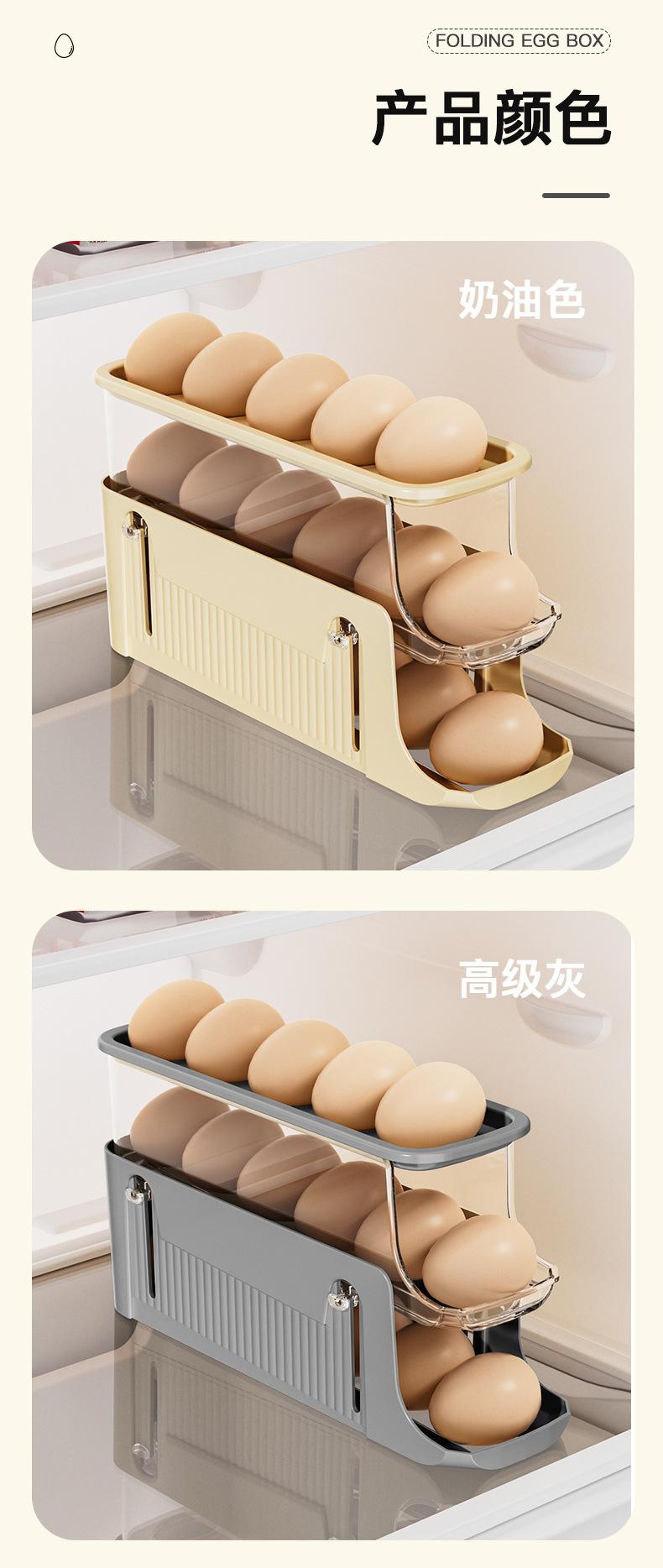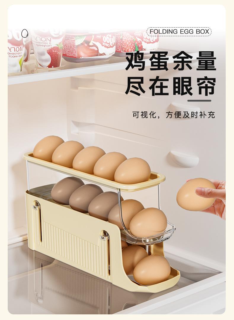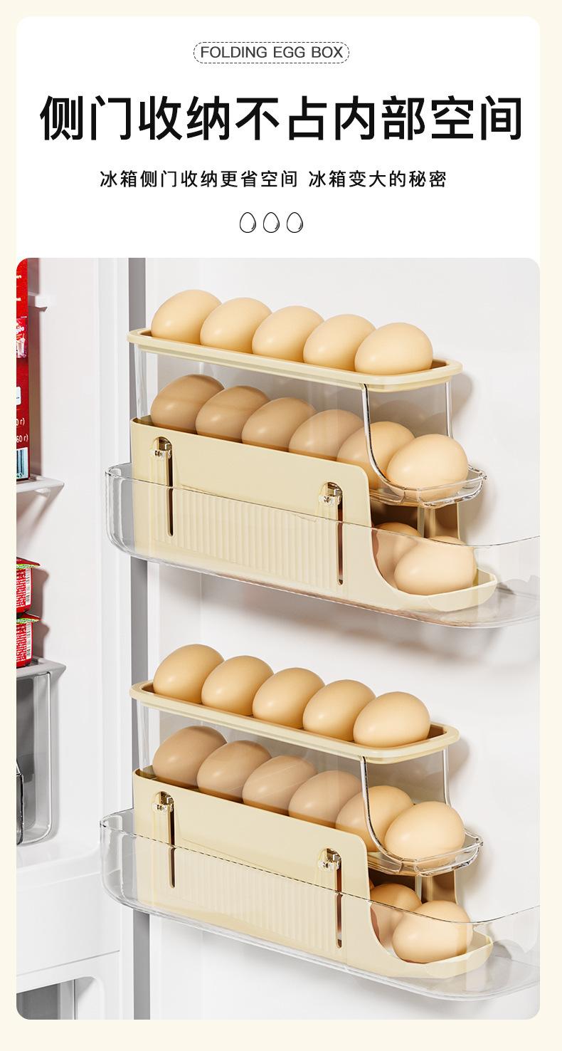 Caja de Almacenamiento de Huevos Tipo Deslizante Rodillo para Huevos Conservación Fresca Puerta Lateral del Refrigerador Tres Capas Gran Capacidad Plegable Estante Rodante para Huevos