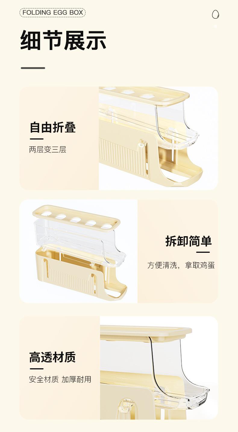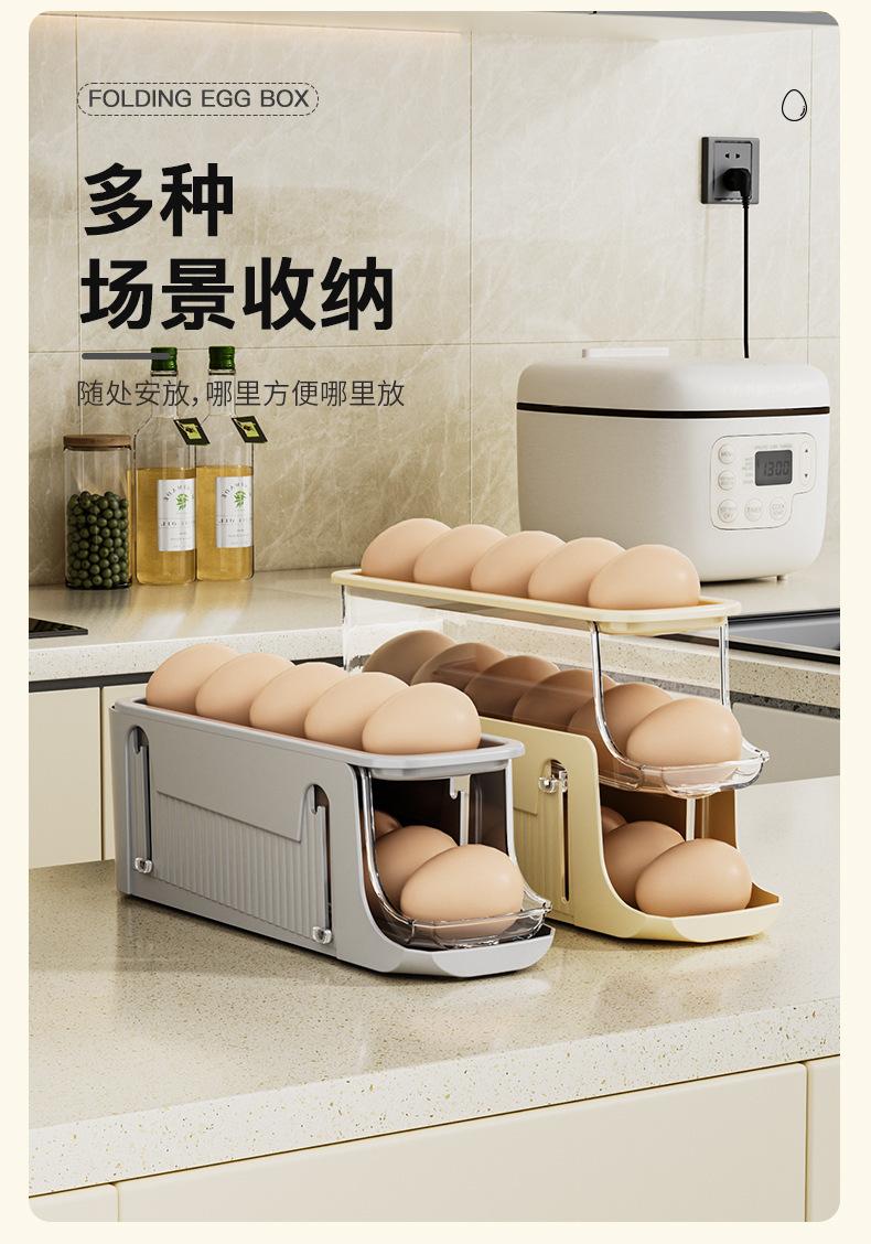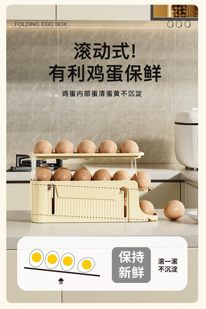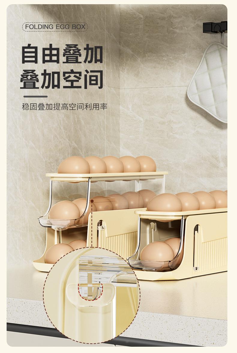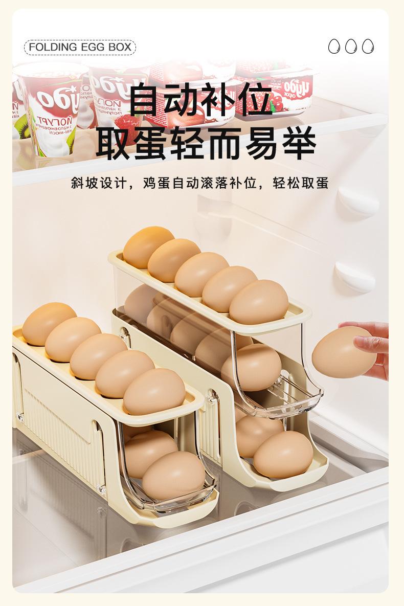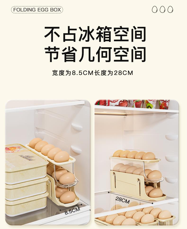 Caja de Almacenamiento de Huevos Tipo Deslizante Rodillo para Huevos Conservación Fresca Puerta Lateral del Refrigerador Tres Capas Gran Capacidad Plegable Estante Rodante para Huevos
