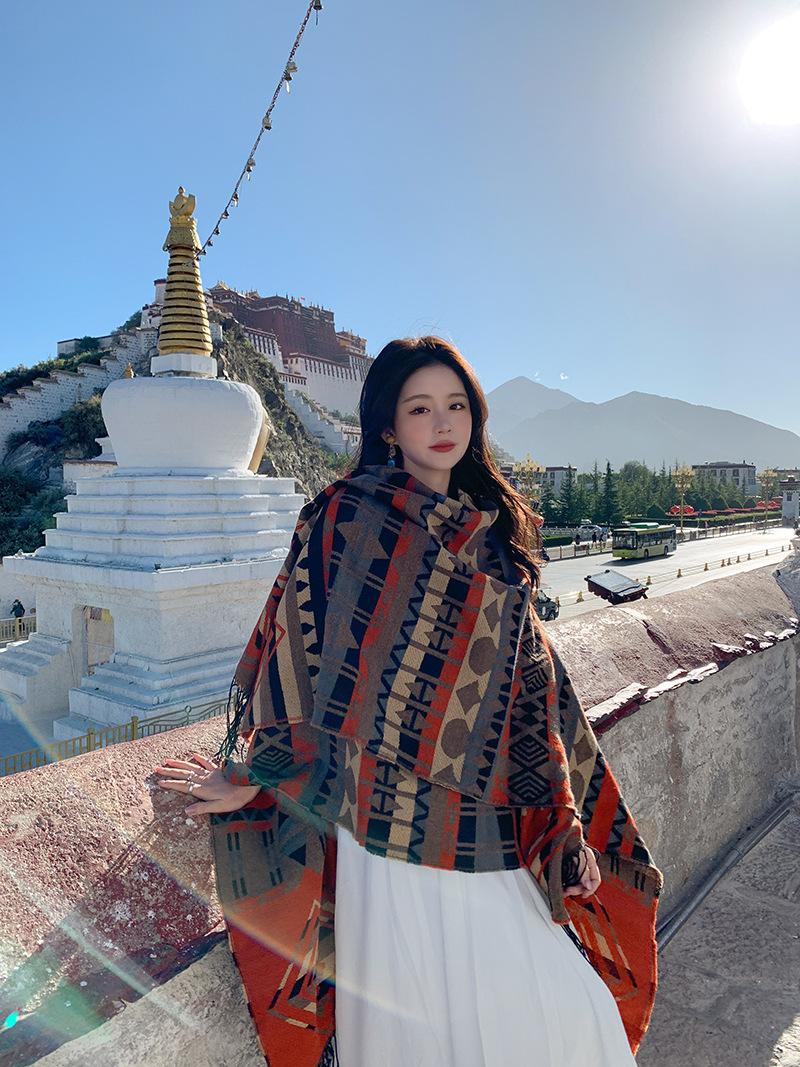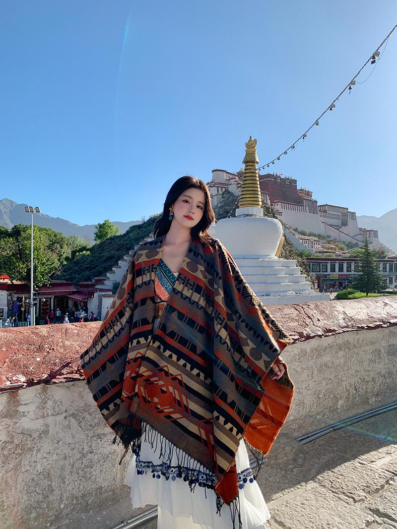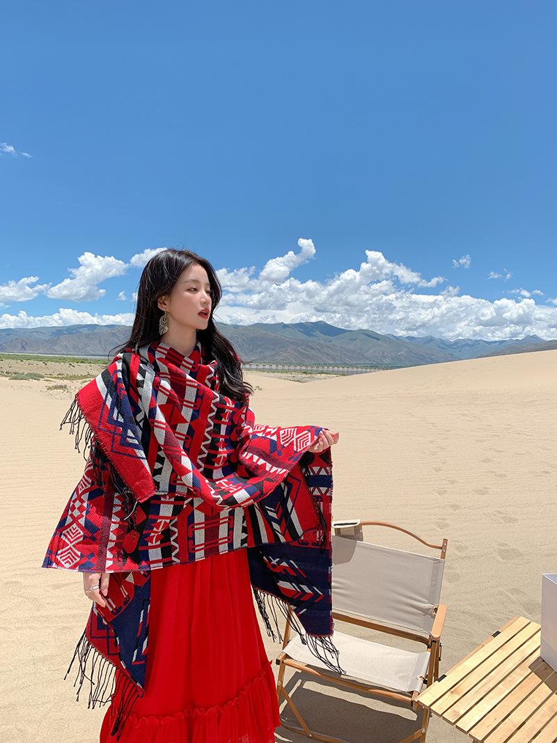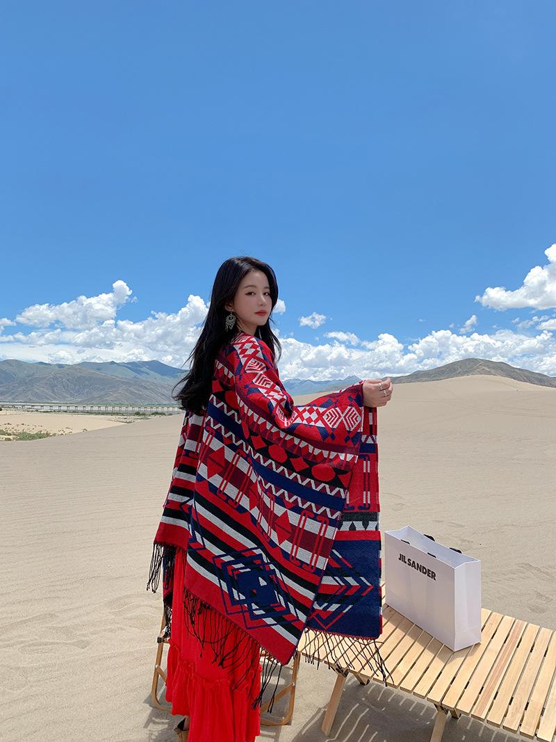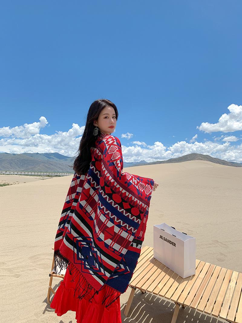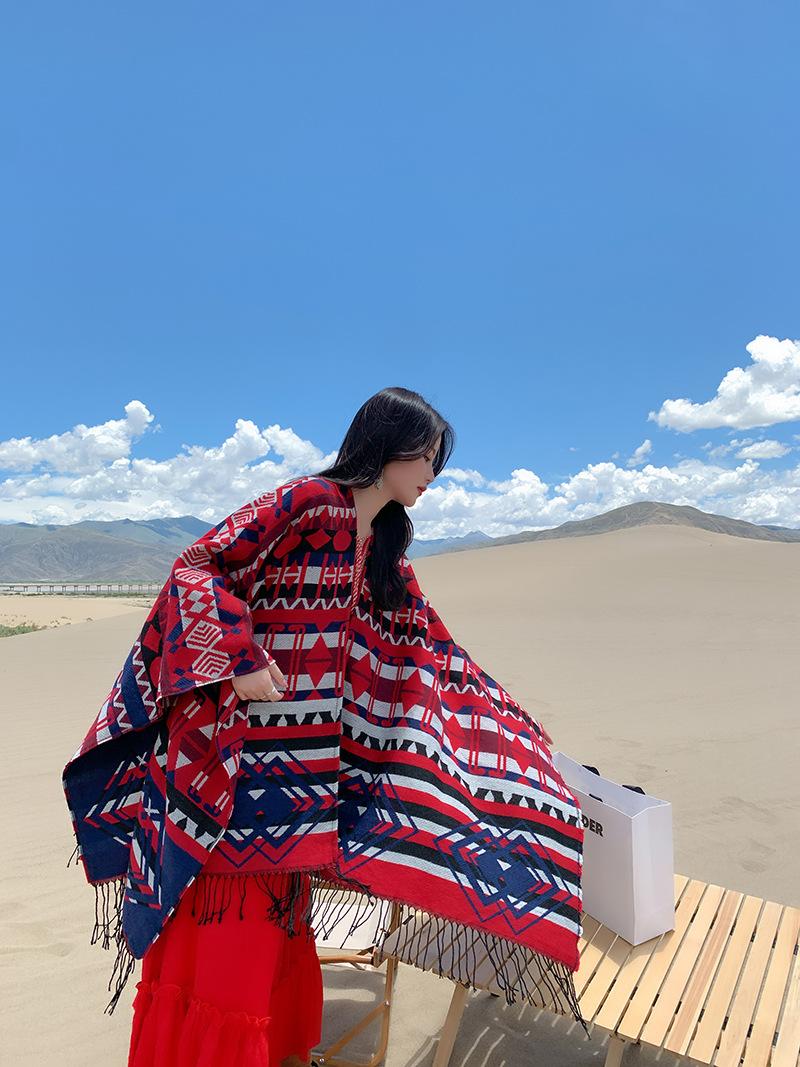 Bufanda Xizang estilo étnico Lijiang fotografía de viaje otoño e invierno bohemio doble uso chal cálido capa para mujer