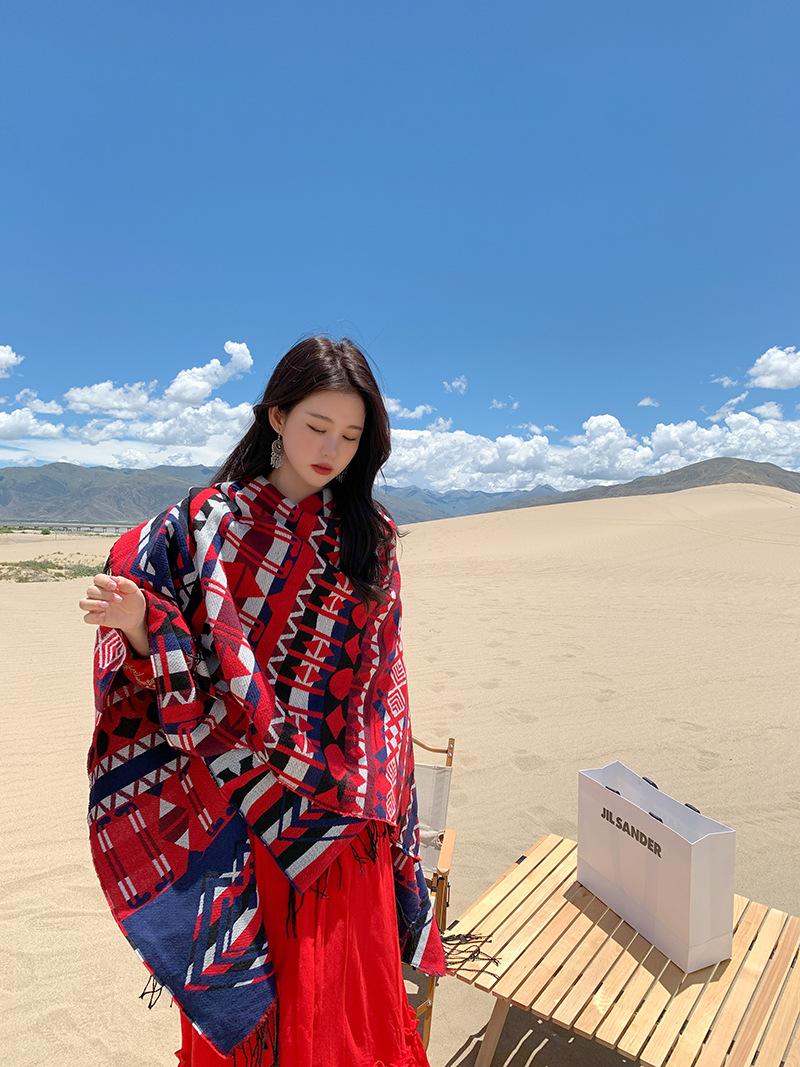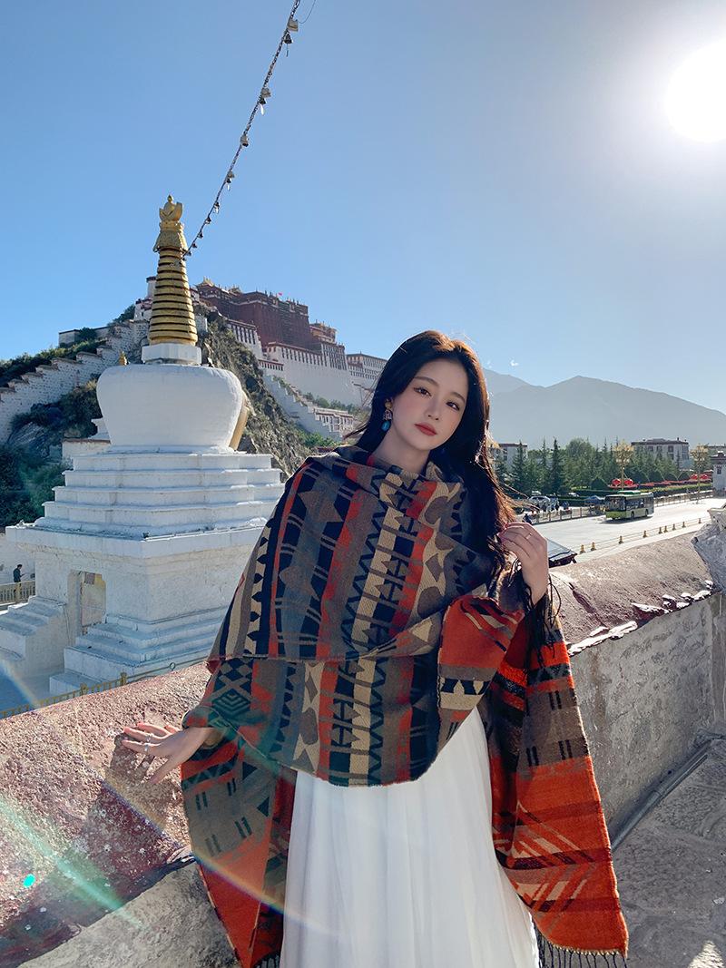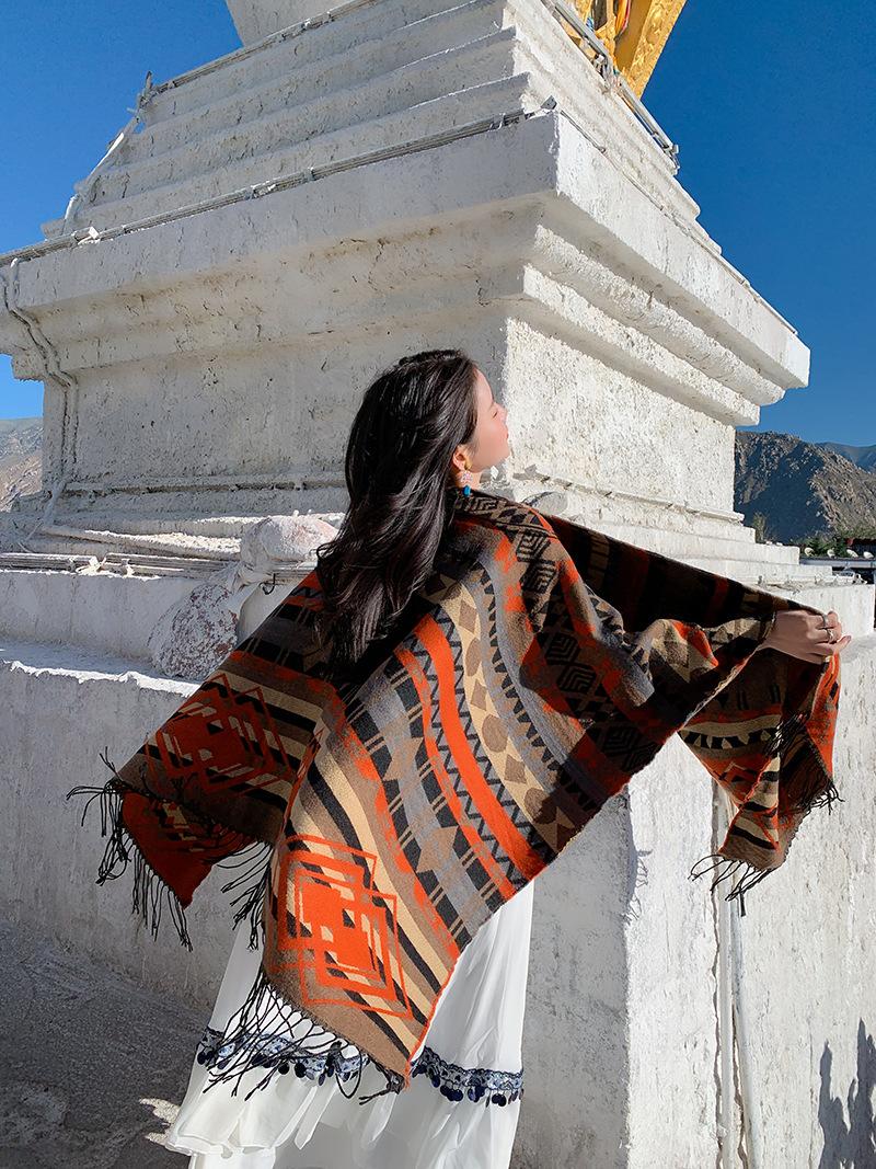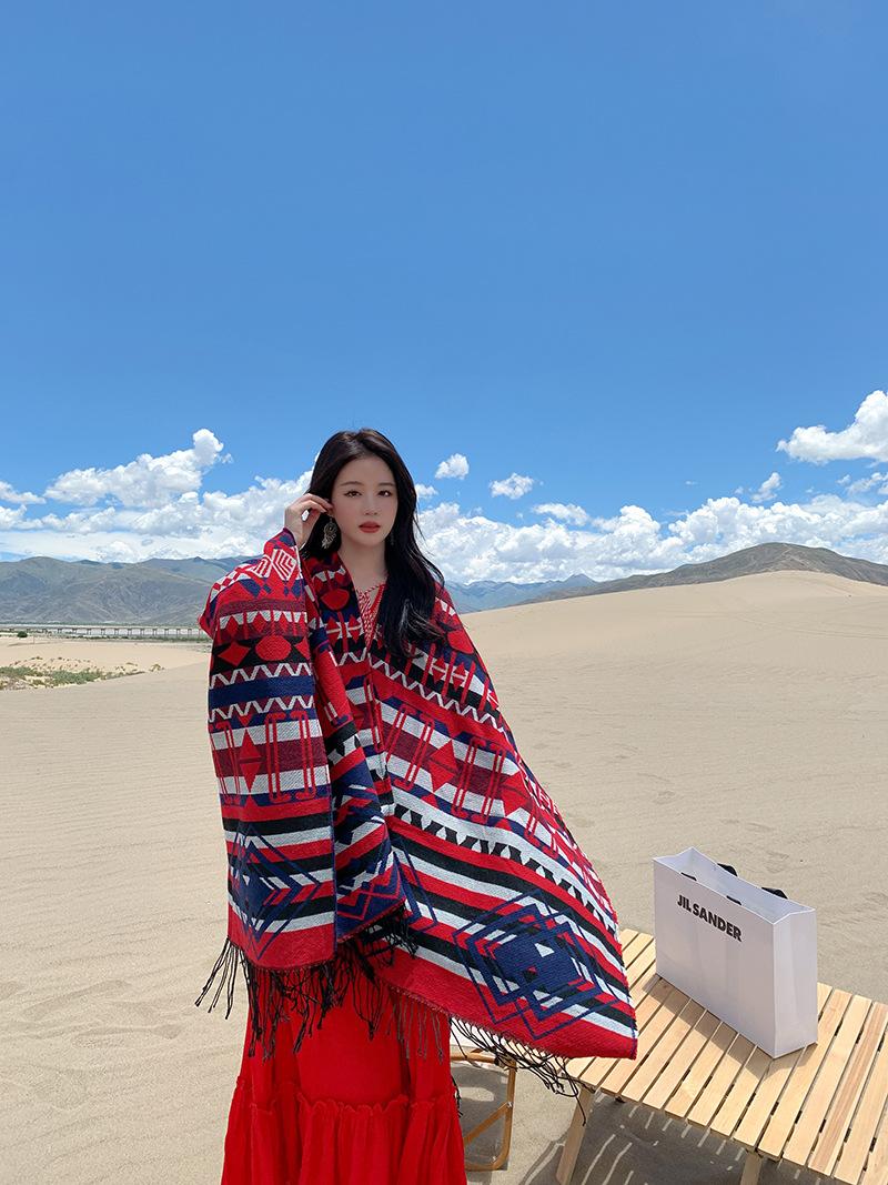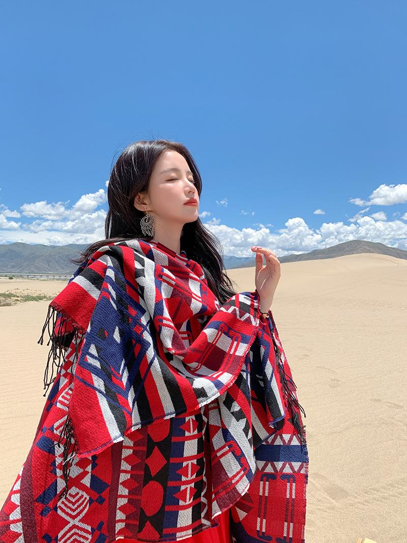 Bufanda Xizang estilo étnico Lijiang fotografía de viaje otoño e invierno bohemio doble uso chal cálido capa para mujer