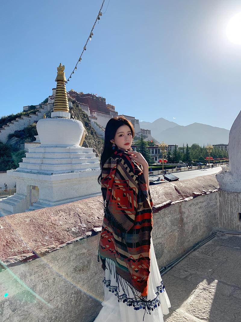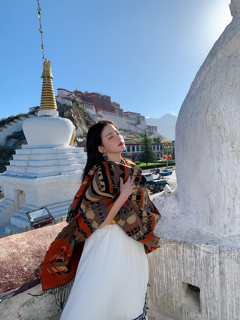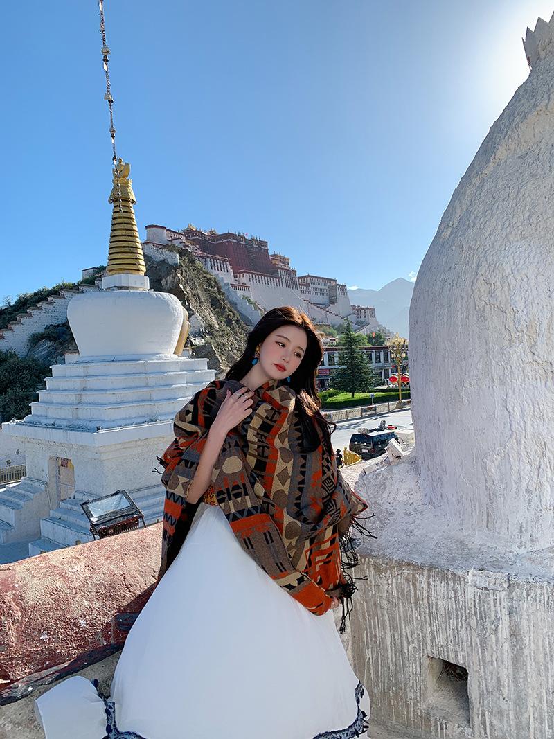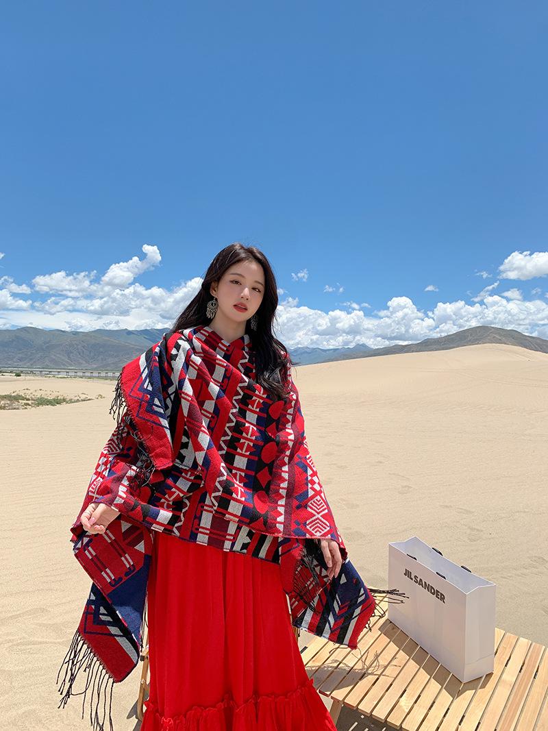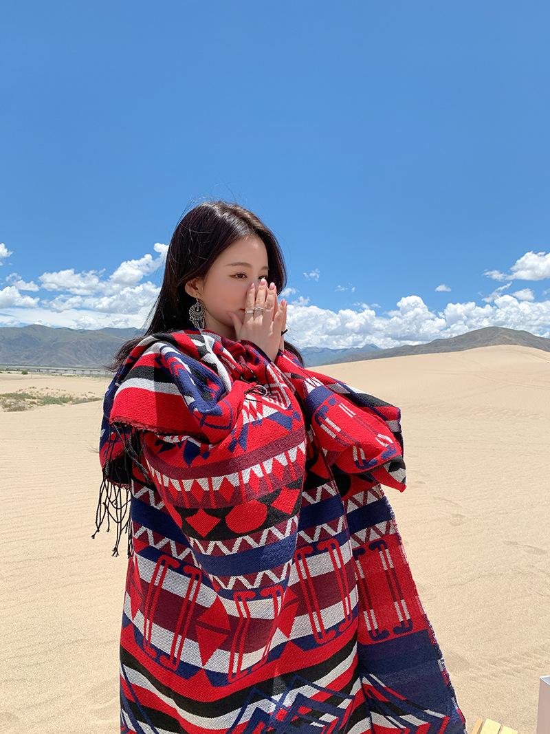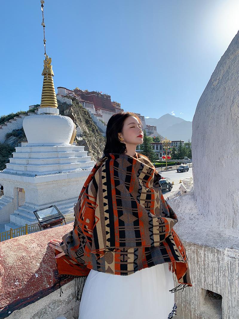 Bufanda Xizang estilo étnico Lijiang fotografía de viaje otoño e invierno bohemio doble uso chal cálido capa para mujer