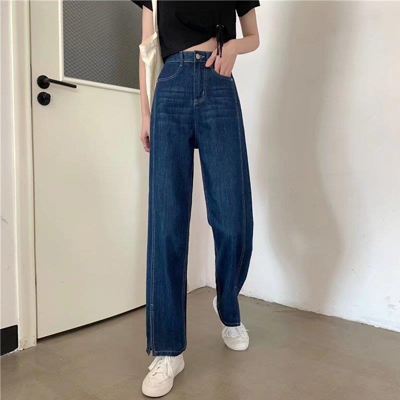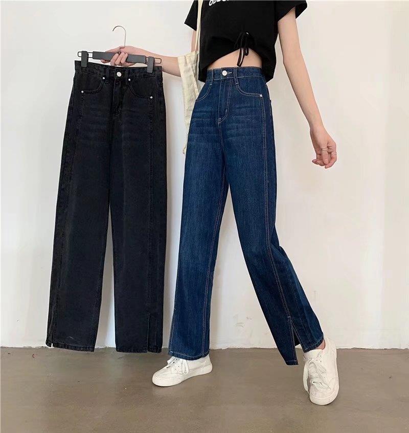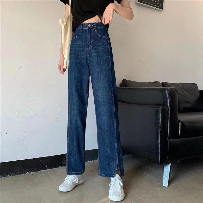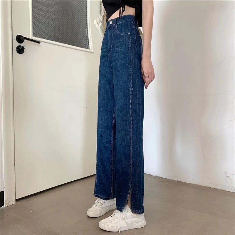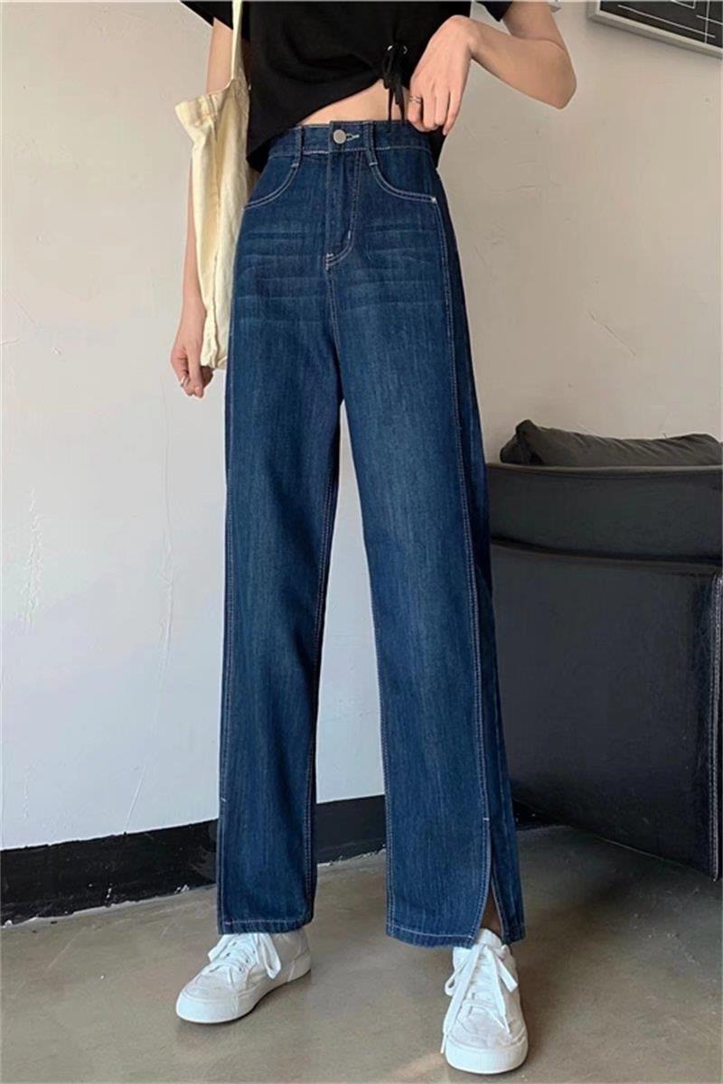 Jeans rectos de talle alto con abertura para primavera y verano para mujer, adelgazantes para gorditas, otoño e invierno, holgados, de pierna ancha, microacampanados, pantalones capri oscuros