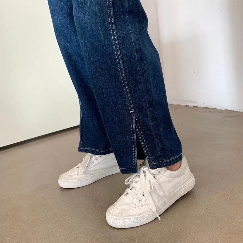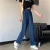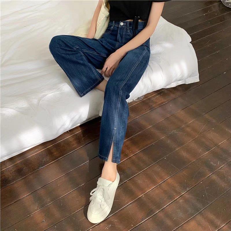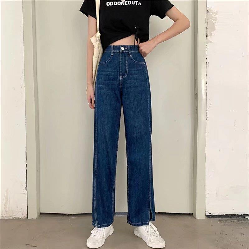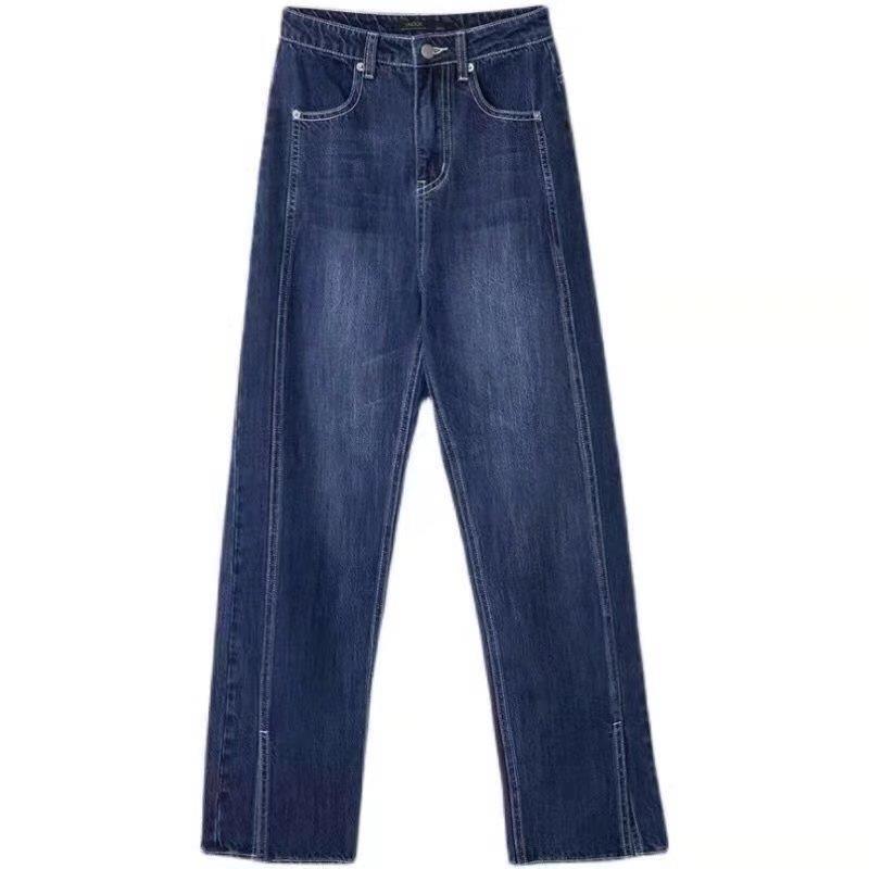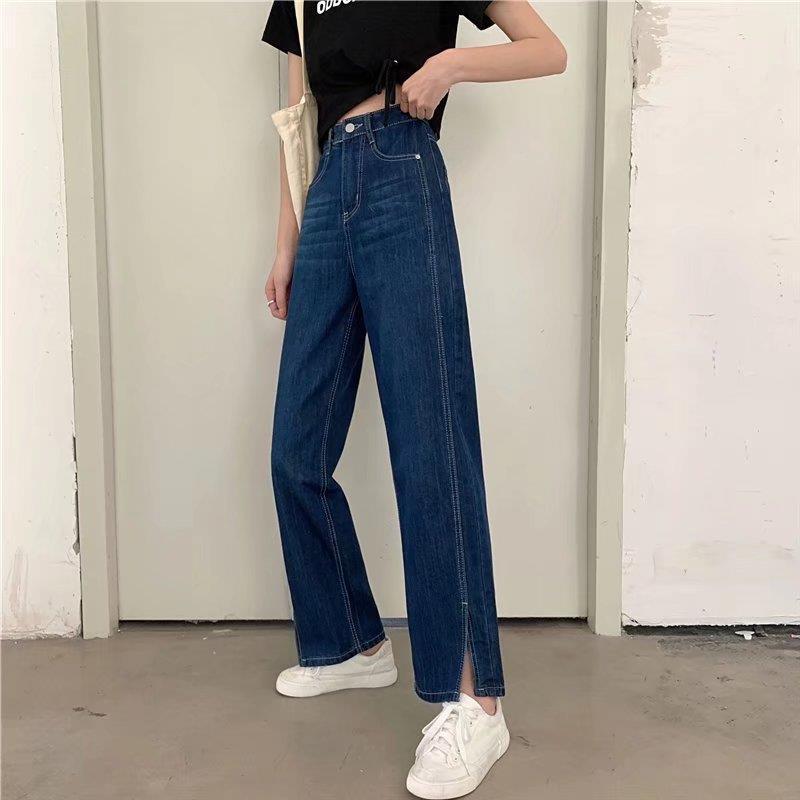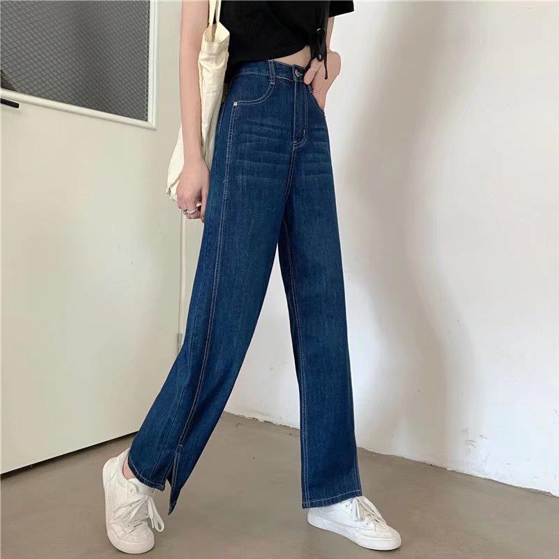 Jeans rectos de talle alto con abertura para primavera y verano para mujer, adelgazantes para gorditas, otoño e invierno, holgados, de pierna ancha, microacampanados, pantalones capri oscuros