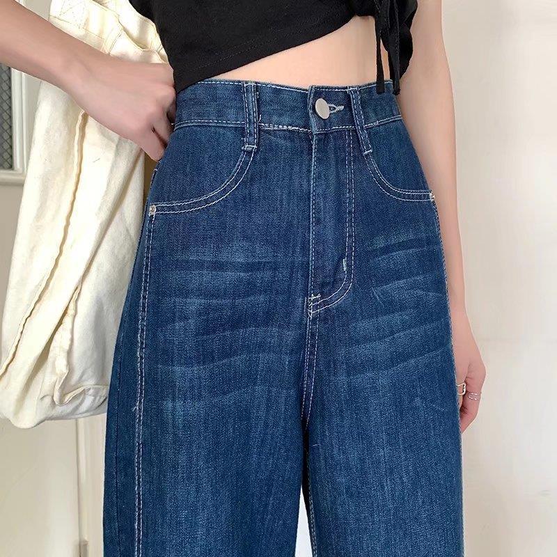 Jeans mujer 2023 verano cintura alta slim versátiles drapeado rectos largos hasta el piso seda helada pantalones de pierna ancha tendencia