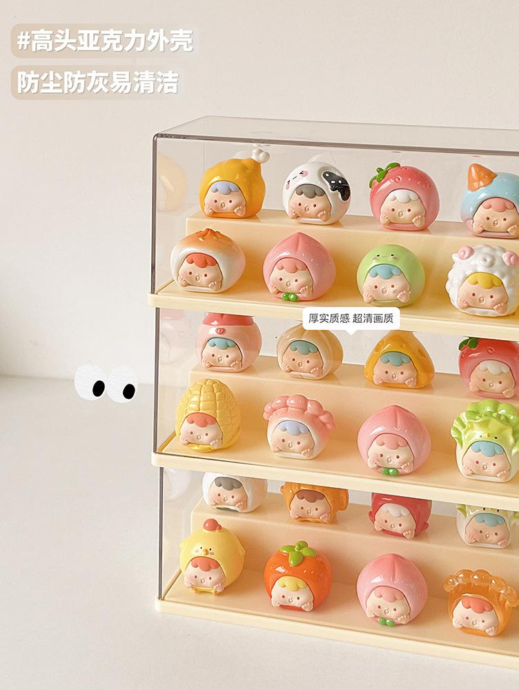 Bonita caja de exhibición de granos, pequeños adornos, vitrina de mano, caja ciega, estante de exhibición, caja de almacenamiento de acrílico transparente a prueba de polvo