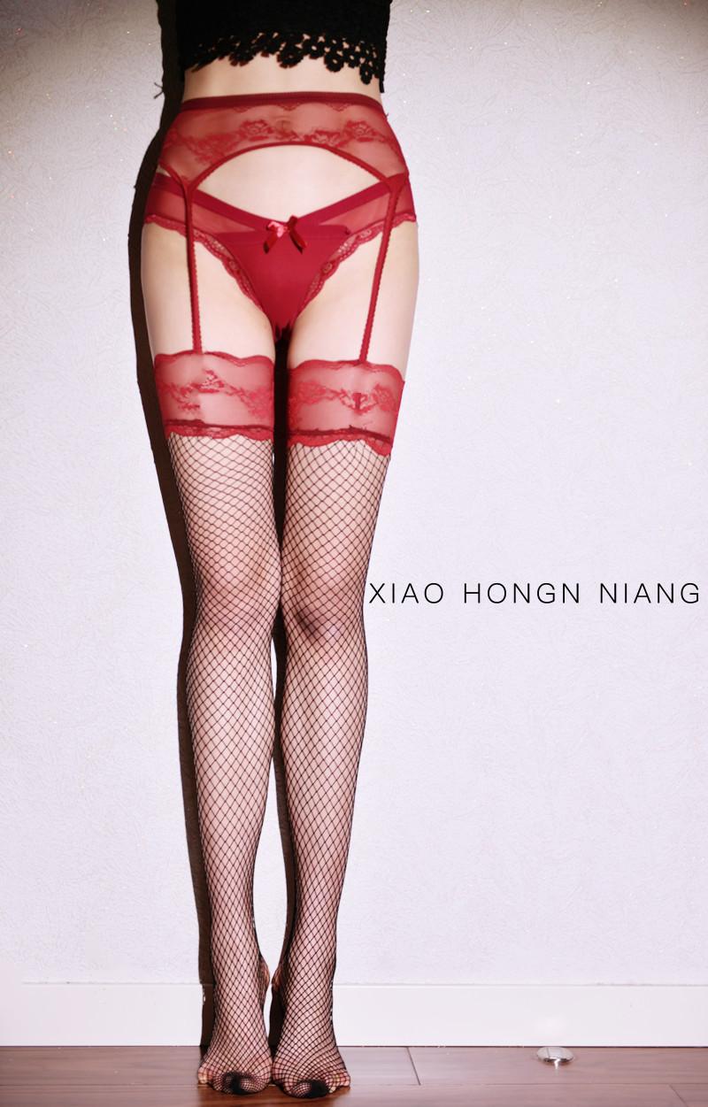 Medias de red integradas con tiras de peonía XHN Medias de encaje por encima de la rodilla para mujer Medias altas de encaje finas y sexys Medias de rejilla