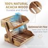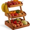 Estante para Almacenamiento de Alimentos para Verduras y Frutas de Madera de Acacia Estante Aplanador Cesta de Almacenamiento de Cocina Cesta de Almacenamiento de Pan y Snacks de Doble Capa