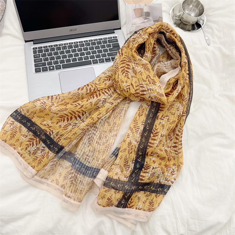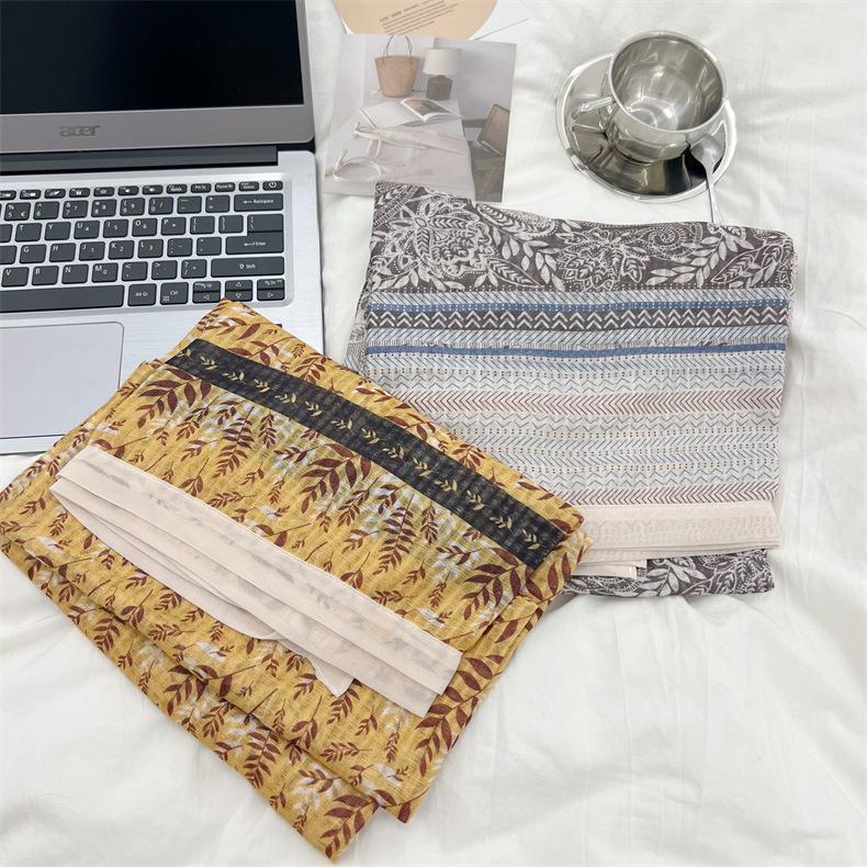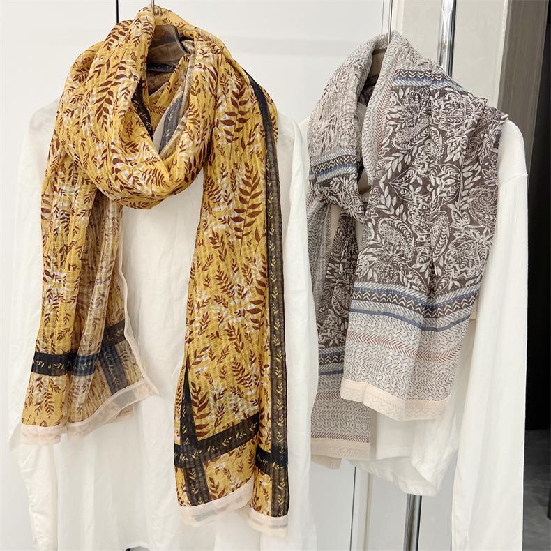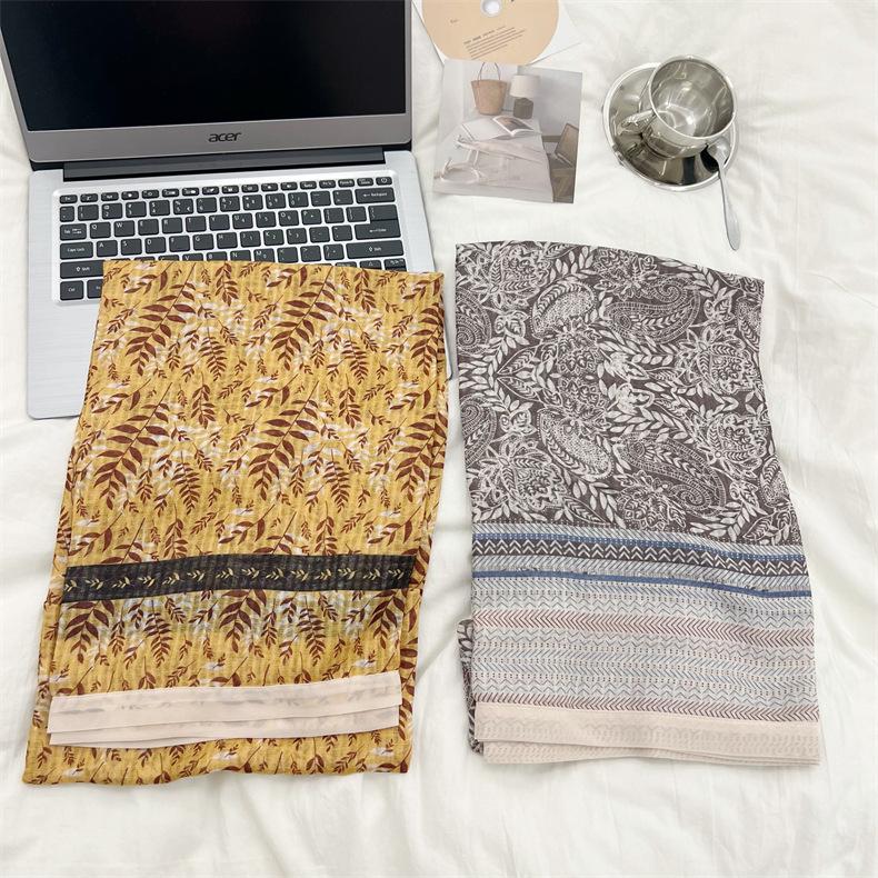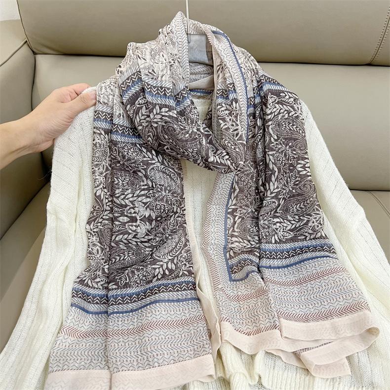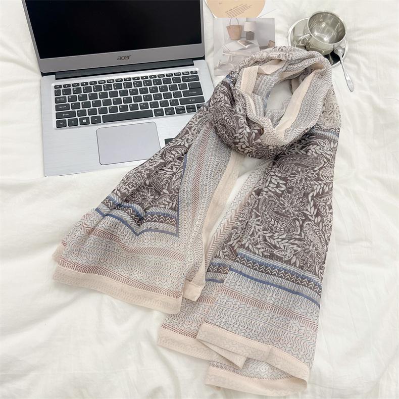 Bufanda de mujer, bufanda de algodón y lino con estampado étnico, fresca y combinable, para primavera y otoño, larga, para viajes, otoño e invierno, de seda.