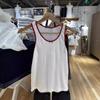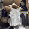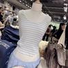 Chaleco sin mangas a rayas estilo americano BM con cuello redondo y estilo Pure Desire para mujer, nuevo estilo BM, top ajustado para chica atractiva