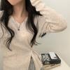 Suéter Design Sense para mujer, prenda exterior holgada, nueva primavera y otoño 2023, estilo occidental, camisa básica con cuello en V, top de punto a rayas