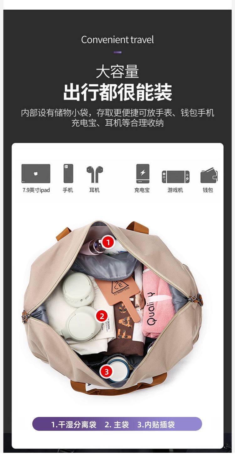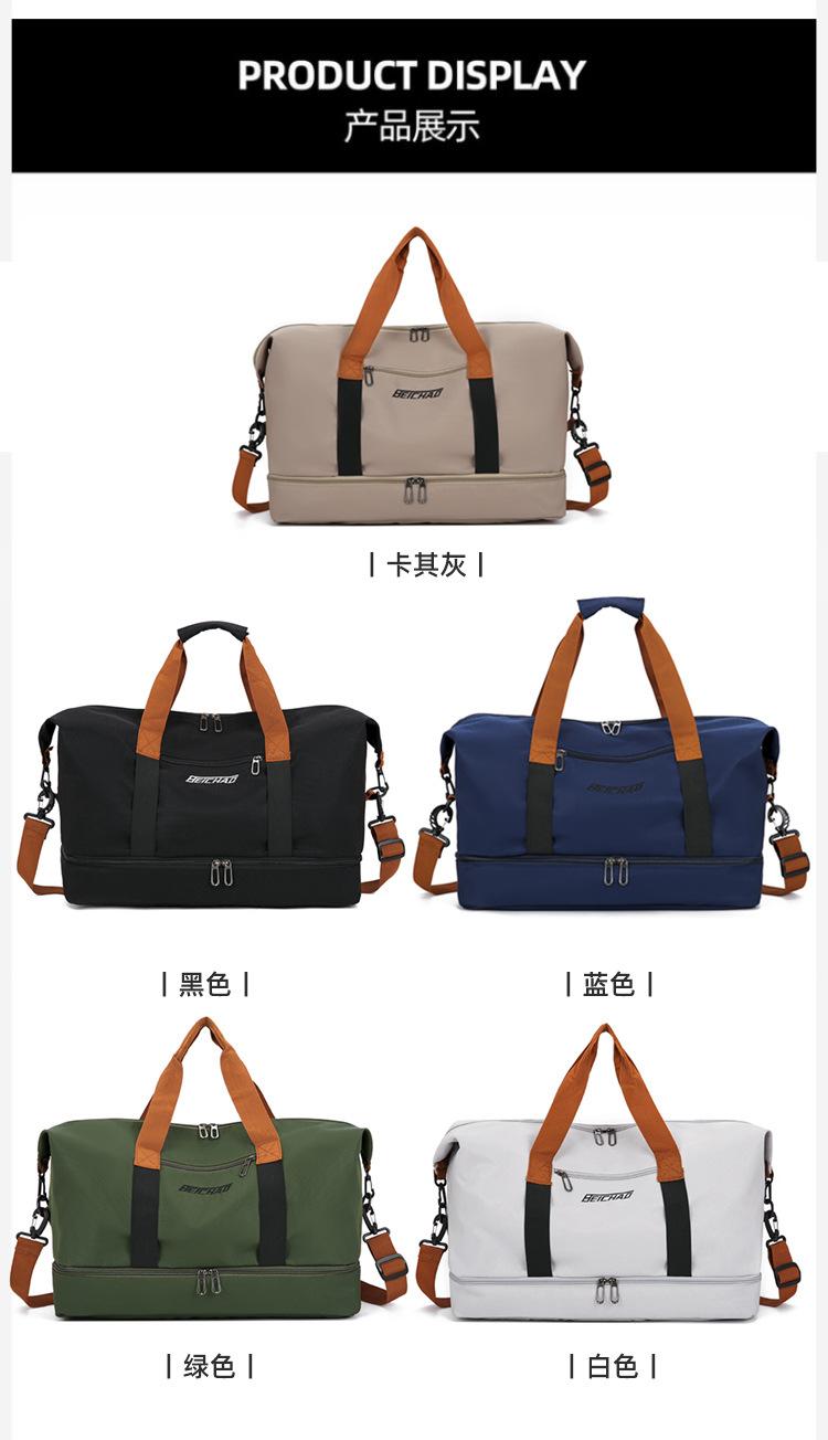 Bolsa de viaje de tela Oxford con separación de ropa seca y húmeda, bolsa deportiva para fitness, bandolera de hombro, bolsa de almacenamiento de ropa multifuncional.