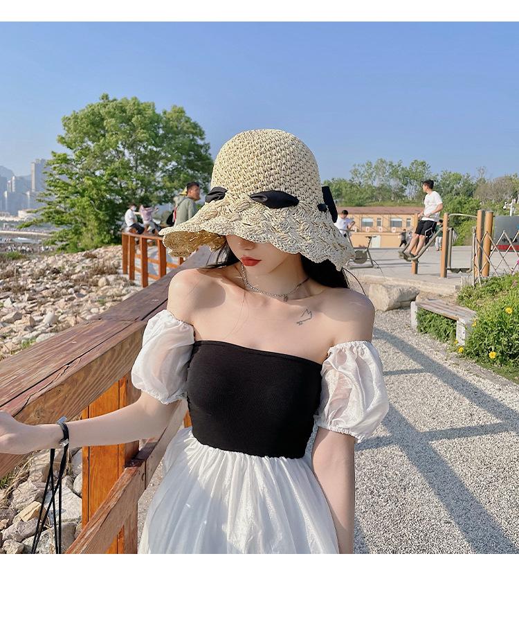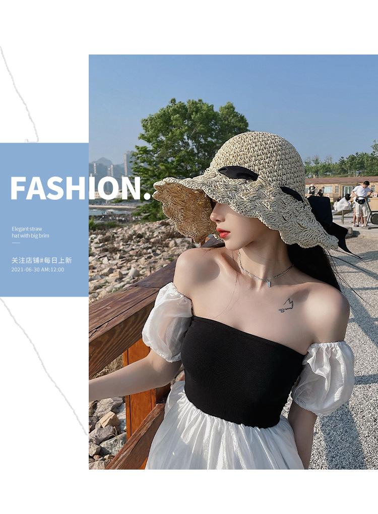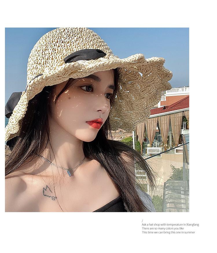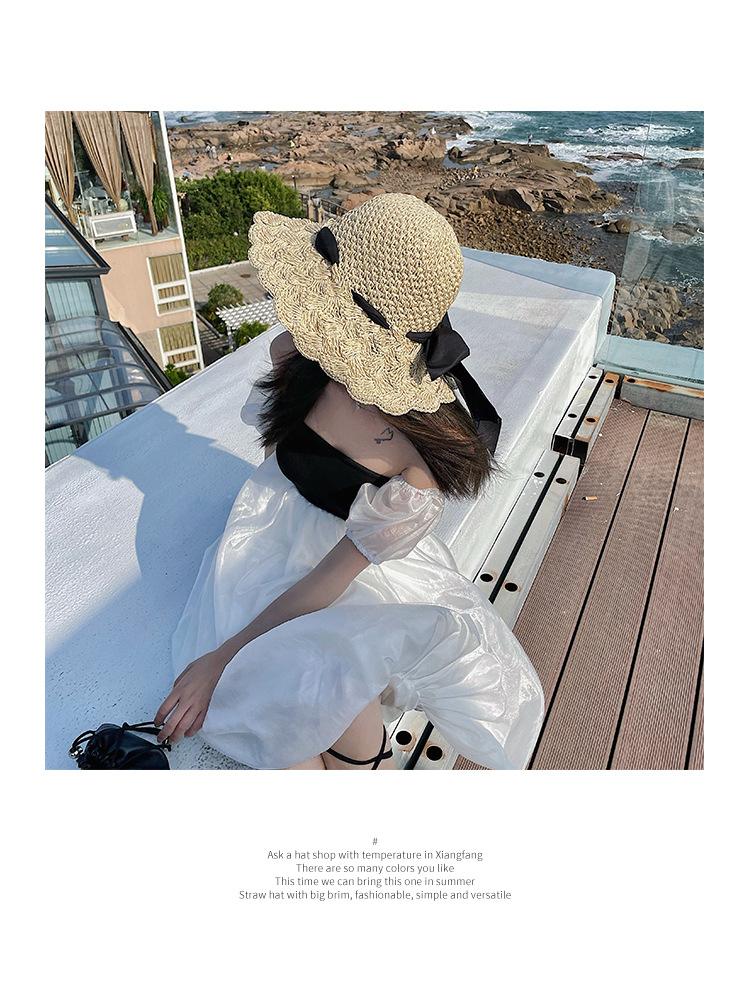 Bow Strap Straw Hat Seaside Sunshade Sunscreen Fisherman Hat