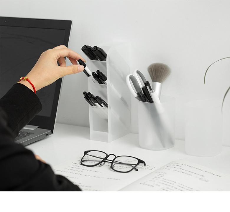 Portalápices de cuatro rejillas oblicuas de escritorio simple de estilo nórdico ins, blanco, sin impresión, caja de almacenamiento con inserto oblicuo para estudiantes, blanco