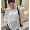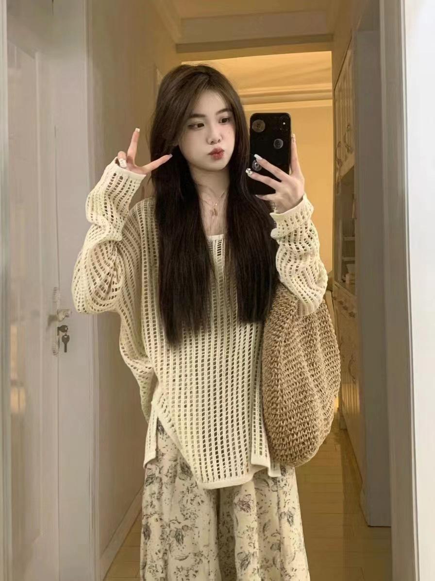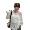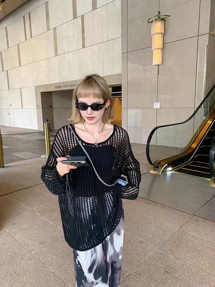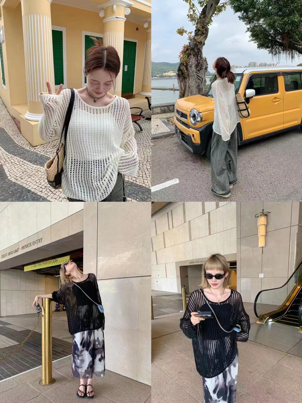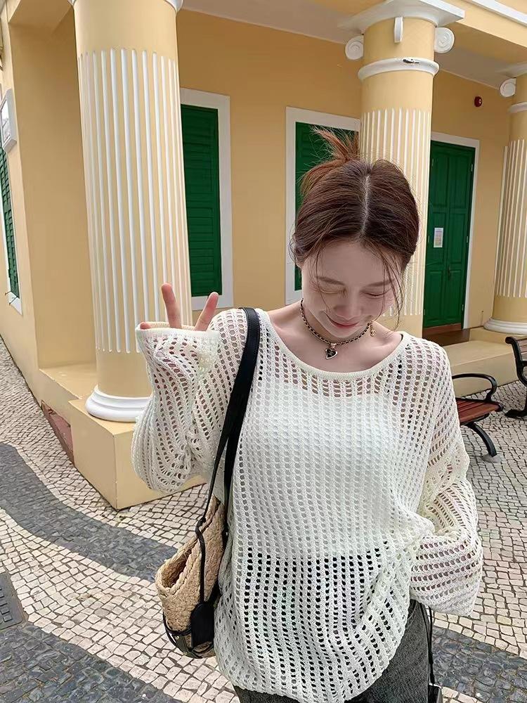 Blusa de Punto Simple con Aberturas Estilo Bf Transfronterizo para Mujer 2025 Verano Holgada Casual Pequeño Top de Protección Solar