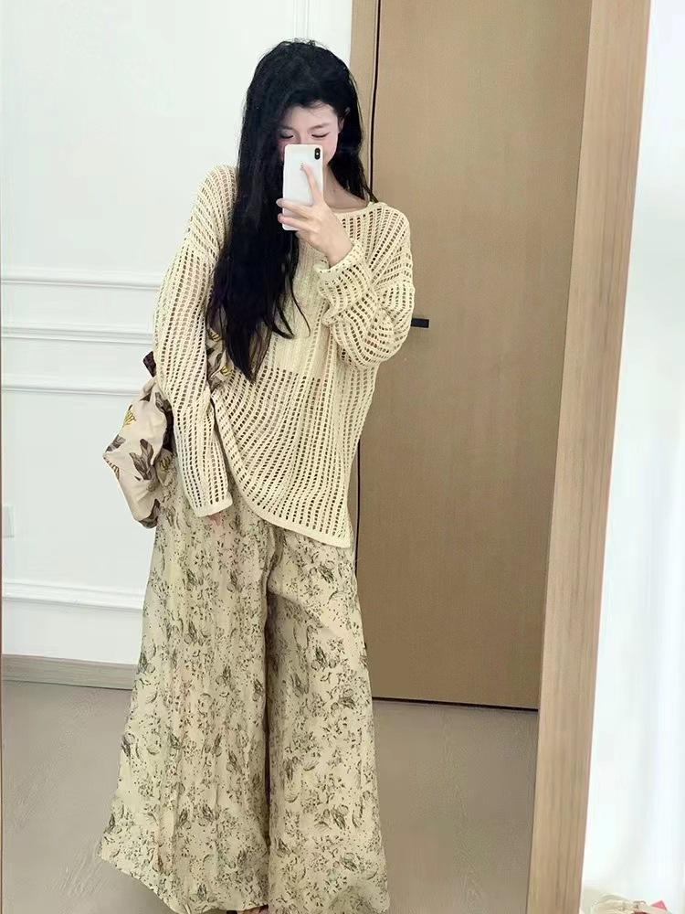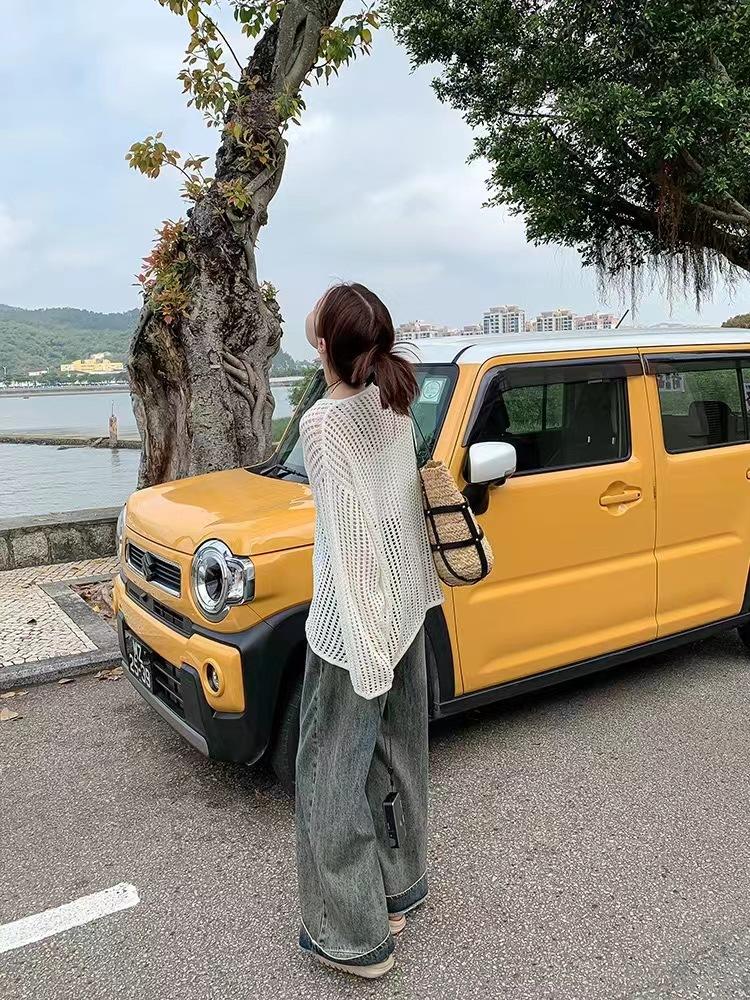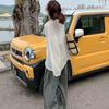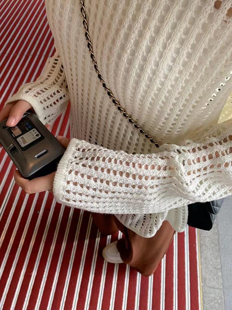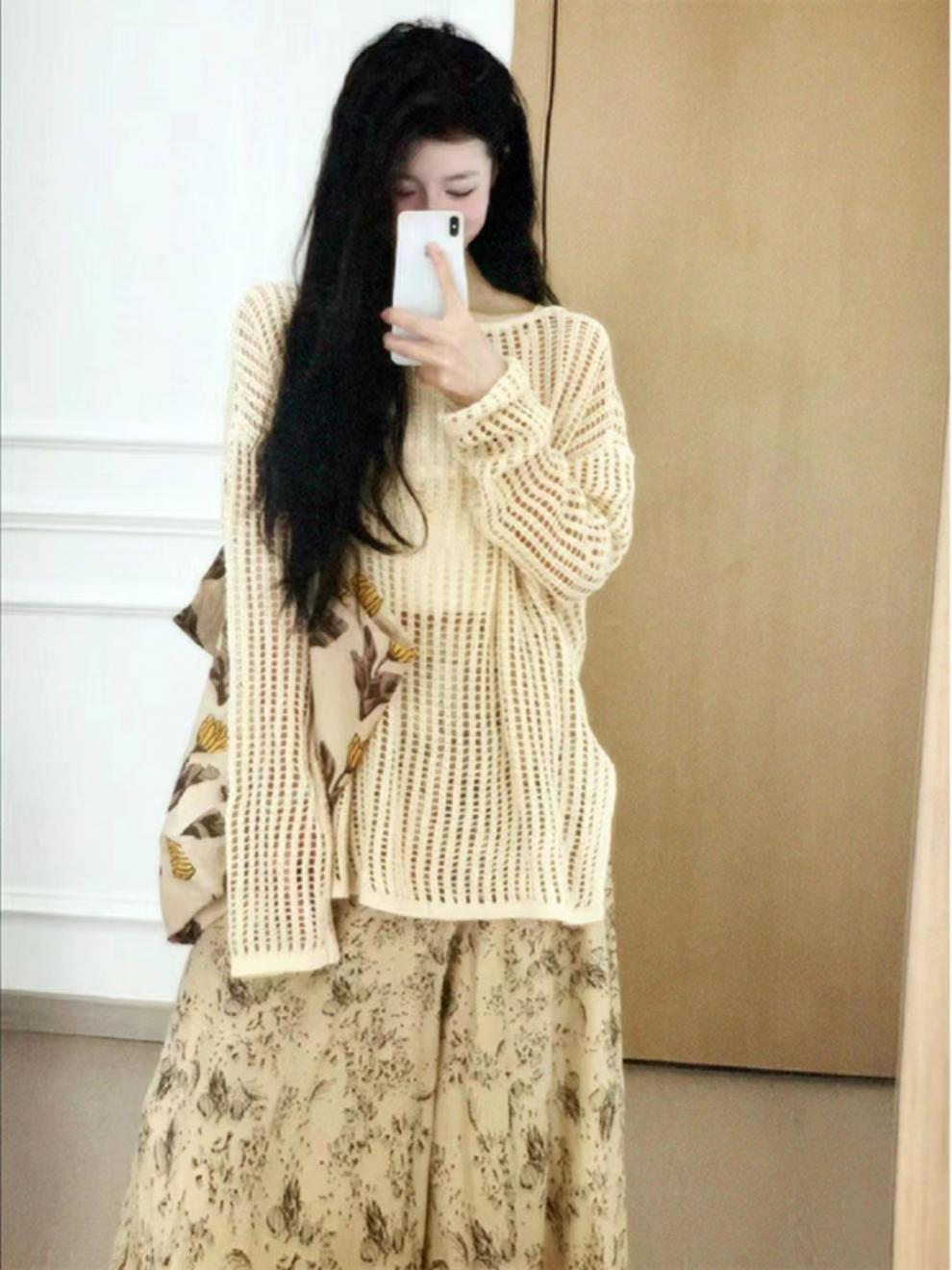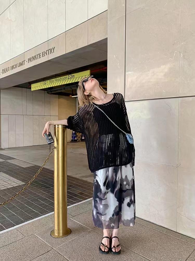 Blusa de Punto Simple con Aberturas Estilo Bf Transfronterizo para Mujer 2025 Verano Holgada Casual Pequeño Top de Protección Solar