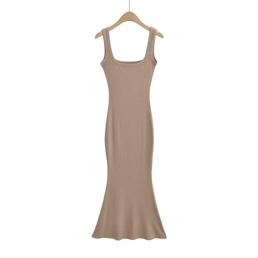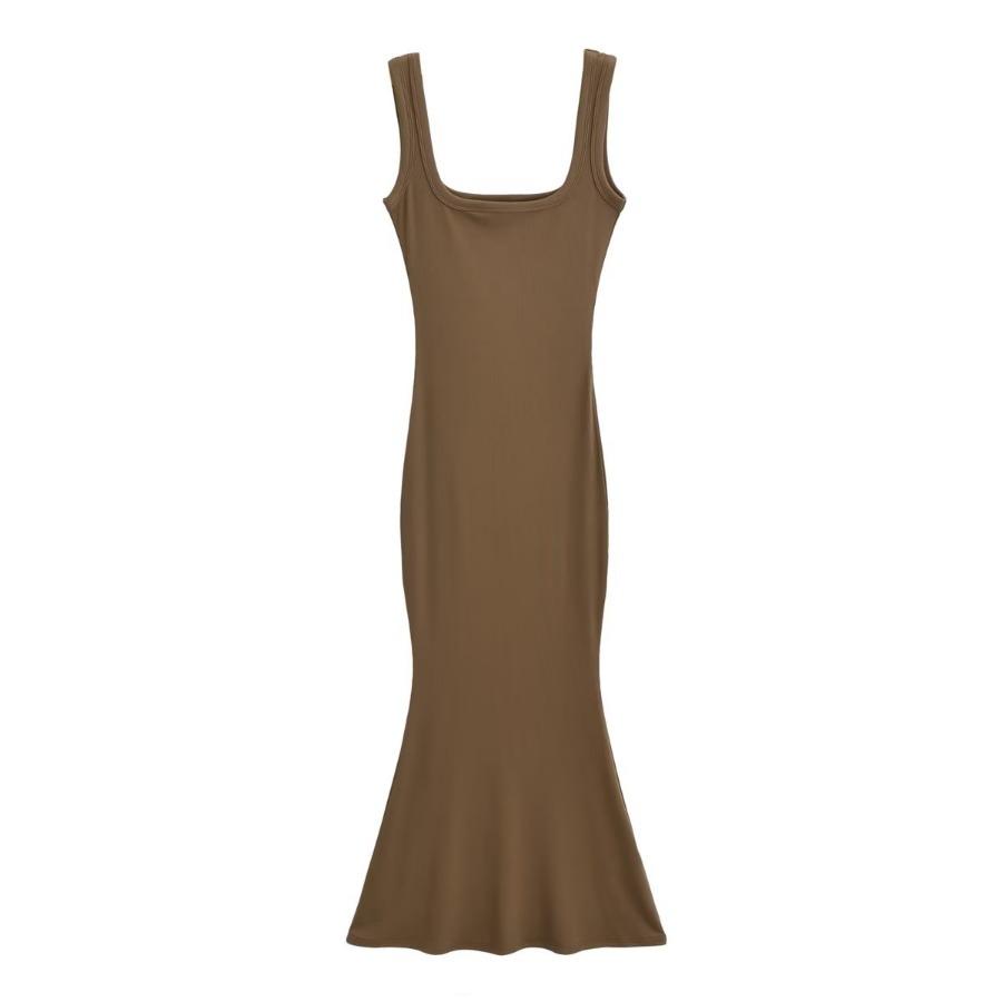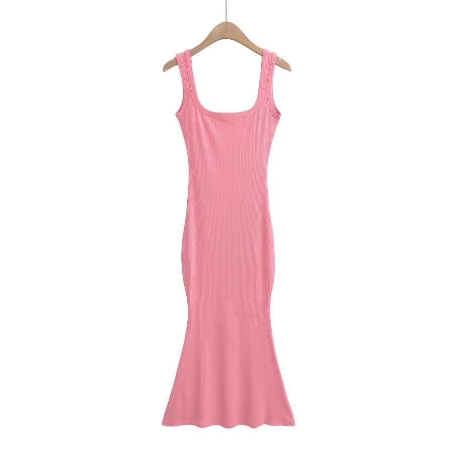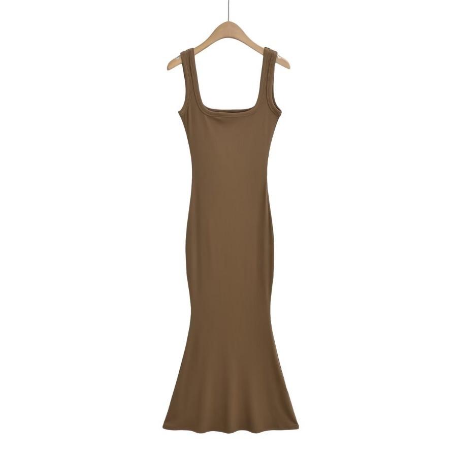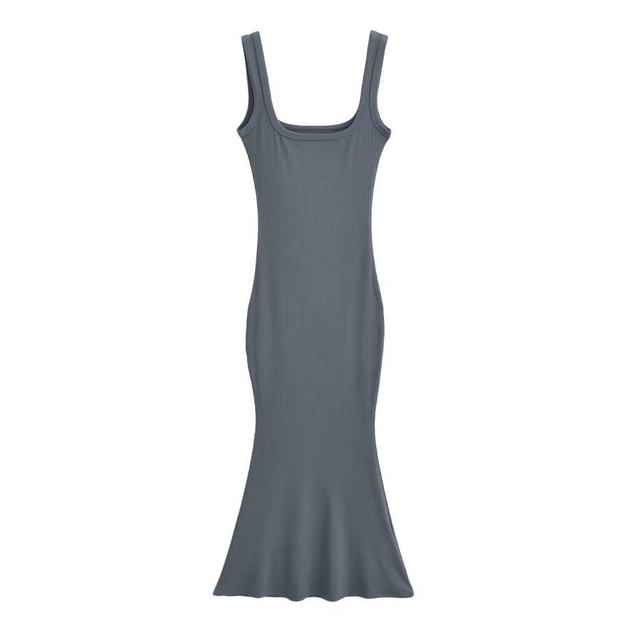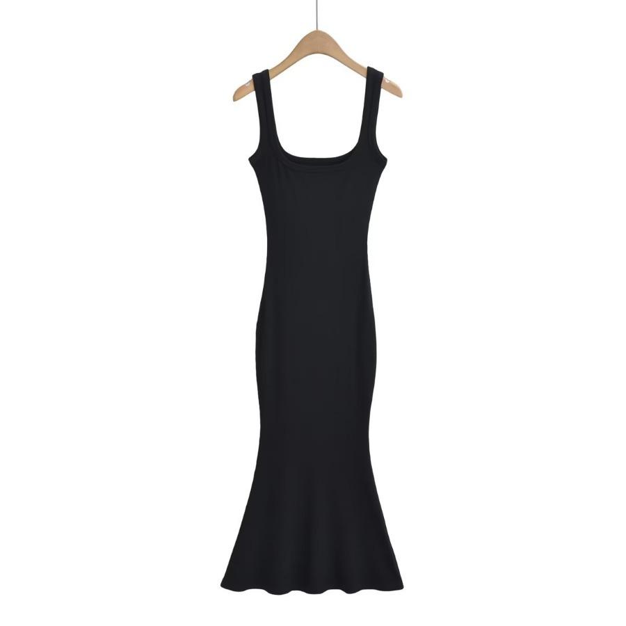 Vestido de verano 2023 con tirantes finos y cola de pez, falda larga y corta.