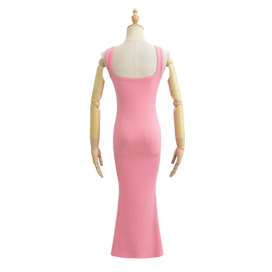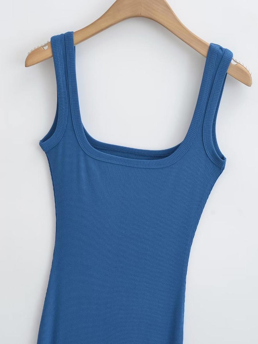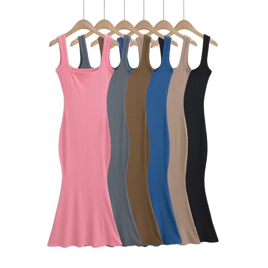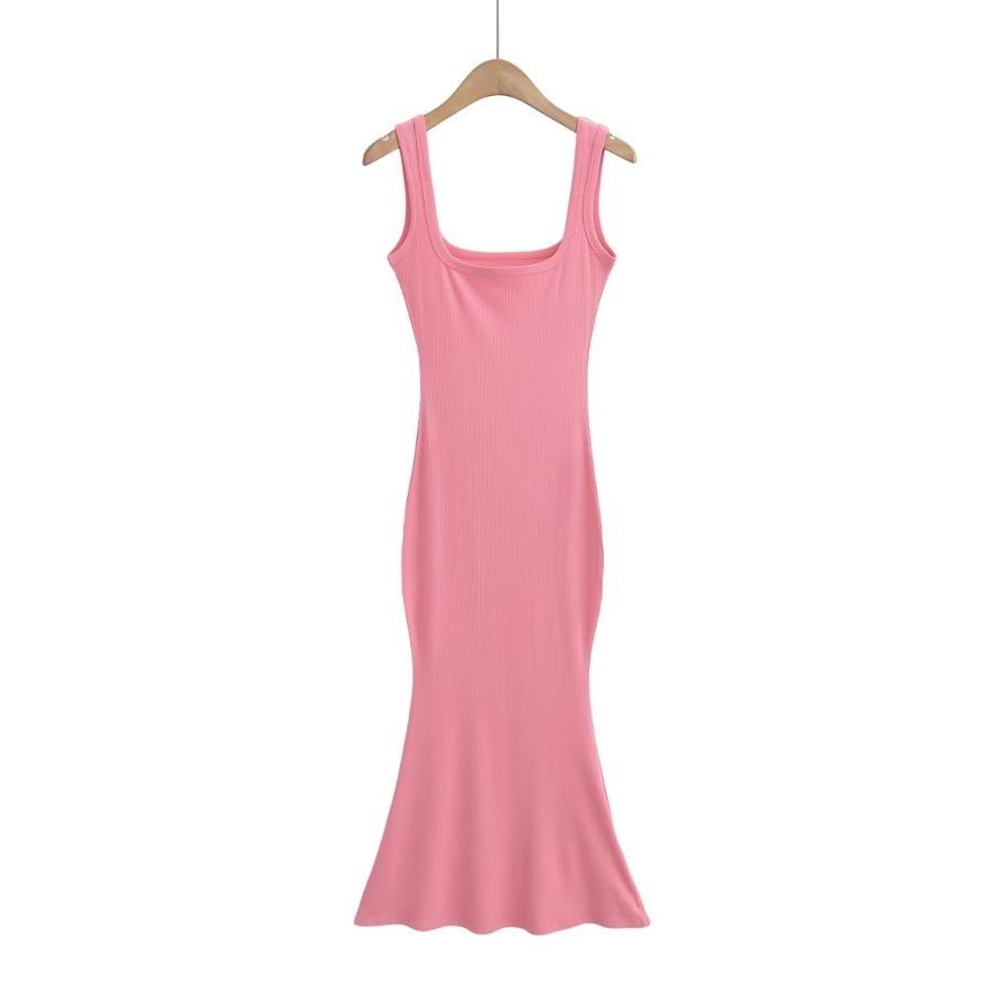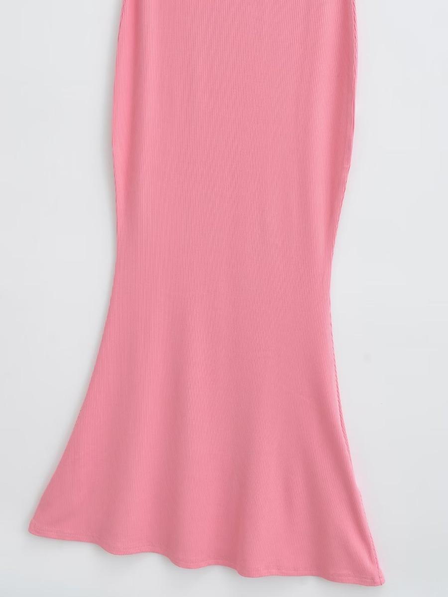 Vestido de verano 2023 con tirantes finos y cola de pez, falda larga y corta.