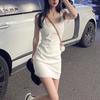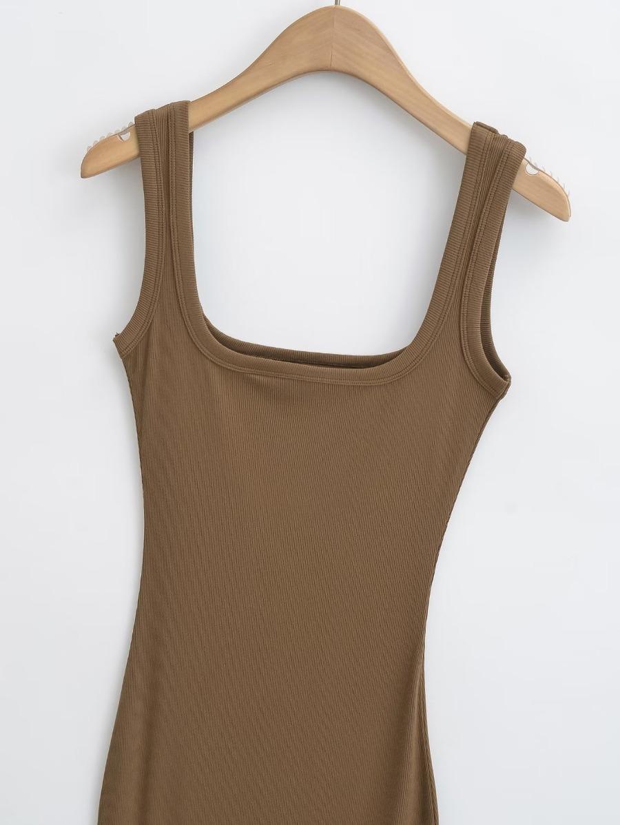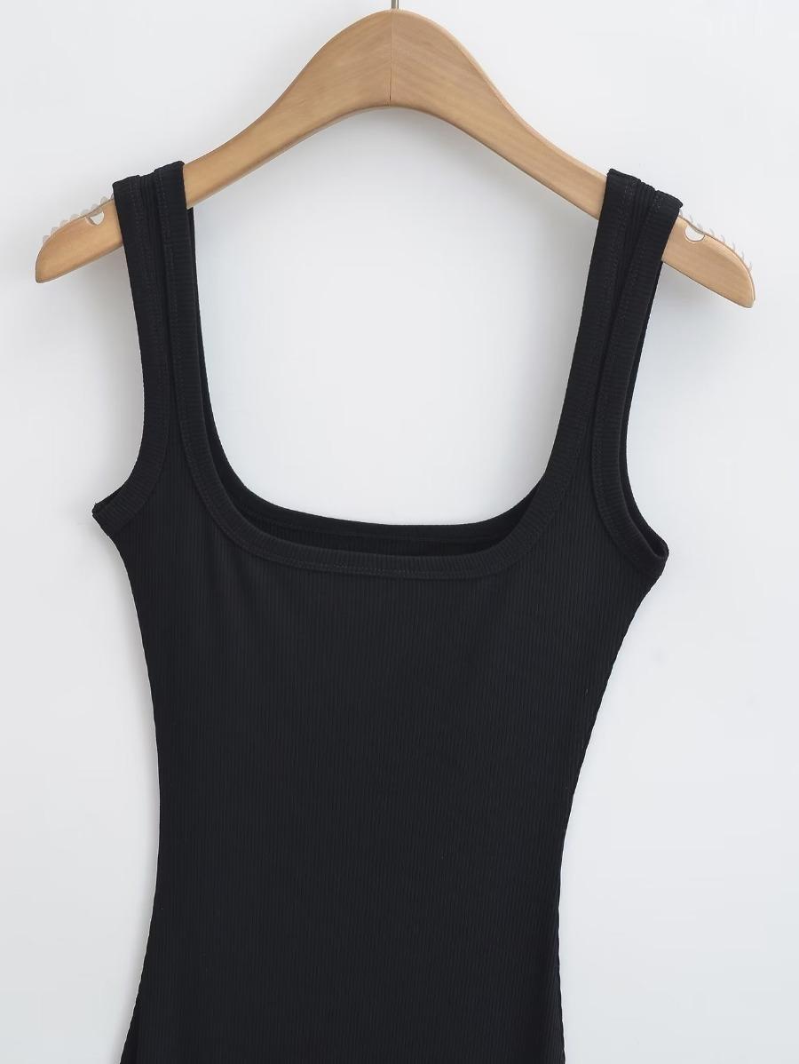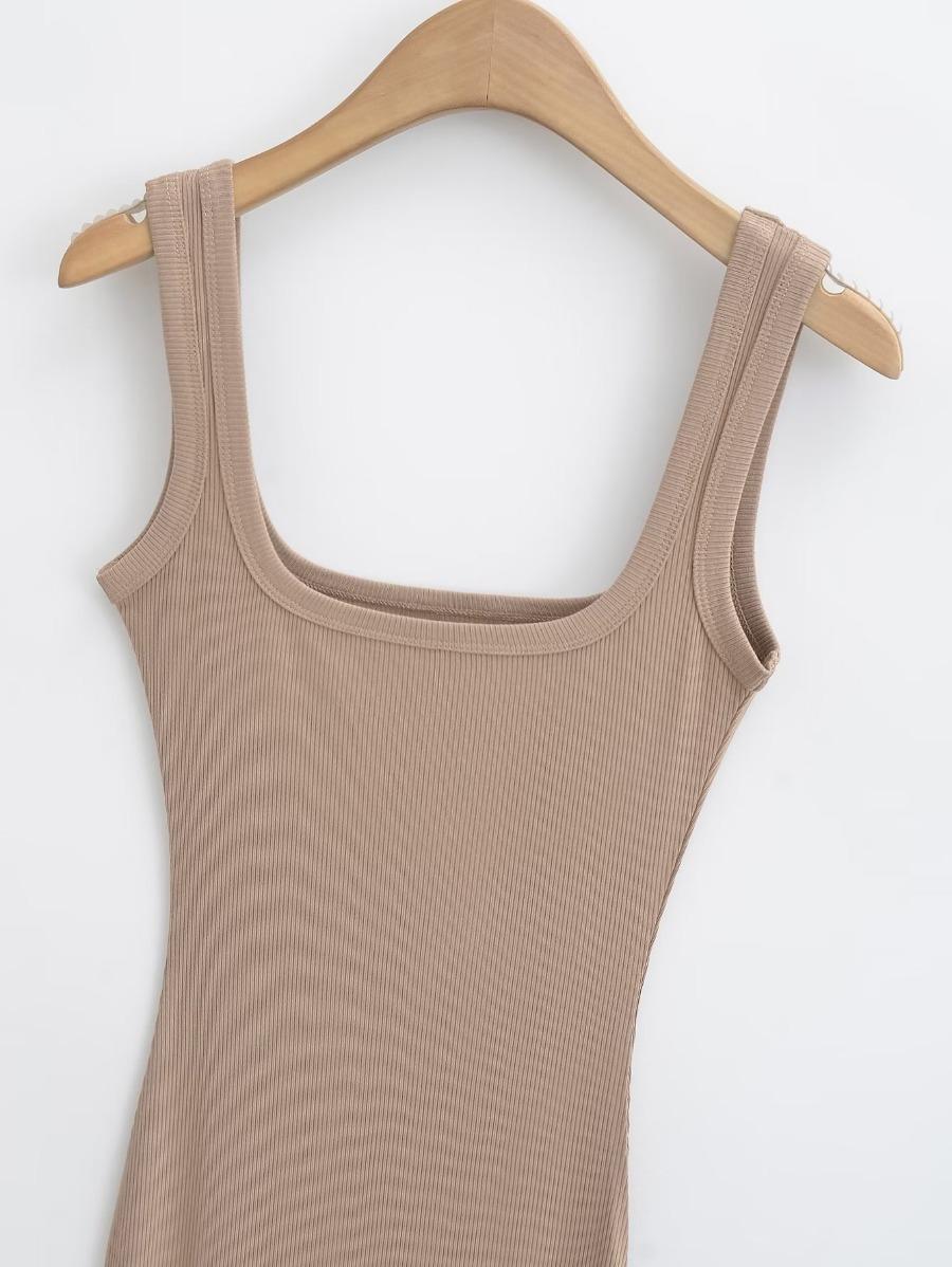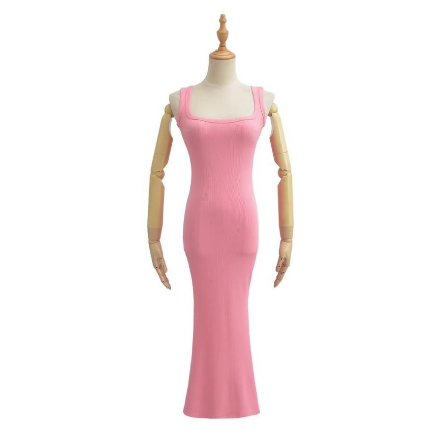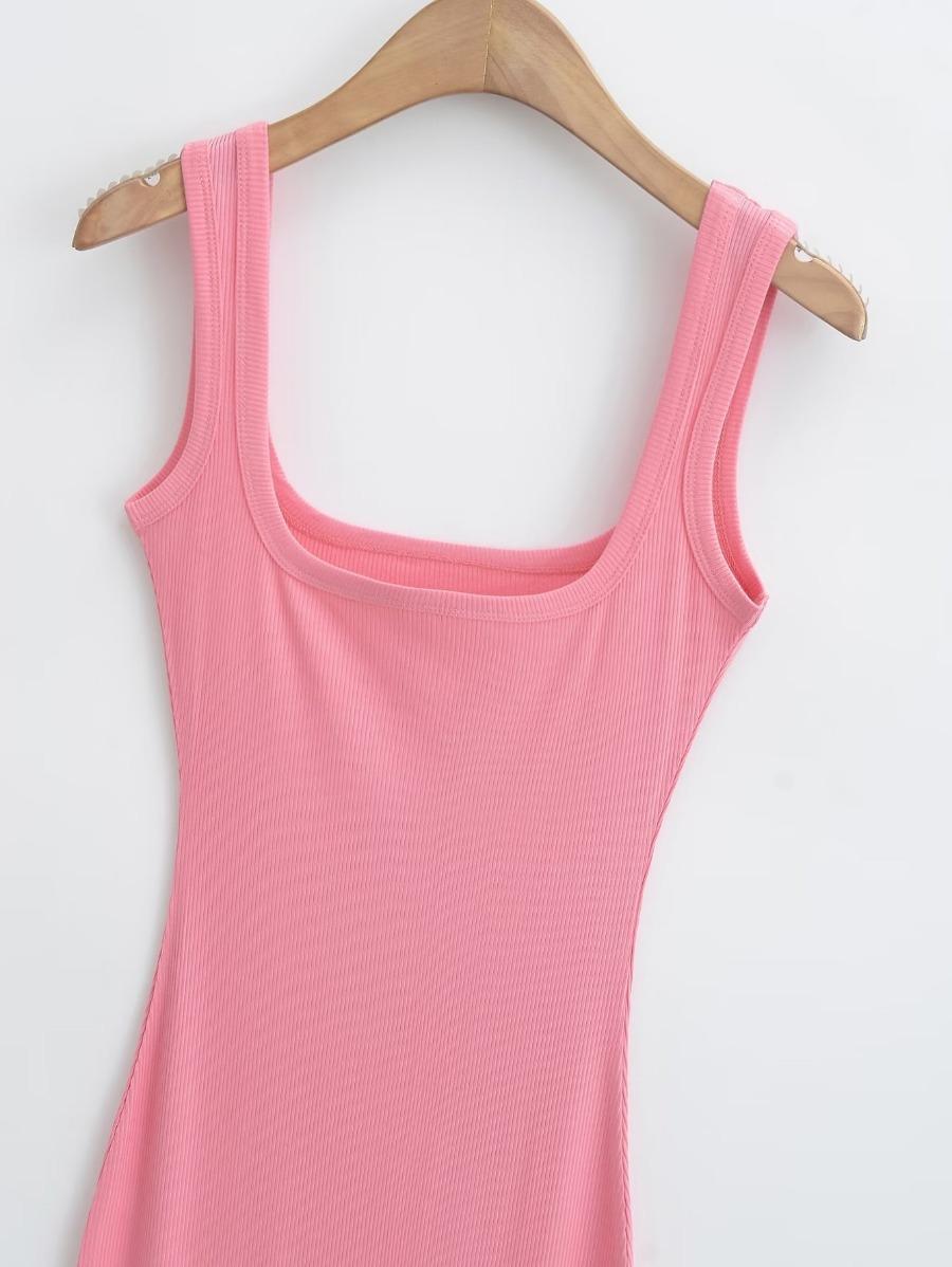 Vestido de verano 2023 con tirantes finos y cola de pez, falda larga y corta.
