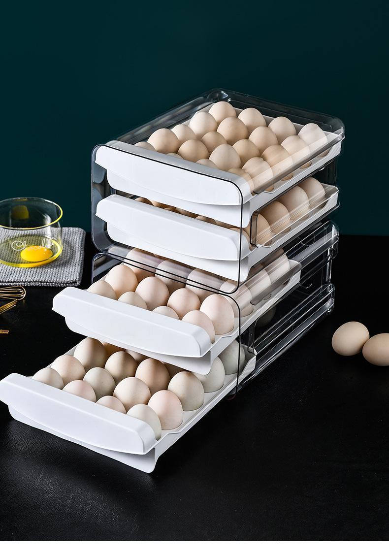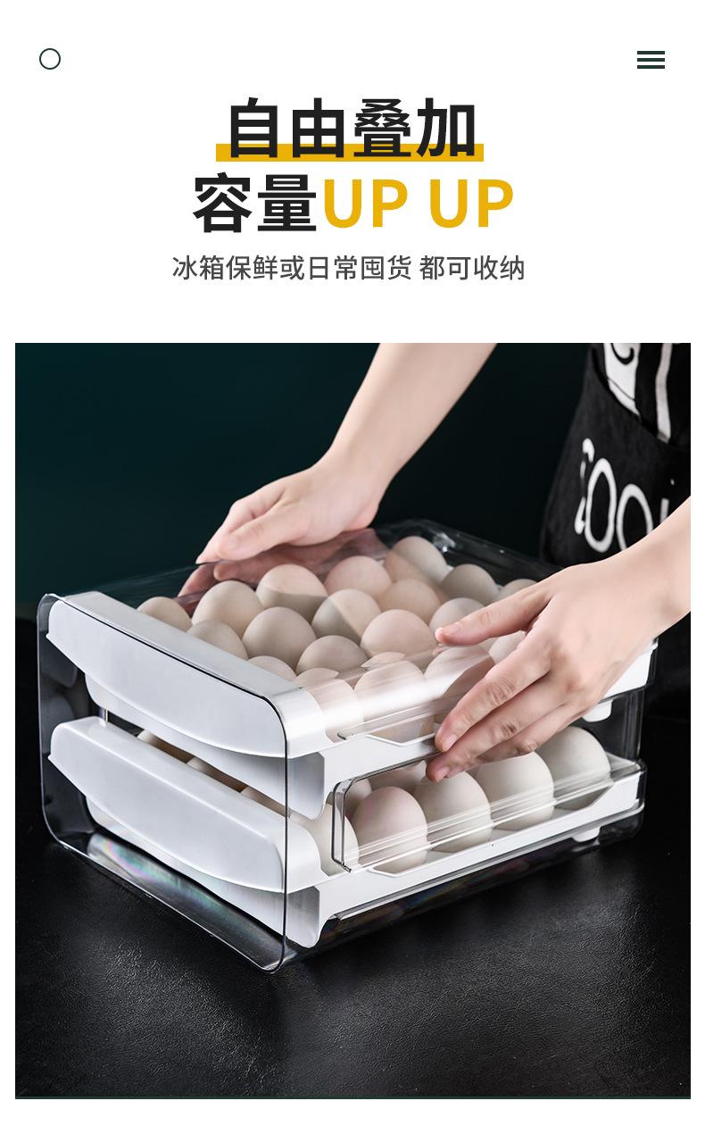 Bandeja para huevos de doble capa, caja de almacenamiento para refrigerador, tipo cajón, transparente, de grado alimenticio, caja para huevos con 40 compartimentos, caja para mantener los huevos frescos de cocina